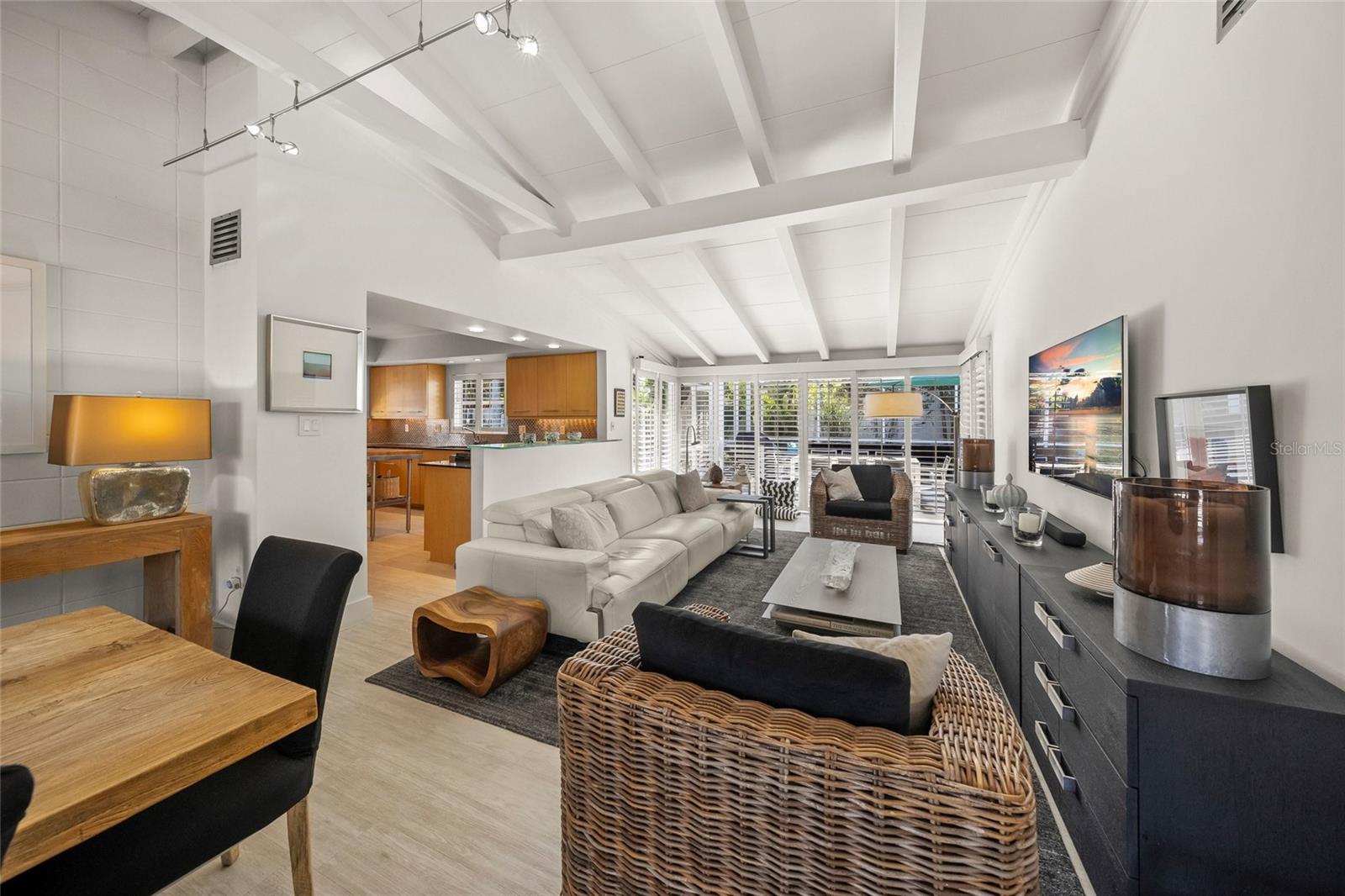 Architectural character, curated design, and resort-style outdoor living define this exceptional Sarasota residence at 1780 Spring Creek Drive.Privately positioned behind a gated entry and surrounded by lush tropical landscaping, this distinctive home offers a refined Florida lifestyle with thoughtful upgrades, timeless style, and true peace of mind. Located in one of the the location that Sarasota has to offer. Inside, the home welcomes you with soaring ceilings accented by exposed beams, expansive windows, and an open, light-filled layout that blends modern design with everyday comfort. Warm wood tones, clean architectural lines, and carefully selected finishes create a sophisticated yet relaxed ambiance throughout the main living spaces.The updated kitchen is designed for both beauty and function, featuring luxury appliances, sleek cabinetry, stone countertops, and a statement glass-topped bar, ideal for entertaining or casual dining. The kitchen flows seamlessly into the living and dining areas, creating an inviting environment for gatherings large and small.The primary suite serves as a private retreat, offering tranquil garden views, direct access to the outdoor living area, and a spa-inspired bath adorned with striking mosaic tile, modern fixtures, and a glass-enclosed walk-in shower. Additional bedrooms are thoughtfully arranged to provide flexibility for guests, a home office, or creative space.Step outside to the screened lanai and resort-style pool and spa, where privacy and lush landscaping create a serene oasis. Recent upgrades include a new pool filter, enhancing efficiency and ease of ownership, while covered seating areas invite year-round outdoor enjoyment.Beyond its aesthetic appeal, this home is equipped with premium infrastructure upgrades designed for long-term comfort and reliability. A Generac natural gas generator powers the entire home and pool, providing seamless backup during outages. The roof is approximately six years old, plumbing lines have been professionally blown out and cleaned, and the property is located in a no flood zone for added peace of mind. The home is serviced by city water, complemented by a deep water irrigation well that keeps the lush landscaping thriving while helping reduce utility costs.Aerial views highlight the home's generous lot, mature greenery, and prime Sarasota location--just minutes from downtown Sarasota, world-renowned beaches, shopping, dining, and cultural attractions.Distinctive, upgraded, and effortlessly livable, 1780 Spring Creek Drive delivers a sophisticated Sarasota lifestyle without compromise.