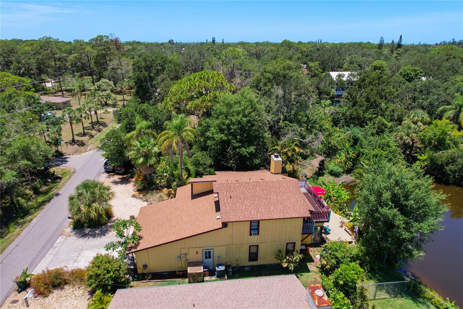 One or more photo(s) has been virtually staged. Outstanding Sarasota location for this truly unique lakefront home, complete with a small private dock. Nestled on a wooded, private lot, the setting offers a peaceful retreat that feels worlds away--yet is just minutes from everything Sarasota has to offer.Inside, generous living areas and soaring ceilings create an open, airy atmosphere ideal for both everyday living and entertaining. There is ample space for gatherings, along with a versatile bonus area perfect for a study, den, or gallery. The main-floor primary suite features a walk-in closet for added comfort and convenience. The two-car garage is currently configured as a one-car garage with additional flex space that could serve as a bedroom or office and can easily be converted back to a full two-car garage. Two spacious upstairs bedrooms share a conveniently located bathroom. A large enclosed, air-conditioned lanai with French doors opens to a serene back patio, offering tranquil lake views and abundant wildlife. This home radiates warmth and character, reflecting years of cherished family and friend gatherings.Located just one block from Bee Ridge Park, which offers basketball, volleyball, softball fields, and a shaded playground, and within a highly sought-after school district for elementary, middle, and high school. Sarasota Memorial Hospital is only three miles away, downtown Sarasota just five miles, and world-famous Siesta Key Beach approximately seven miles away--featuring exceptional dining, shopping, and cultural attractions. This property has never flooded and sits well above sea level. Most furnishings have been removed. Home is now vacant and easy to show.