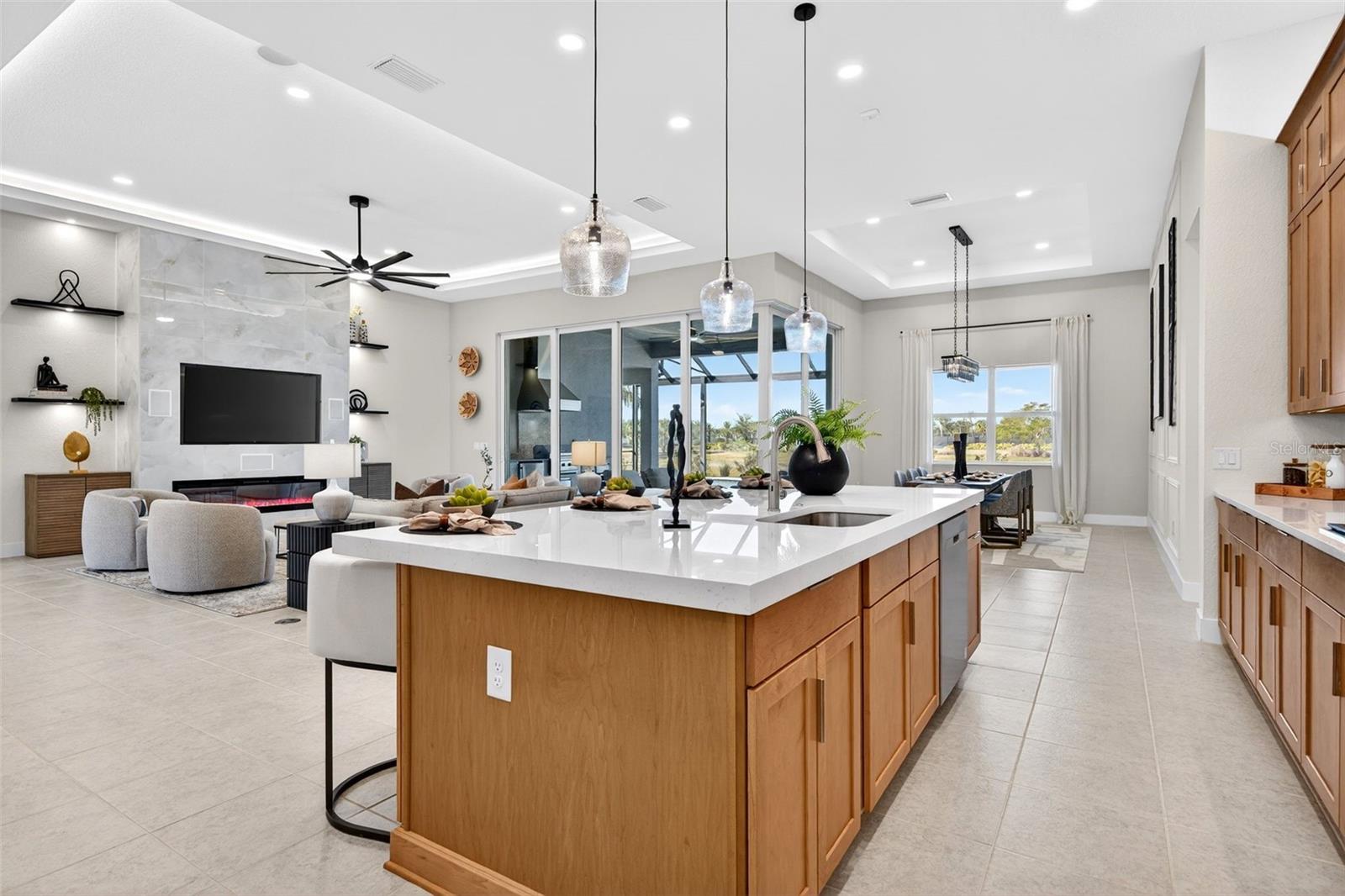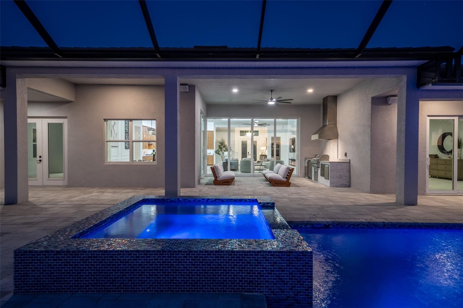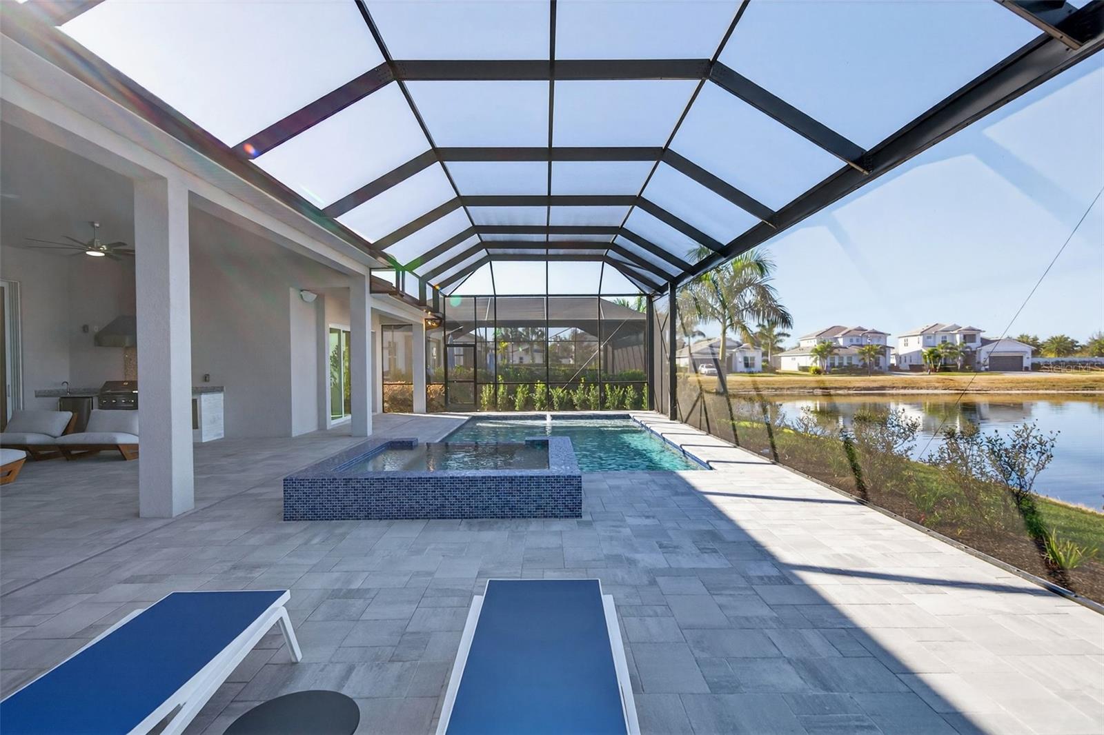 Never lived in and masterfully curated, this 2024 Maxwell Elite residence in The Isles represents the pinnacle of refined luxury living. Designed with uncompromising attention to detail, the owners selected nearly every available upgrade, creating a home that feels both grand and effortlessly livable. Custom entry doors open to a striking foyer with soaring ceilings, leading seamlessly into an expansive open-concept great room and chef's kitchen adorned with top-tier finishes and designer appointments. A bespoke living-room built-in with fireplace serves as an elegant focal point, while dramatic 10-foot, 90-degree hurricane-impact sliders dissolve the boundary between interior and exterior living. The outdoor experience is equally impressive, featuring an extended covered lanai with a custom pool, outdoor kitchen, built-ins, a full cabana bath, and a heavy-duty lanai cage--an entertainer's sanctuary designed for year-round enjoyment. The owner's suite is a private retreat occupying its own wing of the home and enhanced by an extended layout, custom ceiling and tile treatments, dual walk-in closets, and a spa-inspired bath with rain shower. Private 8-foot pocket sliders provide direct access to the lanai, elevating the suite's resort-like ambiance. Three additional bedrooms are all en-suite, offering exceptional privacy for guests, while a sophisticated office and an upstairs bonus room--purposefully designed for seamless conversion to an additional en-suite bedroom--add versatility and future flexibility. Notable enhancements include coffered ceilings, solid-core doors, an upgraded stairwell, additional windows for natural light, core-foam masonry and spray-foam insulation, a circulating hot-water system, tankless gas water heater, secondary pantry, EV charger, electric pre-wiring for air conditioning in the garage, additional exterior garage access, and comprehensive smart-home integration. Further elevating the residence, post-closing upgrades include custom ceiling treatments, designer built-ins, refined tile work, and a fully realized luxury outdoor living environment. Impeccably finished and truly turnkey, this never-occupied home offers a rare opportunity to step into a flawless, resort-caliber residence--where every detail has been thoughtfully executed and nothing remains to be done. Luxurious living in the gated, maintenance-free community of The Isles, nestled between The Lake Club and Concession, at its best! The Isles at Lakewood Ranch offers many amenities such as a 65,000 square foot clubhouse, tennis and pickleball courts, basketball court, playground, state of the art fitness center and yoga room, resort-style swimming pool and spa, boardwalk and fishing pier, and a playground and dog park. Centrally located, just off I-75 and a short drive to the award-winning beaches of Siesta Key, Lido, & Anna Maria. This move-in ready home has all the amenities that one would want in this 2025 Best-Selling Multigenerational Planned Community in the Nation.