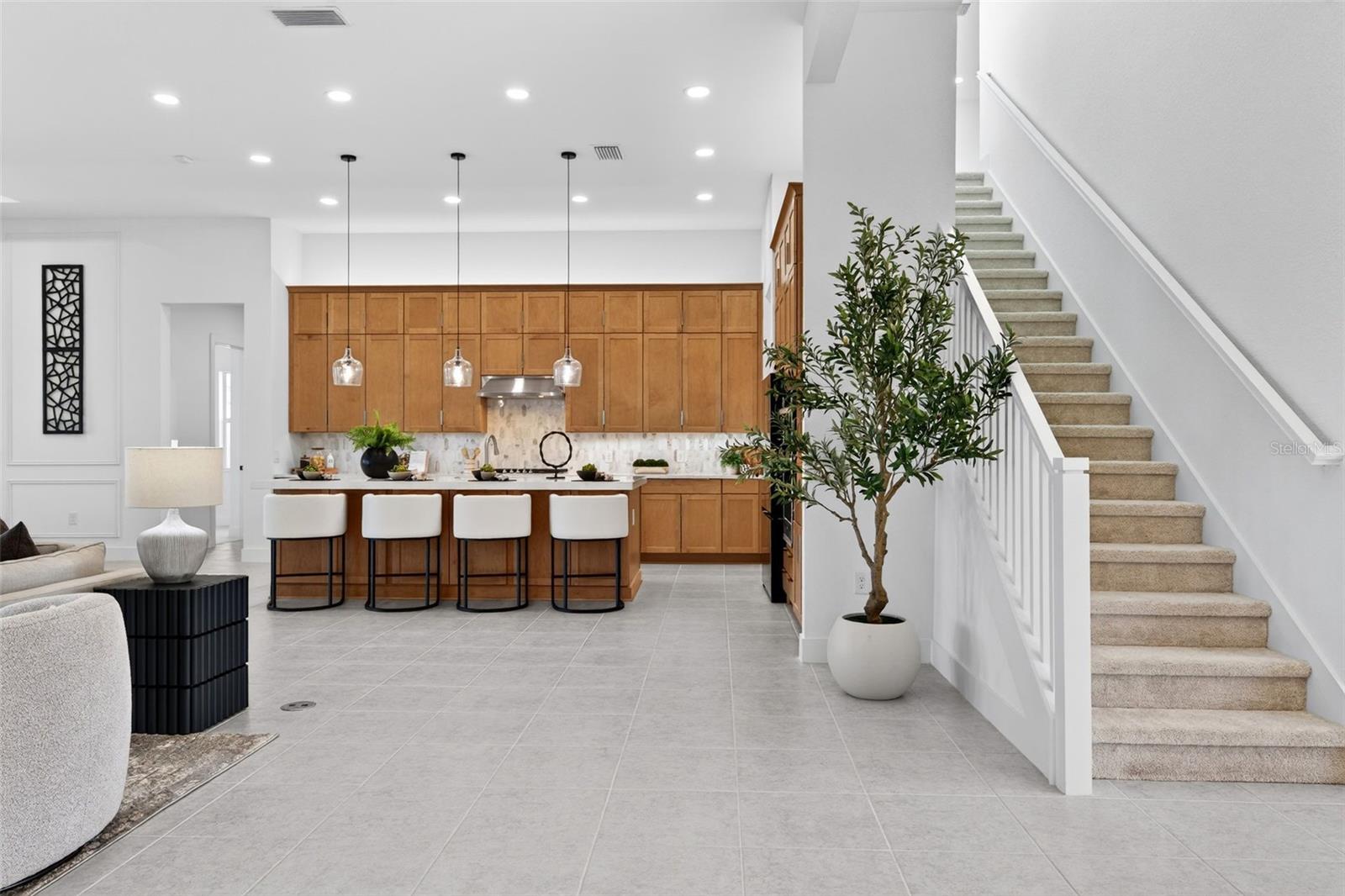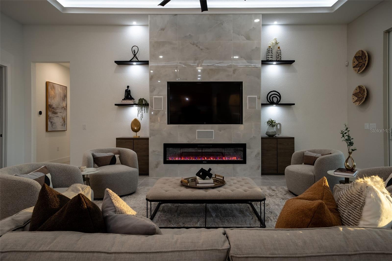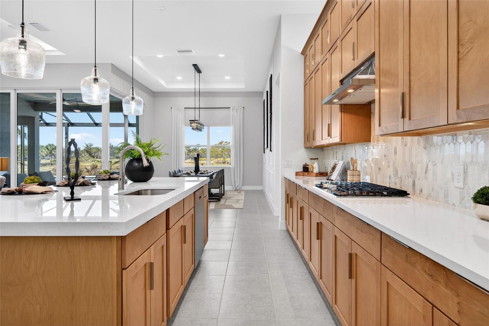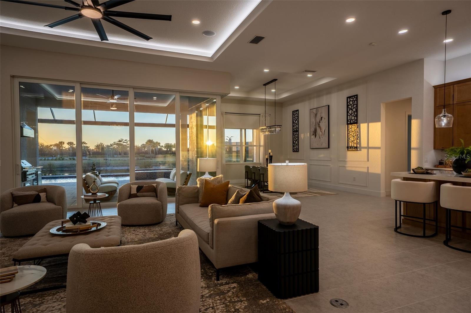 Never lived in and masterfully curated, this 2024 Maxwell Elite residence in The Isles represents the pinnacle of refined luxury living. Designed with uncompromising attention to detail, the owners selected nearly every available upgrade, creating a home that feels both grand and effortlessly livable. Custom entry doors open to a striking foyer with soaring ceilings, leading seamlessly into an expansive open-concept great room and chef's kitchen adorned with top-tier finishes and designer appointments. A bespoke living-room built-in with fireplace serves as an elegant focal point, while dramatic 10-foot, 90-degree hurricane-impact sliders dissolve the boundary between interior and exterior living. The outdoor experience is equally impressive, featuring an extended covered lanai with a custom pool, outdoor kitchen, built-ins, a full cabana bath, and a heavy-duty lanai cage--an entertainer's sanctuary designed for year-round enjoyment. The owner's suite is a private retreat occupying its own wing of the home and enhanced by an extended layout, custom ceiling and tile treatments, dual walk-in closets, and a spa-inspired bath with rain shower. Private 8-foot pocket sliders provide direct access to the lanai, elevating the suite's resort-like ambiance. Three additional bedrooms are all en-suite, offering exceptional privacy for guests, while a sophisticated office and an upstairs bonus room--purposefully designed for seamless conversion to an additional en-suite bedroom--add versatility and future flexibility. Notable enhancements include coffered ceilings, solid-core doors, an upgraded stairwell, additional windows for natural light, core-foam masonry and spray-foam insulation, a circulating hot-water system, tankless gas water heater, secondary pantry, EV charger, electric pre-wiring for air conditioning in the garage, additional exterior garage access, and comprehensive smart-home integration. Further elevating the residence, post-closing upgrades include custom ceiling treatments, designer built-ins, refined tile work, and a fully realized luxury outdoor living environment. Impeccably finished and truly turnkey, this never-occupied home offers a rare opportunity to step into a flawless, resort-caliber residence--where every detail has been thoughtfully executed and nothing remains to be done. Luxurious living in the gated, maintenance-free community of The Isles, nestled between The Lake Club and Concession, at its best! The Isles at Lakewood Ranch offers many amenities such as a 65,000 square foot clubhouse, tennis and pickleball courts, basketball court, playground, state of the art fitness center and yoga room, resort-style swimming pool and spa, boardwalk and fishing pier, and a playground and dog park. Centrally located, just off I-75 and a short drive to the award-winning beaches of Siesta Key, Lido, & Anna Maria. This move-in ready home has all the amenities that one would want in this 2025 Best-Selling Multigenerational Planned Community in the Nation.