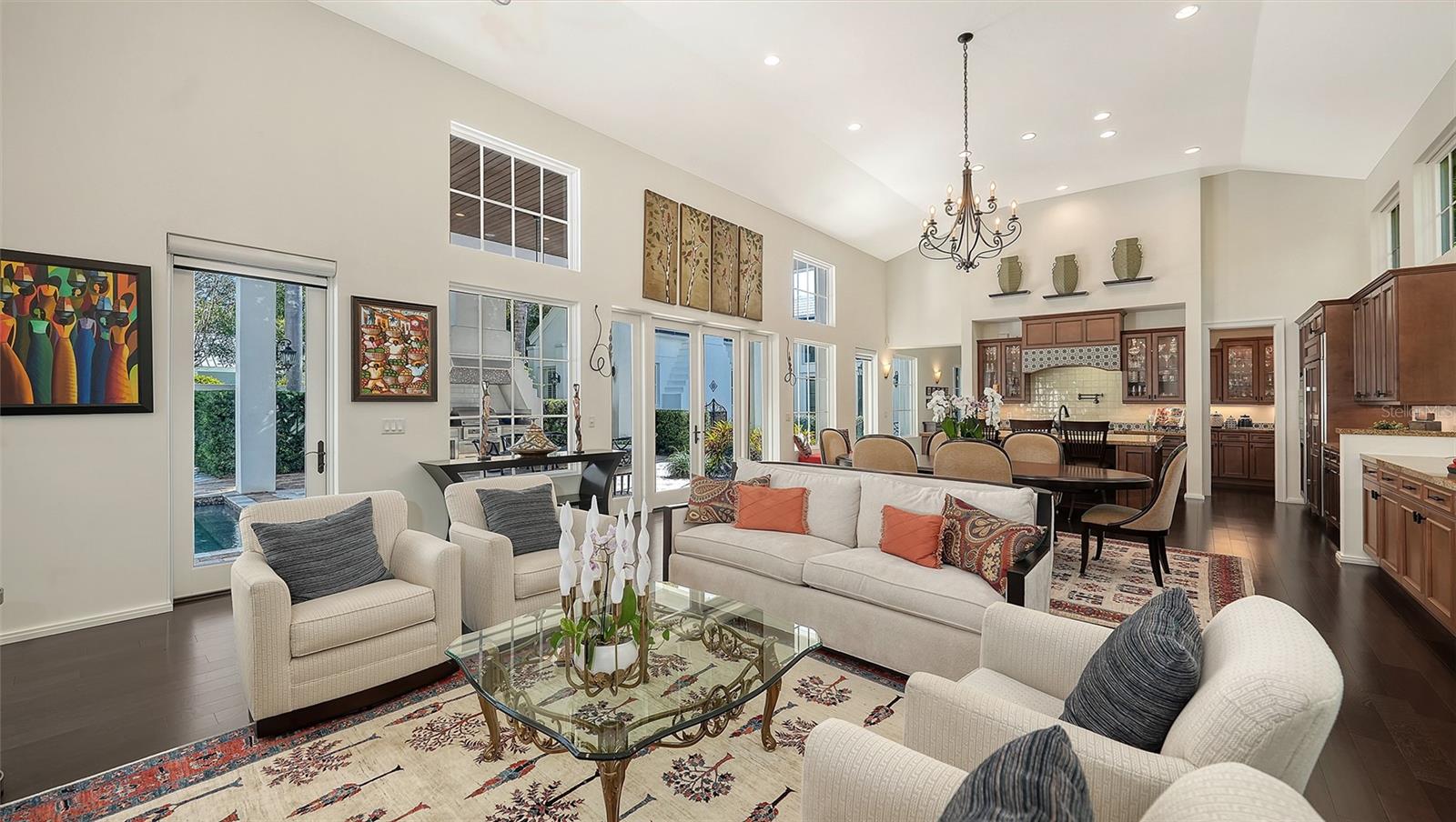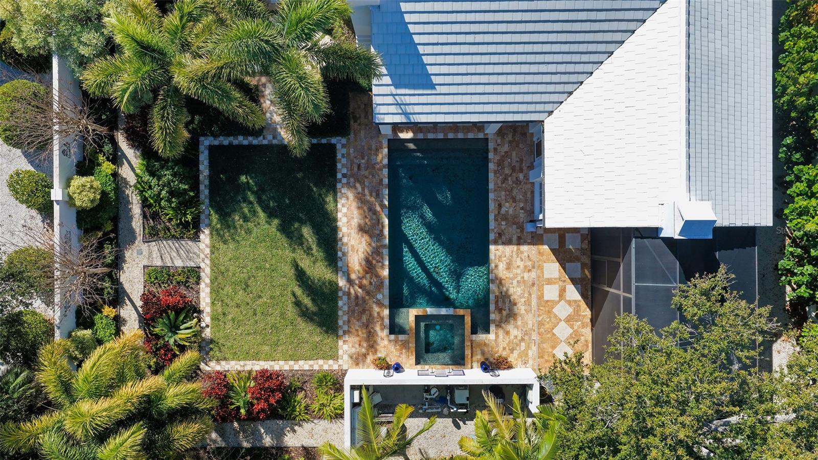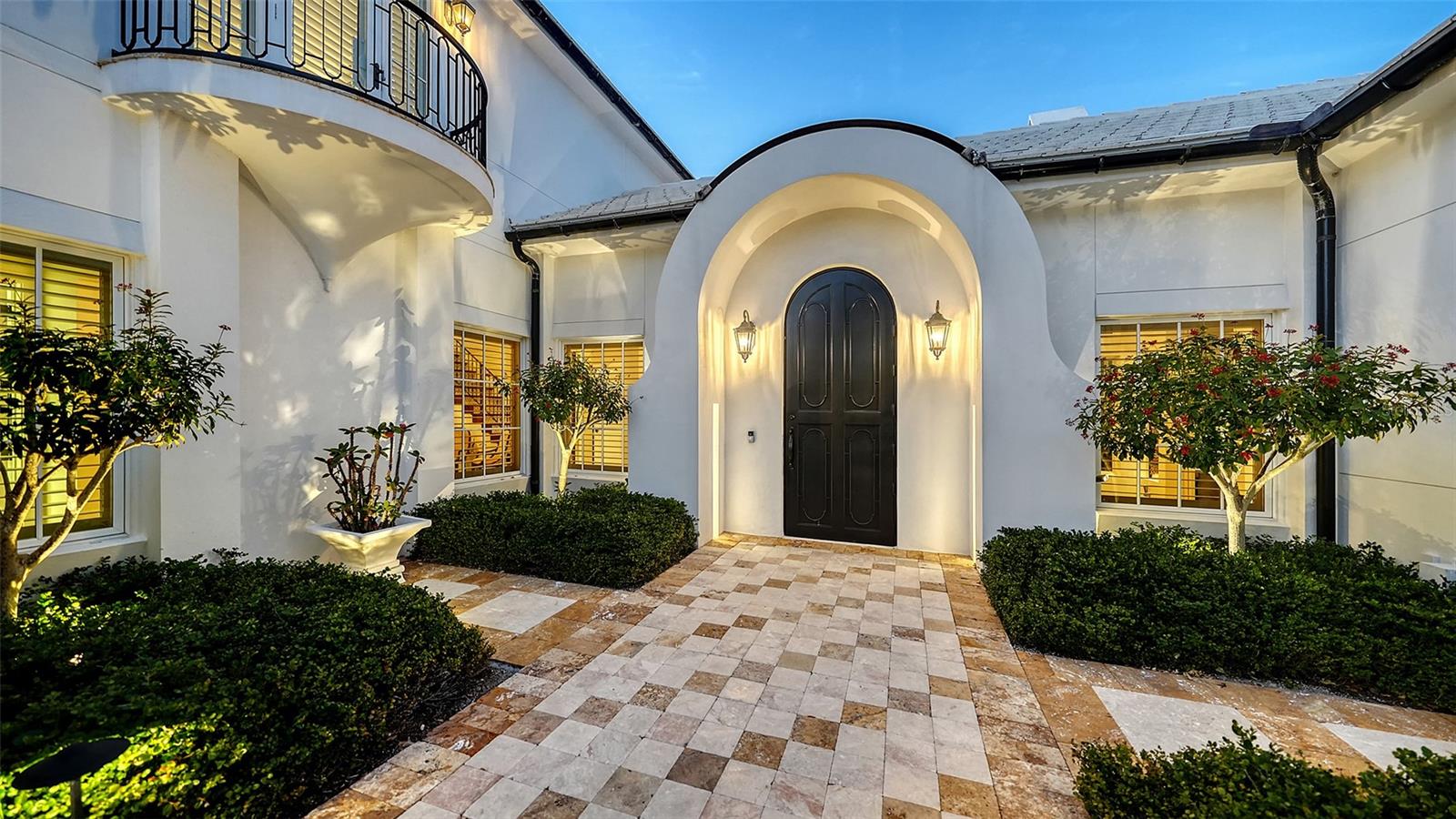 Recipient of eleven awards, including Residential Design and Build Design Excellence and Home of the Year by SRQ Magazine, this exceptional residence is the result of a thoughtful collaboration between Jonathan Parks Architect and Michael A. Gilkey Inc landscape designer. Located in one of Sarasota's oldest and most established neighborhoods, the home seamlessly blends a traditional 1920s architectural vocabulary with a modern appreciation for simplicity and precision. The result is a sophisticated four-bedroom residence with a British Colonial sensibility--elegant, timeless, and thoughtfully designed for today's lifestyle. Set on an unusually large 20,000-square-foot lot and located outside of any flood zone, the property offers a rare sense of space and privacy. An artistic pool and a series of designated outdoor living areas, framed by curated garden vignettes, complete this tranquil retreat. The striking foyer welcomes you with understated elegance, gleaming wood floors, and an immediate sense of refinement. Walls of glass define the main living spaces, filling the interior with natural light and highlighting the fireplace as a focal point. While the classic elements of a traditional home remain--stucco exterior, white roof, and ironwork details--the overall aesthetic is contemporary and quietly confident. Large windows and an open floor plan are designed to maximize light and create a seamless connection to the outdoors. A spacious screened patio offers an inviting setting for both relaxation and al fresco dining. Mature Mahoe trees, native to South Africa, line the exterior and rise gracefully to the level of the home's high windows, enhancing privacy and serenity. The primary suite occupies its own private wing on the first floor, complete with a secluded courtyard, while an ensuite guest bedroom and office balance the opposite wing. Upstairs, two additional ensuite bedrooms each enjoy private balconies overlooking the lush grounds. Throughout the home, a Zen-like sense of peace and tranquility prevails--a true sanctuary of thoughtful design and quiet luxury.