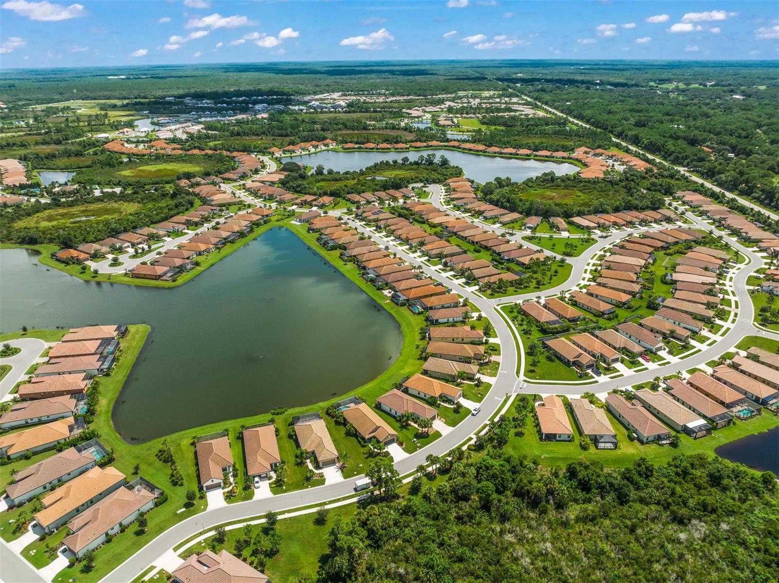 Short Sale. SHORT SALE - SOLD AS/IS - SUBJECT TO 3RD PARTY APPROVAL. This stunning water view home in the highly desirable Neal Community of Milano is a must see! The Anthem II is a well thought out floorplan consisting of 3 bedrooms, 2 full bathrooms and a den. The kitchen is highlighted by solid wood cabinets with crown molding, under cabinet lighting, tastefully tiled backsplash, stainless steel appliances, quartz countertops, closet pantry and a large island. The adjoining dining area and great room are perfect for entertaining or for quiet evenings at home. The den features recessed lights and large windows for a nice bright space that can be used for a variety of purposes. The owners suite showcases a large walk-in closet, ensuite bathroom with large glass enclosed walk-in shower and dual vanities. The two guest bedrooms share a guest bath which features a tub/shower combo. The extended covered lanai with long lake views is the perfect spot to enjoy your morning coffee or to wind down your day with an adult libation. Additional features of this home include; garage extension of 4 feet making it 24 feet deep, IMPACT RESISTANT WINDOWS AND DOORS, additional insulation in the walls, and crown molding in most rooms. Milano has low HOA fees and no CDD yet has an abundance of amenities for its residents to enjoy including; pickleball, bocce, pool, hot tub, dog park and a pool-side fire pit. Milano is centrally located with easy access to I-75, downtown Venice, the beautiful gulf beaches, the Atlanta Braves spring training facility and many dining and shopping options.