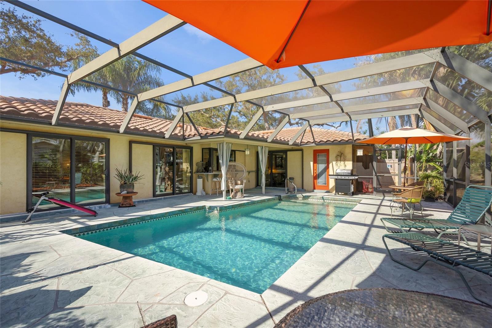 Carefree living without the condo fees & your own private pool. This 2 bedroom, 2 bath split plan home includes formal living & dining rooms, kitchen, family room, indoor laundry and lovely screened private pool area that includes outside shower. Additional feature is the oversize 2 car attached garage, all impact resistant doors & windows which should allow for maximum wind abatement insurance discounts. This property is impeccably decorated, has newer appliances and a/c unit plus tile roof with years of life remaining. Sellers are including the following items; The 54" TV and 2 decorative shelves in the family room and the island stand & room divider stand in the kitchen. Located in the popular Bent Tree Village community that is conveniently located to all of Sarasota's amenities this one of a kind single family home is one you should definitely see. Most furnishings are available.