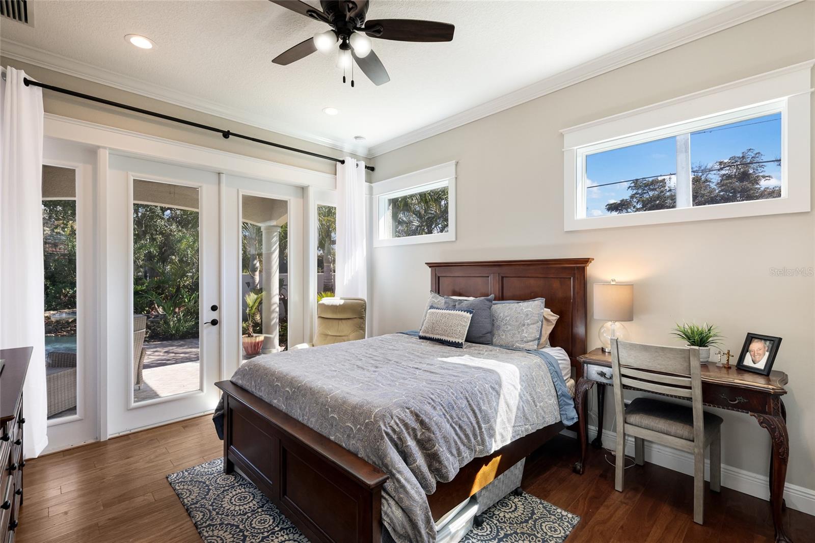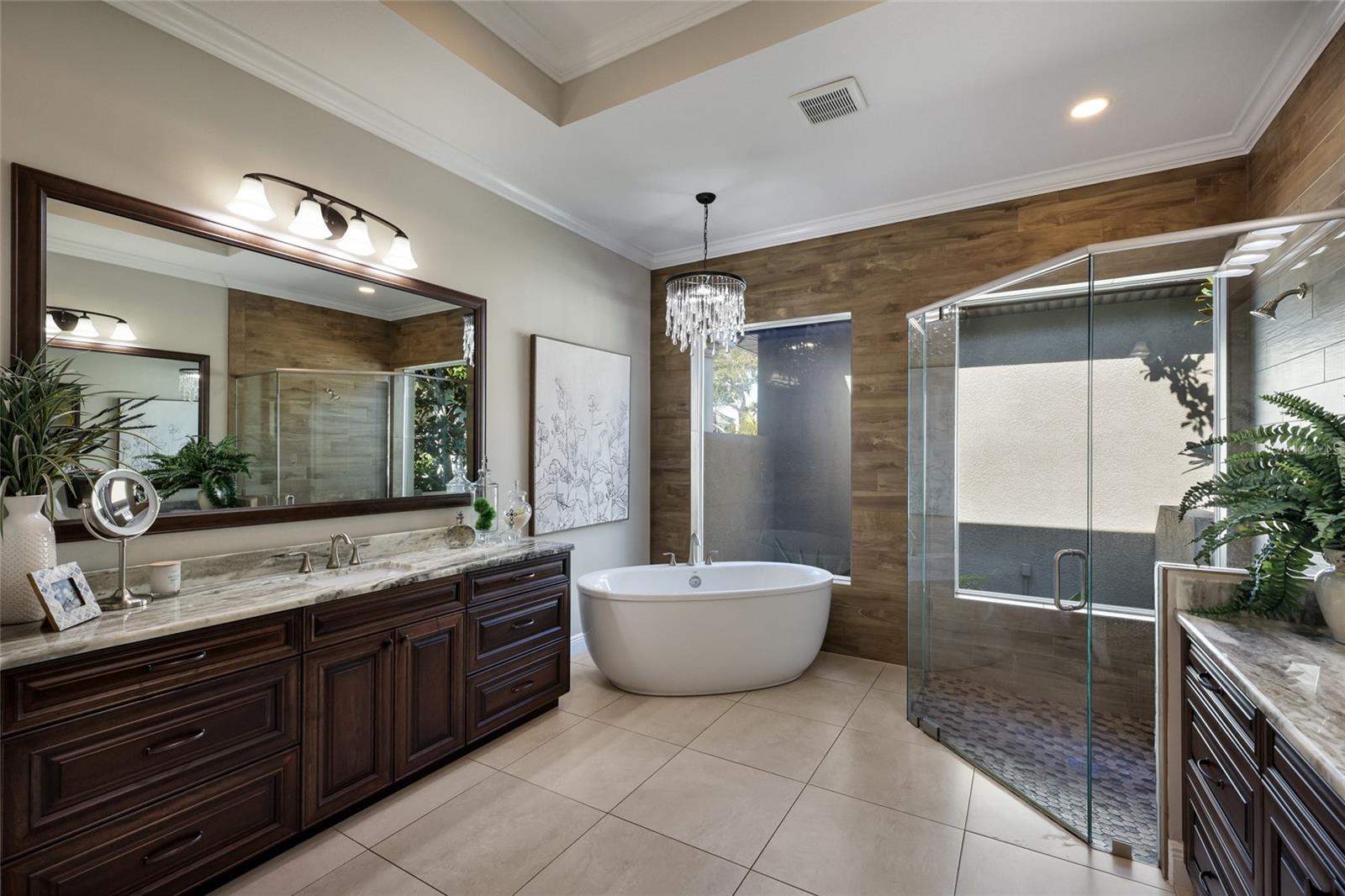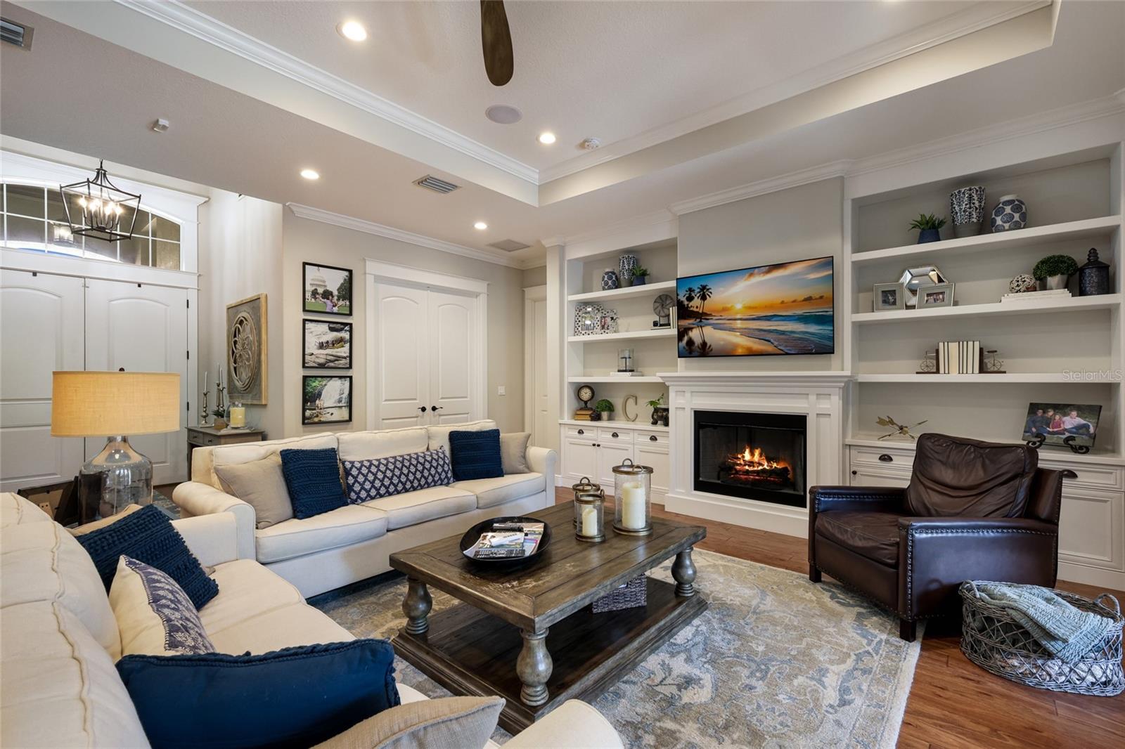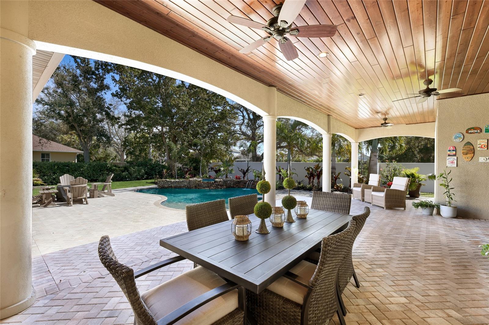 Located in the prestigious gated community of The Loop in Northwest Bradenton, this exceptional custom estate at 9702 18th Drive NW offers refined craftsmanship, expansive indoor-outdoor living, and thoughtful architectural detail throughout.Situated on a private half-acre homesite, this 4-bedroom, 4.5-bath residence was designed for both everyday comfort and elevated entertaining. The oversized covered front porch, accented by a beautifully detailed wood ceiling, establishes the home's custom craftsmanship from the moment you arrive.Upon entry, a spacious foyer welcomes you with an immediate sense of openness and architectural presence. Rich hardwood floors flow throughout the home, complemented by extensive crown molding, custom baseboards, detailed millwork, and beautifully cased windows adorned with plantation shutters. Each oversized bedroom is ensuite and features a spacious walk-in closet with custom built-ins.At the heart of the home, the oversized family room and kitchen create an open, flowing space perfect for daily living and entertaining. The kitchen is a true dream -- featuring a large center island, ample custom wood cabinetry in a sophisticated custom finish, and a wet bar ideal for hosting. GE Profile appliances, an expansive walk-in pantry, oversized laundry room, and dedicated mudroom area complete the space, seamlessly blending style, function, and comfort. Lutron lighting with dimming capability and whole-home surround sound further enhance the living areas, while three HVAC systems, including two Nest-controlled units accessible by app, ensure year-round comfort.The outdoor living experience is truly exceptional. An expansive covered lanai with a rich wood ceiling seamlessly extends the interior living space, creating the perfect setting for entertaining or relaxing. A fully equipped outdoor kitchen with built-in grill complements the space, while beyond the lanai, the oversized pool deck surrounds a custom saltwater pool with sundeck and spa -- the centerpiece of this resort-style backyard. Finished with elegant stonework, a tranquil fountain feature, and fully enclosed by a wrought-iron fence, the backyard offers ample space for lounging, dining, and enjoying the retreat. Lush, mature landscaping enhanced by professionally designed landscape lighting completes the private oasis, delivering beauty and ambiance day or night.Adding tremendous versatility, the private-entry casita offers flexibility as a mother-in-law suite, guest retreat, private office, or gym. Complete with its own kitchenette featuring a sink, refrigerator, and microwave, it functions as a self-contained space ideal for extended family or work-from-home privacy.Additional highlights include hurricane impact windows, spray foam attic insulation for enhanced energy efficiency, two garages with ample storage, and an irrigation system on a private well -- helping maintain the beautifully landscaped grounds while keeping water costs down.This is a rare opportunity to own a meticulously crafted custom home that blends timeless design, modern technology, and extraordinary indoor-outdoor living in one of Northwest Bradenton's most desirable gated communities.