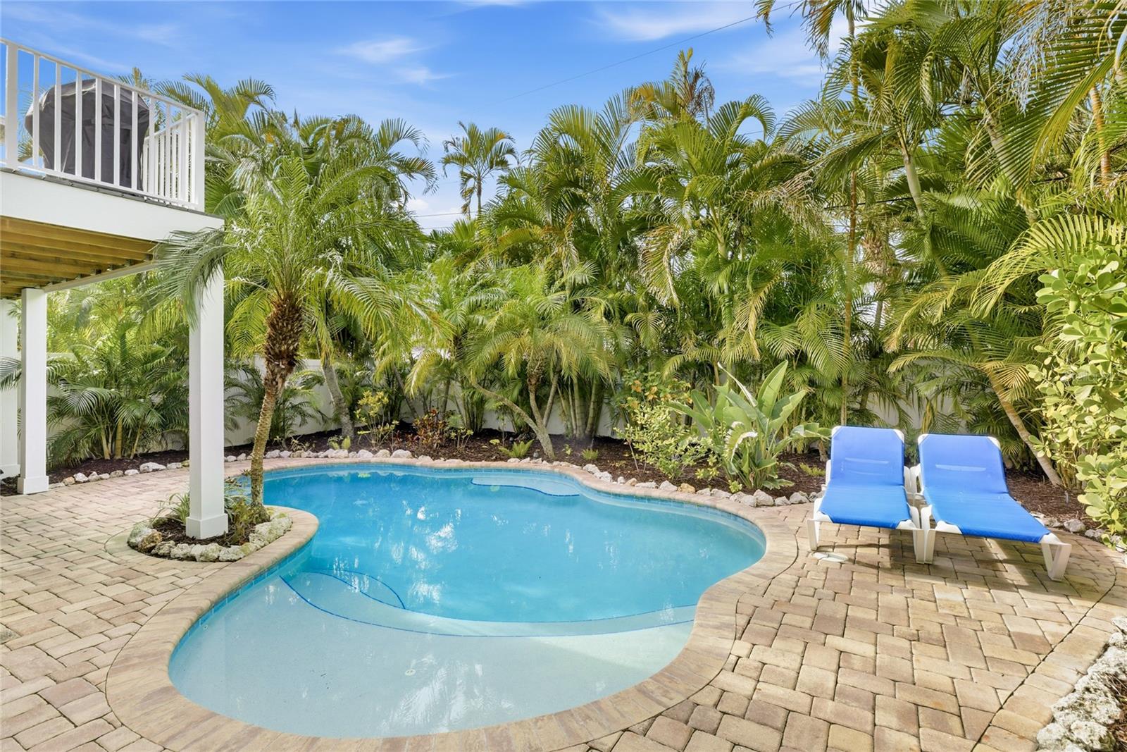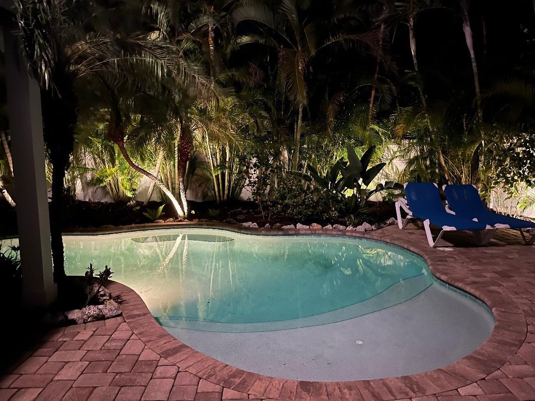 Investment Opportunity weekly rental just a short 5-minute walk to the beach on Anna Maria Island. Immaculately maintained new tin roof, bamboo flooring, Hardi Plank siding, new rear porch leading to the sparkling pool and tropical backyard with outdoor lighting. When you walk into the home it has an oversized foyer with a large storage closet and tile flooring. The interior has been recently painted. Walk up the stairs and see a very open floor plan with ten foot ceilings on the entire main floor. inviting kitchen with stainless steel appliances, breakfast bar, microwave, sink is in the island. Enjoy the salty breeze and warm air on the rear porch enjoying the view of the beautiful pool. Ride your bike or walk to many popular restaurants and local hot spots. All the bedrooms are a good size with bamboo flooring. Laundry room has built in cabinets for storage. Enjoy riding the Free Trolley all over the Island listening to live music, play pickle ball or tennis at the public courts, enjoy walking your dog to the dog park. The garage has epoxy coating on the floor, several storage areas and two car garage, hurricane rated garage door, storage binds. This is a land condo by footing only no hoa fees, it is a single family home.