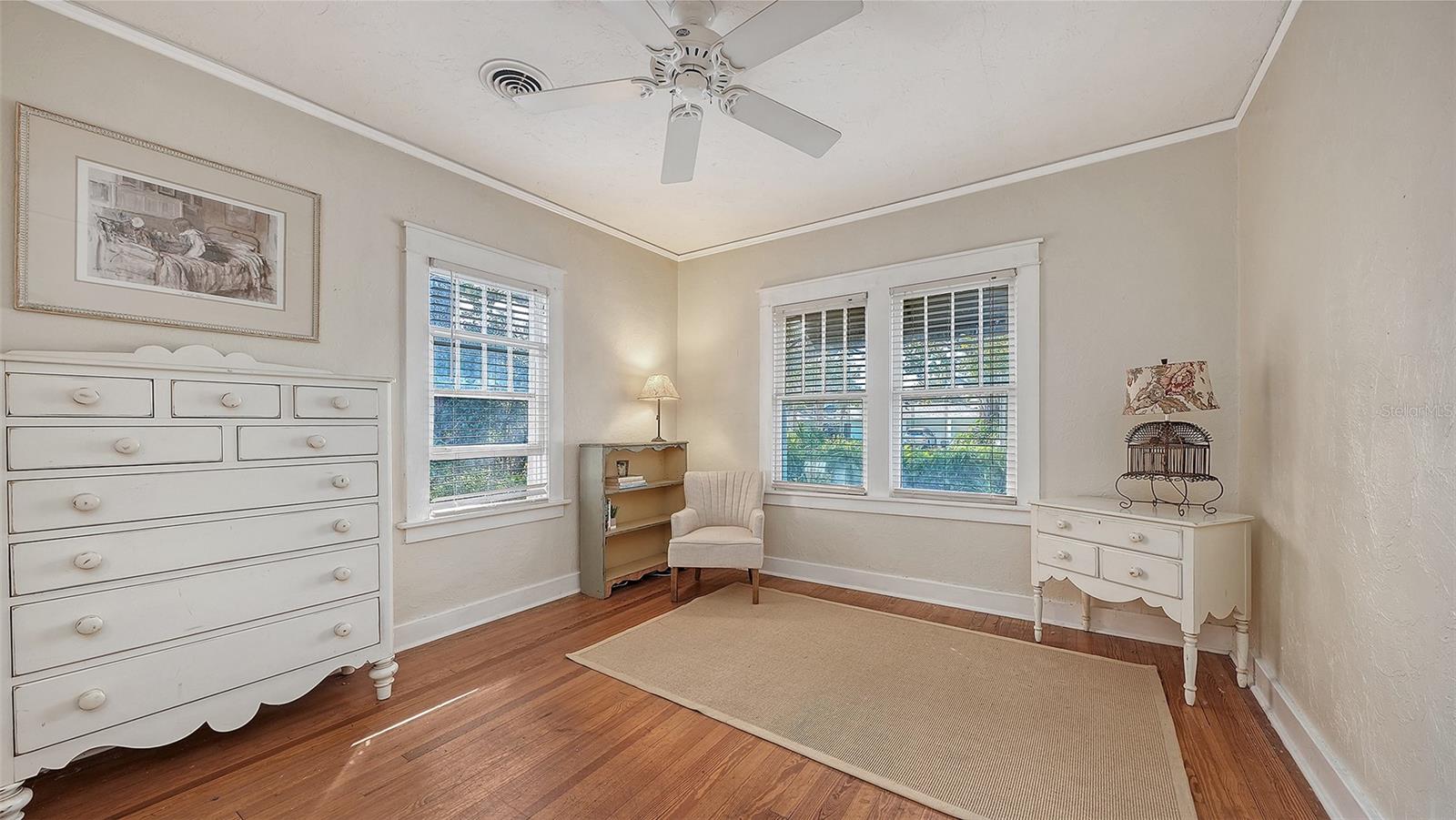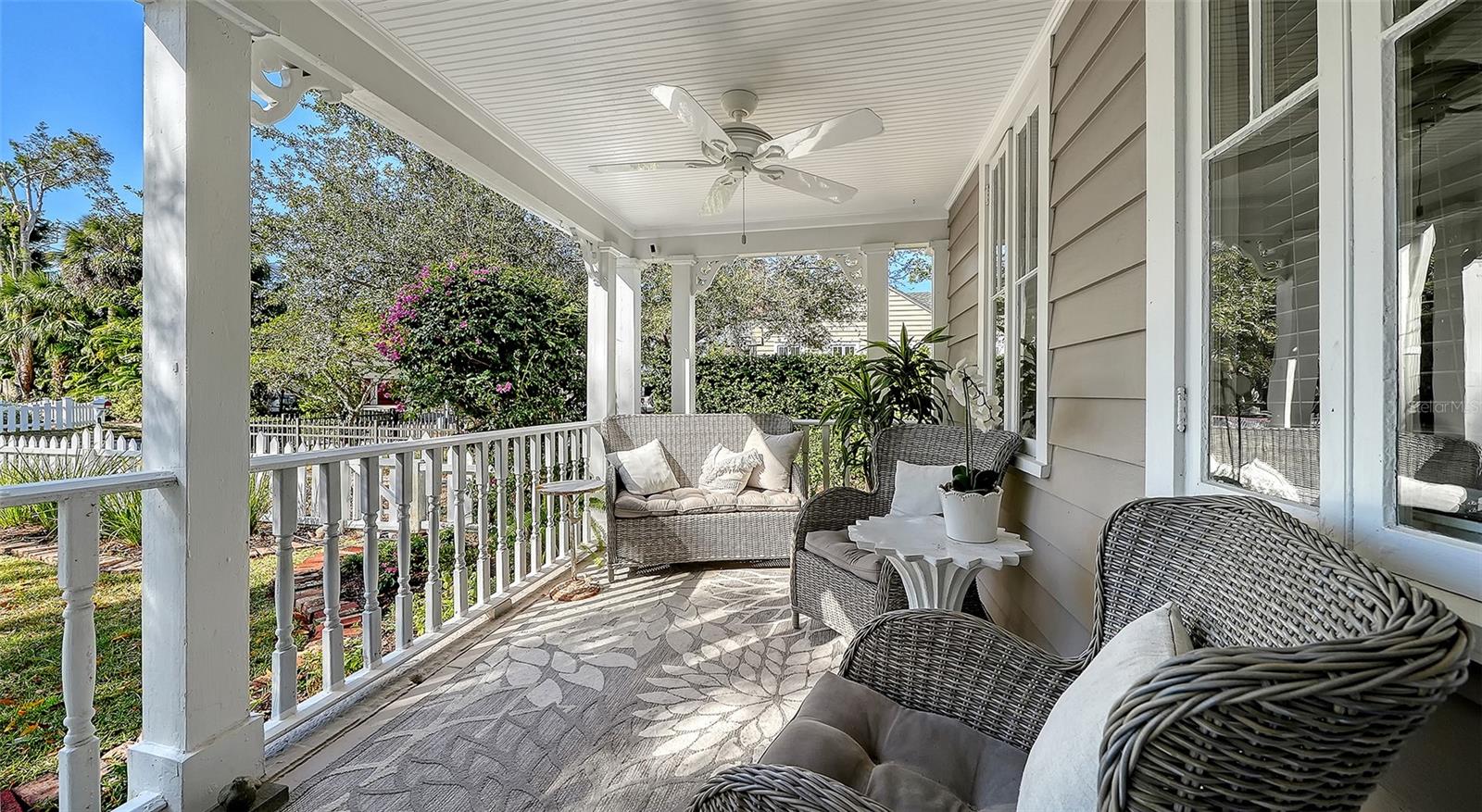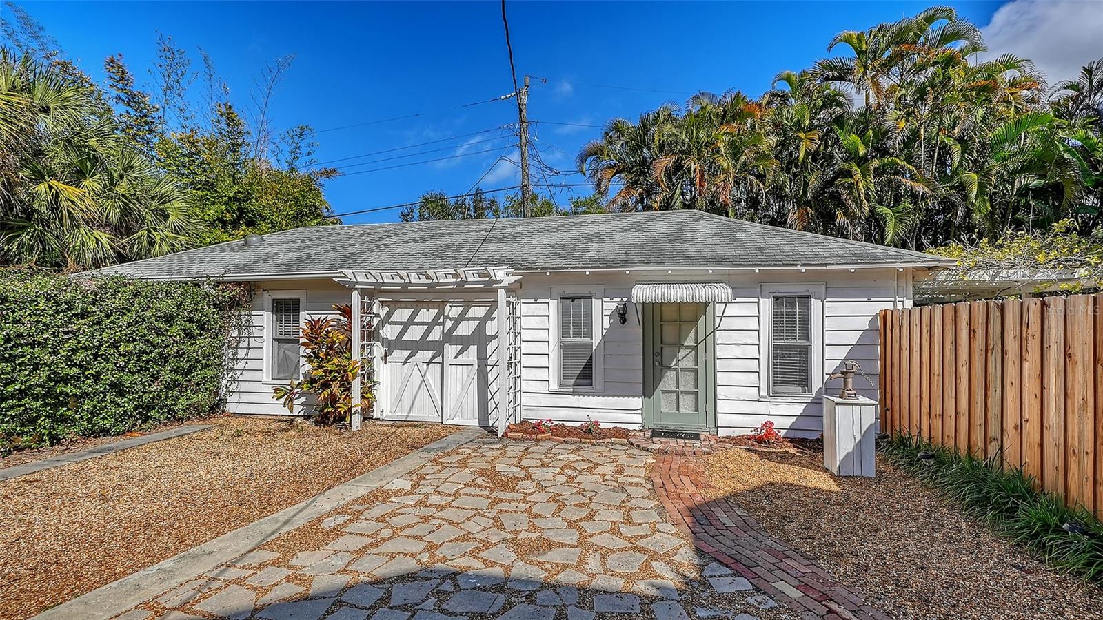 In the "heart" of the most popular West of Trail neighborhood, step into a rare piece of Sarasota history just a short stroll to Southside Village restaurants and shops, downtown and 2 blocks to Sarasota Memorial Hospital. Behind a classic white picket fence, this 1926 home welcomes you with a generous yard framed by mature landscaping and colorful gardens. A cozy front porch sets the tone for your entrance into timeless architectural details which blend seamlessly with modern updates. Wood floors run throughout the living areas with natural light pouring in through numerous windows. Tall ceilings are complimented by original wood trim. All the details we love in an older home yet with many updates. The main home offers 2,575 sq ft thoughtfully laid out for everyday living and entertaining. The main level features multiple living spaces, separate dining room, a guest bedroom, a dedicated office and laundry room. Upstairs, the spacious owner's suite plus an additional bedroom with ensuite bathroom provide comfort and privacy. The remodeled kitchen is beautifully appointed with granite counters and custom cabinetry AND....a charming 306 sf studio-style guest cottage that has its own entrance and patio. COME SEE THIS BEAUTY, you will LOVE it.