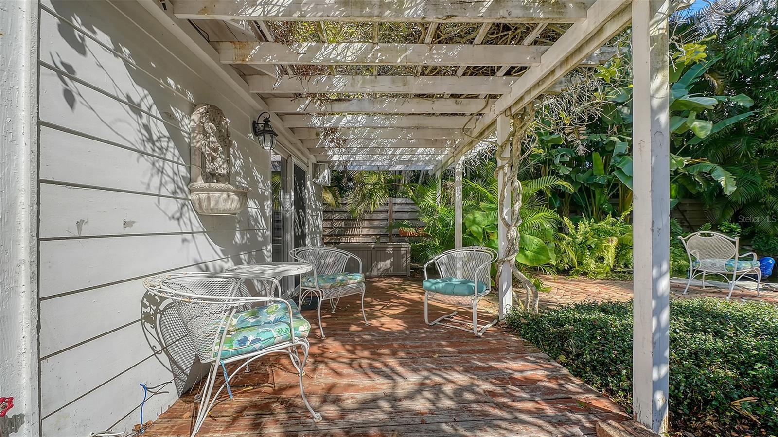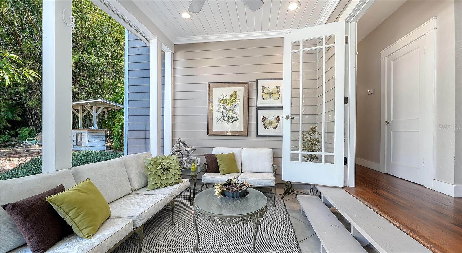 Exterior: Awning(s), French Doors, Garden, Private Yard