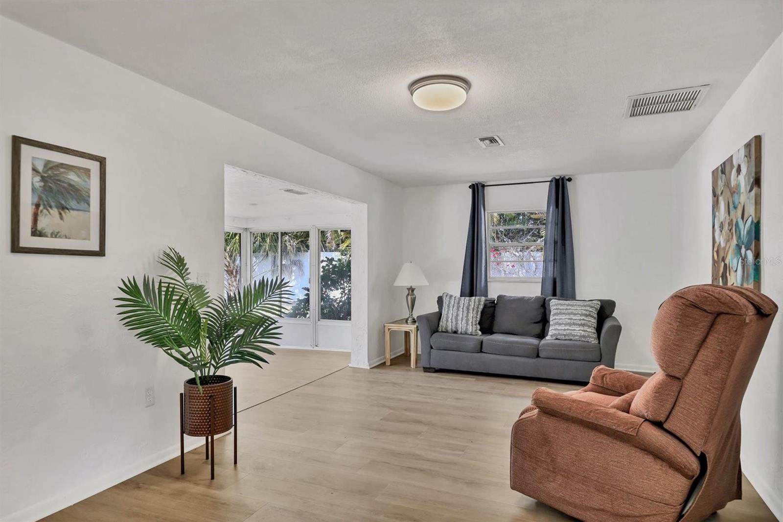 Location! Location! Location! Don't miss this opportunity to own a beautifully updated 2-bedroom, 2-bath Block home in the desirable highly sought-after Whitfield Estates neighborhood. From the moment you pull in the driveway you will fall in love with the Paver driveway, double front doors, 2 car garage, pavers around the screened in cage pool on a Huge lot. The entrance has large foyer with cloat closet and a quait living room leading into the kitchen. The inviting home has Luxury Plank Vinyl flooring throughout, the inside has been freshly pinted. The kitchen has updated cabinets, pantry, eat-in countop and is open to the family room, leading into the enclosed lanai overlooking the pool and fablous backyard. The Master bedroom has a spacious walk-in closet, sliding glass doors out to the pool, encuite barthroon with a walk-in showrr and a door out to the pool. The second bedroom shares a large hall bathroom with linen closet, bathtub shower comdo.Fresh Interior Paint walls and ceiling , new ceiling Fans. Whitfield Estates is a deed-restricted community with an optional HOA fee of only $30 year! Centrally located near Sarasota's beautiful beaches, top-rated restaurants, and world-class shopping at UTC Mall, this exceptional home offers the perfect blend of style, comfort, and convenience. This one won't last long--schedule your showing today!