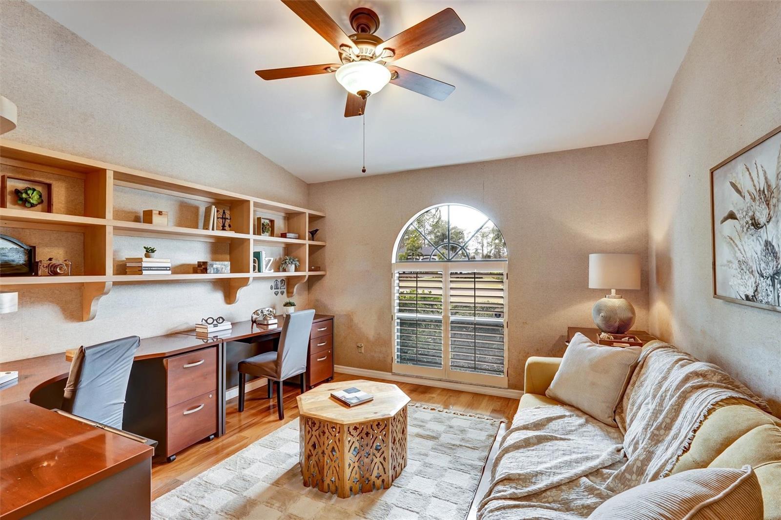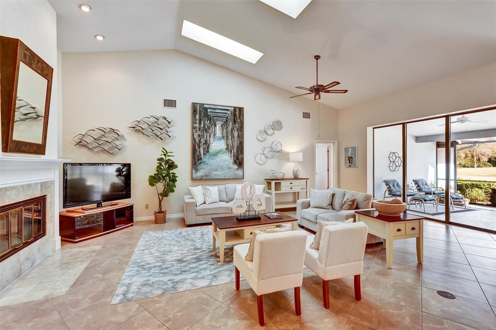 Welcome to a home that truly embraces the beauty of lakefront living. Nestled within the highly desirable Woodlands II community of Bent Tree Village, this stunning four-bedroom, three-bath residence offers 3,287 square feet of thoughtfully designed space where comfort and elegance come together effortlessly on a generous 3/4-acre lot. The fourth-bedroom is currently being used as an office. From the moment you arrive, you'll feel the peaceful charm of this established neighborhood, surrounded by mature landscaping, tranquil lakes, and the manicured fairways of the Bent Tree 18-hole golf course (membership optional).Step inside and be greeted by soaring vaulted ceilings, elegant tile flooring, and an airy open layout filled with natural light. Multiple sliding glass doors invite the outdoors in, creating a seamless flow to the expansive lake views beyond. The family room fireplace with its beautiful mantle sets the stage for cozy evenings and memorable holiday gatherings. The heart of the home is the inviting kitchen, complete with stainless steel appliances, a generous island, and abundant workspace--perfect for everything from casual breakfasts to hosting family and friends. Skylights in the family room bathe the space in sunshine, adding warmth and brightness throughout the day. Outdoor living is where this home truly shines. Enjoy two screened-in patios overlooking the sparkling lake, along with an additional open patio designed for entertaining, relaxing, and soaking in breathtaking sunsets.The owner's suite is a private retreat, featuring dual walk-in closets and a spa-inspired bath with dual vanities and a beautifully finished stone shower--your own peaceful escape at the end of the day. With a roof replaced in 2021 and A/C updated in 2018, this move-in-ready home offers both luxury and peace of mind. If you've been searching for a home that feels welcoming, refined, and perfectly positioned to enjoy Florida's indoor-outdoor lifestyle, 7307 Weeping Willow Dr is ready to welcome you home.