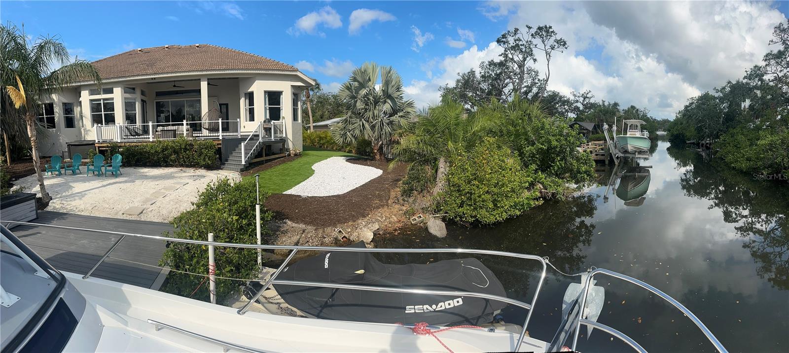 DON'T MISS THIS BOATER'S PARADISE!! Welcome to your private waterfront retreat, where relaxed luxury meets the best of Florida living. With deep-water canal access to the Gulf, premium finishes throughout, and true walkability to restaurants, pickleball, and kayaking, this home delivers a rare combination of lifestyle and location. Inside, the home is anchored by an enormous chef's kitchen featuring a massive mitered-edge island, expansive counter space, and seamless connection to the living and dining areas. The open layout is exceptional for entertaining, while the modern electric fireplace adds warmth and a refined focal point to the main living space. Out back, enjoy your private dock on a deep-water canal just one mile from the Gulf--great for boating, fishing, jet skis, or launching kayaks from your own backyard. The fenced yard is finished with premium artificial turf and lush landscaping, offering year-round beauty with minimal maintenance. The home is already pool-ready and includes engineered plans and a full 3D rendering for a luxury pool--saving months of planning time and thousands in design costs. Set on a quiet private road with no through traffic and a county park directly across the street, the setting is both peaceful and exceptionally convenient: Walk to three different tiki bars, waterfront restaurants, and shopping 3-minute walk to tennis and pickleball courts Direct bike access to the Legacy Trail No HOA High elevation so No flood damage from recent hurricanes A rare waterfront opportunity offering privacy, walkability, and immediate Gulf access. Call and schedule your private showing today!!