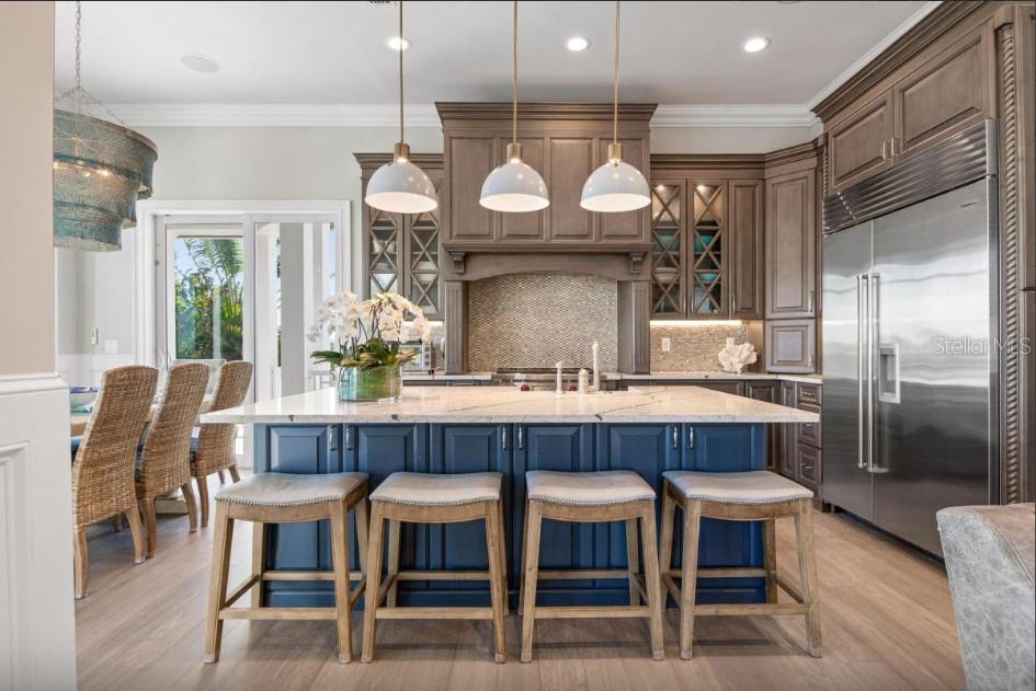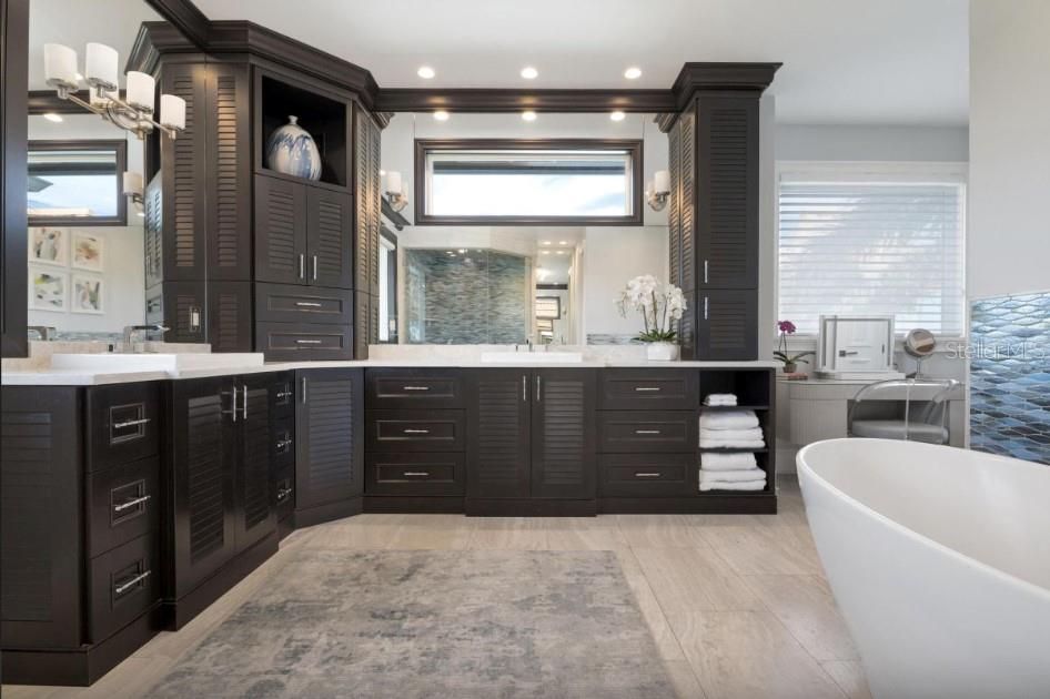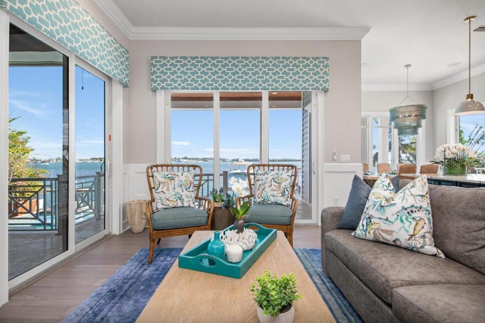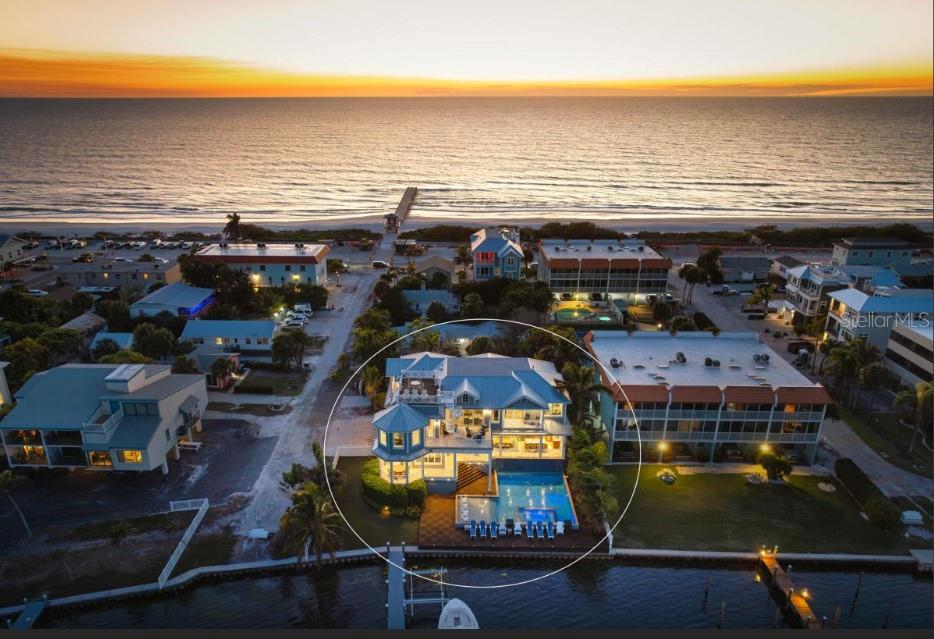Experience the pinnacle of waterfront living in this extraordinary custom bayfront estate, offered fully turn-key and professionally decorated. Encompassing 6,000 square feet of living space and 8,747 square feet under roof, this architectural masterpiece delivers breathtaking 360-degree panoramic views of the Gulf of Mexico and The Inter Coastal Water Way,through dramatic floor-to-ceiling glass walls. Designed for both grand entertaining and relaxed coastal living, the residence features 7 spacious bedrooms, 5 full bathrooms, and 2 half baths. Two fully equipped gourmet kitchens showcase solid wood custom cabinetry, striking tile backsplashes, oversized marble countertops with expansive islands, and high-end stainless-steel appliances, including gas ranges--perfect for hosting family and guests with ease. The luxurious primary suite offers a serene retreat with an elegant en-suite bath, complete with a soaking tub and walk-in steam shower. Additional highlights include an elevator, private theater room and a game room with pool table, creating exceptional indoor entertainment spaces. Outdoor living is elevated to resort caliber with expansive balconies featuring a built-in outdoor kitchen, bar, and dining area--ideal for sunset gatherings. The spectacular heated pool boasts a waterfall feature, sun shelf, and a spa with custom lighting, all overlooking tranquil bay waters.Boating enthusiasts will appreciate the private dock, two boat lifts, and jet ski lift, while a rooftop deck offers yet another vantage point for unforgettable views and stargazing. Recent upgrades include five new central HVAC systems, new flooring, new garage doors, new poolside tile, fresh interior and exterior paint, designer wallpaper, updated light fixtures, and new washer and dryer--ensuring effortless, worry-free ownership. This property is ideally suited for weekly short-term rentals, offering a rare opportunity to combine luxury ownership with strong income potential. Its premier bayfront location, expansive sleeping capacity, resort style amenities, and turnkey, professionally decorated interiors make it highly desirable for high end vacation rentals and multi-family retreats on Anna Maria Island. This is a rare opportunity to own a one-of-a- kind luxury home with timeless design, modern upgrades, and unparalleled water views converge.