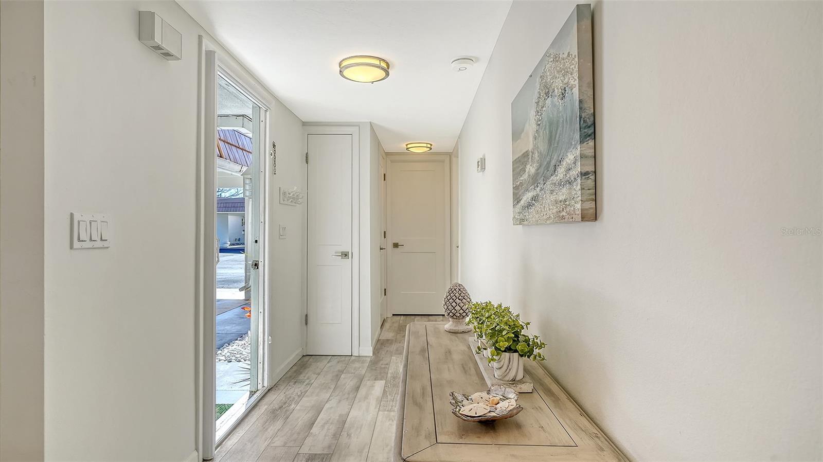 Welcome to Strathmore Riverside, a highly desirable 55+ waterfront community on Phillippi Creek with access to the Gulf of Mexico and just 1.9 miles from the Siesta Key South Bridge. World-famous Siesta Key beaches and Detwiler's Farm Market are only minutes away.This beautifully updated 2-bedroom, 2-bath villa offers 1,120 square feet under air with a desirable split floor plan. Luxury vinyl plank flooring runs throughout, complemented by high baseboards, recessed lighting, upgraded ceiling fans, and quality doors and hardware.The renovated kitchen features quartz countertops, modern wood cabinetry, stainless steel appliances, with a beautiful island for entertaining. Recessed tray ceiling and coordinating finishes create a seamless flow into the dining and living areas. Access to your own outdoor grilling area is conveniently located just outside. Enjoy a quiet, private backyard with expansive open green space and no homes directly behind you, offering added privacy and peaceful views.Both bathrooms have been upgraded with quartz countertops, updated vanities, and modern fixtures. Custom built-in plantation shutters gives you lots of privacy through out the home. Windows have also been replaced. The attached laundry room is located under the covered carport and includes additional storage space. Community amenities include a heated pool, clubhouse, fitness center, sauna, library, recreational facilities, and an active social calendar. Boat slips are available for an additional fee. (waiting list may apply). Enjoy low-maintenance living, with basic cable, water, trash, sewer included in your monthly dues.