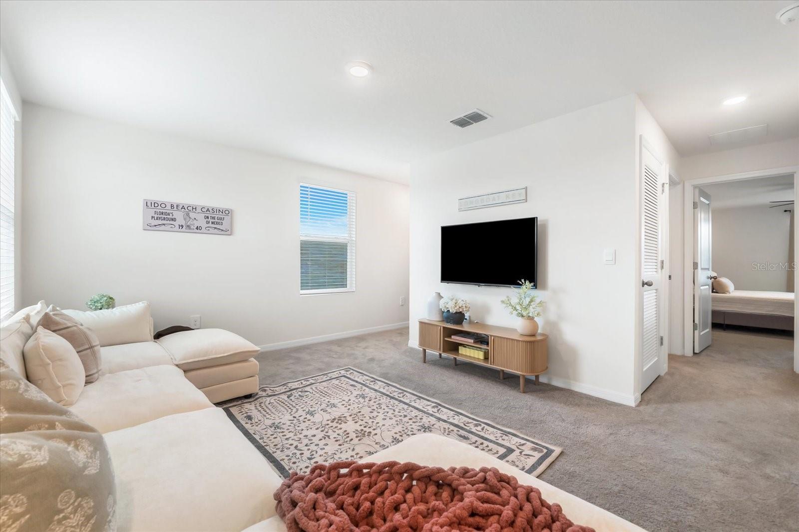 Discover this inviting three-bedroom, two-and-a-half-bath residence in the desirable Evergreen neighborhood. The main level offers a bright, open floor plan where the living room, dining space, and kitchen flow seamlessly together--ideal for both daily life and entertaining. The kitchen is thoughtfully designed with abundant cabinetry, a walk-in pantry, and convenient sightlines to the main living areas. Upstairs, a flexible loft area provides additional living space alongside two secondary bedrooms, a full bathroom, and a centrally located laundry room. The primary suite serves as a private retreat, featuring a spacious walk-in closet and an en-suite bath with an extended vanity. Step outside to a fully enclosed, oversized backyard--perfect for outdoor enjoyment, pets, or weekend gatherings. A two-car garage adds practical storage and parking space. Residents of the community enjoy access to a resort-style pool and a covered pavilion, creating a great setting for socializing and relaxing. This well-cared-for home offers comfort, space, and a true neighborhood feel.