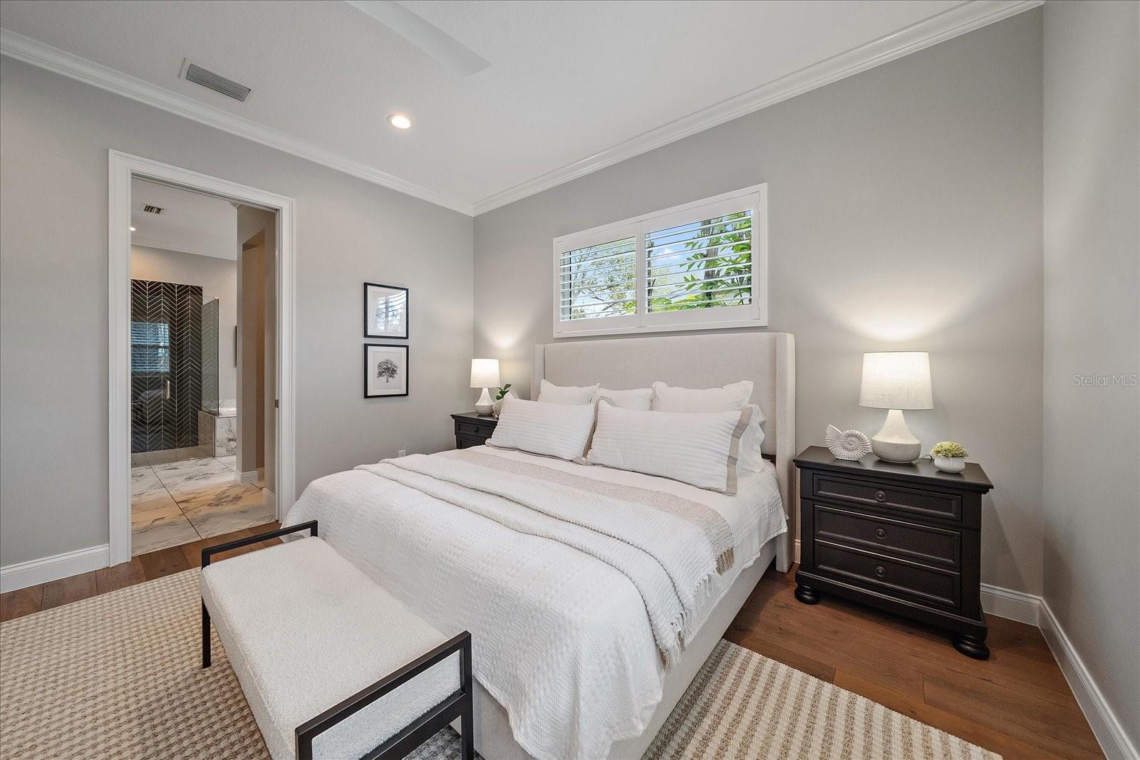 Located East of the Trail within the city limits of Sarasota, this custom-built 2017 Voigt Brothers pool home offers 3,120 square feet of living space on an oversized, gated, and fully fenced lot in one of Sarasota's most sought-after residential neighborhoods. Just minutes to Siesta Key Beach, Lido Key Beach, downtown Sarasota, and Southside Village, this central Sarasota location offers privacy, convenience, and long-term value. Being located within Sarasota city limits also provides potential short-term rental flexibility, subject to current city regulations and buyer verification. Positioned in Flood Zone X and built with concrete block construction, the home offers durability and added peace of mind. Designed with a functional open floor plan, the home features high ceilings, abundant natural light, and seamless indoor-outdoor living. The living room is anchored by a modern electric fireplace, creating a warm focal point for the main gathering space. Automatic blinds at the front door provide added privacy and convenience. A three-panel sliding glass door connects the main living area to the covered lanai and screened pool, a highly desirable feature in Sarasota pool homes. The kitchen is equipped with Quartz countertops, stainless steel appliances, gas range, large center island, and newly installed refrigerator, microwave, and wine refrigerator in 2025. The primary bedroom is located on the first floor and serves as a private owner's retreat with two walk-in closets and a spacious bath featuring marble flooring, soaking tub, walk-in shower, and dual vanities. A dedicated first-floor laundry room adds everyday convenience. Upstairs, engineered hardwood flooring has replaced previous carpet throughout the staircase and second level. The second floor includes a large bonus room ideal for a media room, home office, or gym. Two secondary bedrooms share a bath on one side, while a second primary suite with ensuite bath and walk-in closet is positioned privately on the opposite side, creating a desirable double-primary layout suitable for guests, multigenerational living, or flexible use. Outdoor living is designed for entertaining, featuring a screened lanai, paver pool deck, covered terrace, and fully equipped outdoor kitchen adjacent to the pool area. A newly added pool handrail enhances accessibility, and the fully fenced side yard provides usable green space for pets or recreation. The garage features epoxy-coated flooring for a clean, finished appearance. Recent improvements include fresh interior paint, professional cleaning, power washing, gutter maintenance, and refreshed landscaping, making the home move-in ready.Additional features include hurricane impact-rated windows and doors, spray foam insulation, gas tankless water heater, LED lighting, and solid concrete block construction for energy efficiency and storm protection. Zoned for Southside Elementary, Sarasota Middle School, and Sarasota High School, this East of the Trail Sarasota home offers a flexible double-primary floor plan, outdoor kitchen, pool, and proximity to beaches and downtown in one of the city's most desirable residential areas.