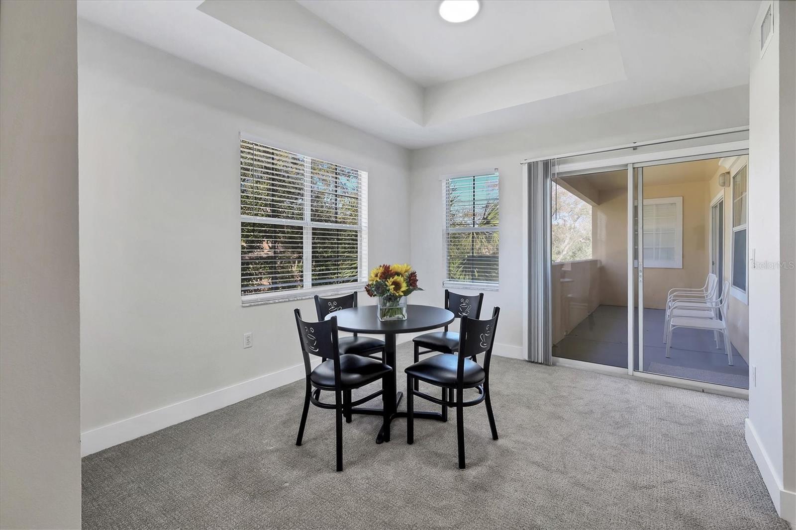 If you're searching for a beautifully updated 3-bedroom, 2-bathroom condominium in the highly desirable, gated Villagio community near downtown Sarasota, this is the one. This inviting residence has been recently refreshed with plush new carpeting, stylish tile flooring in the kitchen and bathrooms, as well as updated fans and light fixtures throughout. From the moment you step inside, you'll appreciate the bright, open-concept living and dining area, enhanced by elegant tray ceilings that add architectural charm. The centrally located kitchen is both functional and welcoming, offering abundant cabinetry, stainless steel appliances, granite countertops, and a breakfast bar that's ideal for casual dining or entertaining guests. Retreat to the spacious primary suite, your own private haven featuring an updated ensuite bathroom with shower, a generous walk-in closet, and a versatile office or additional storage nook. Sliding doors from both the primary bedroom and dining area bring in lots of natural light and lead to a large, covered lanai--perfect for morning coffees or relaxing evenings. Two additional bedrooms provide ample closet space, and the guest bathroom with a bathtub is right next door. An in-unit laundry room with washer and dryer adds everyday convenience. Keep your cars protected from the elements, two deeded covered carports come with the unit. Villagio residents enjoy outstanding amenities, including a clubhouse with fitness center, heated resort-style pool, tennis and pickleball court, and a fenced dog park. Ideally situated near downtown Sarasota, marinas, and the Baltimore Orioles' spring training facility at Ed Smith Stadium. You'll also be just a short drive away from the stunning beaches of Lido Key and Siesta Key. Travel is effortless with close proximity to Sarasota/Bradenton International Airport and I75 and US301 close by. Whether you're seeking a full-time residence, a winter retreat, or an investment opportunity this exceptional condo offers it all. Call today to schedule your private showing or virtual tour.