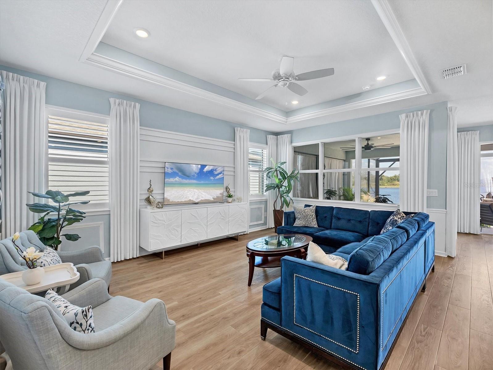 Sited in Del Webb Bay View, a highly fit and very active community, This MYSTIQUE floor plan with an excellent Craftsman elevation and majestic pond views is being offered with the following upgrades and additions: Water filtration and Reverse Osmosis, kitchen Refrigerator, washer and dryer, two drawer Cafe series dishwasher, fully fitted Primary closet and a former drop zone that has been fitted as an enormous Storage closet. Above the crown in the Gathering room, LED lights set the mood. Impact windows and doors. No carpet anywhere! BUT it's the spectacular southern water views that will make your heartbeat quicken and provide a huge WOW. NO Flood Insurance required.The Mystique is a 2 bedroom, two bath, plus den floor plan of 1880 sq ft. The two-car garage is a tandem design that either provides room for a boat, a workshop or a golf cart. Come fall in love with all the lifestyle this home offers.