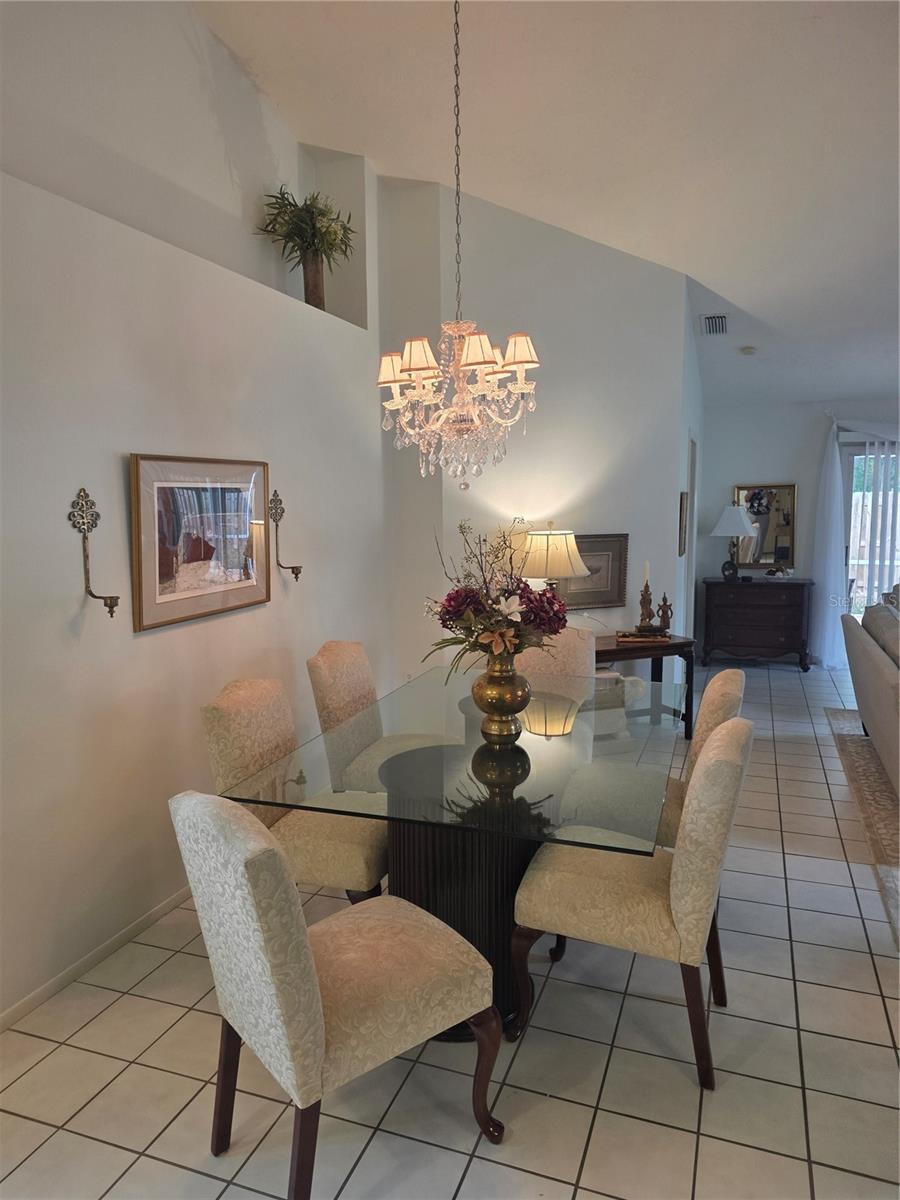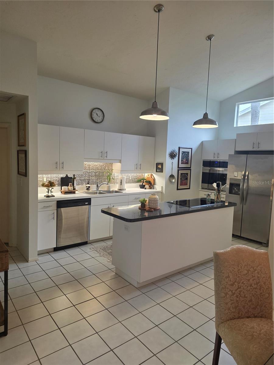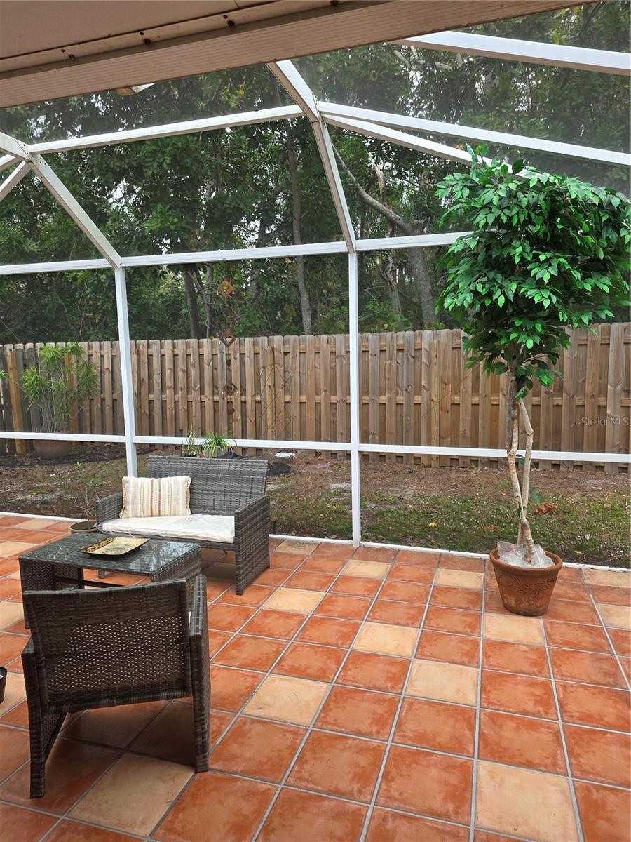 Oasis on a Cul-de-Sac! Step into this elegant home, perfectly positioned on a quiet cul-de-sac. The living areas are bathed in natural light, highlighted by soaring vaulted ceilings and fixed glass, creating an airy, open feel. The heart of the home is a modern kitchen, featuring wood cabinets and a large island with an electric stovetop, and a wall oven. All floors are tile except for the bedrooms, which have cozy carpet. Step outside to the screened in lanai with Mexican terracotta floor, leading to a fenced in backyard backing to a conservation area, providing ultimate privacy.This home's location is truly unbeatable. Less than 5 miles from I-75 and University Town Center (UTC), offering a wealth of shops and restaurants. Sarasota-Bradenton International Airport is also just 5 miles, while Lido Beach is under 10 miles. The Treetops neighborhood features an HOA that includes a community pool and tennis court, basicinternet service, and No CDD fees. Don't miss this opportunity to make this beautifully maintained, move-in ready home yours.
