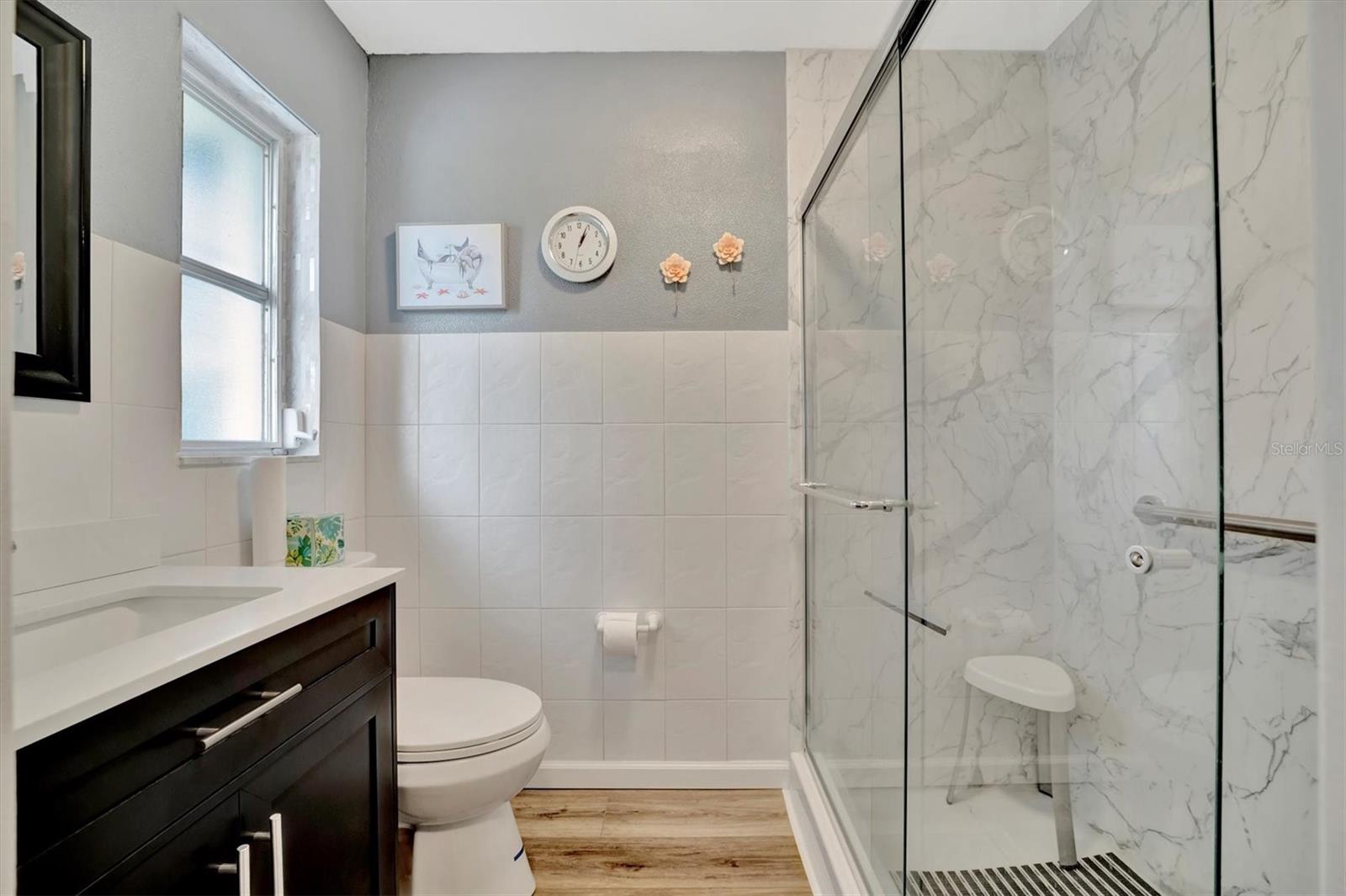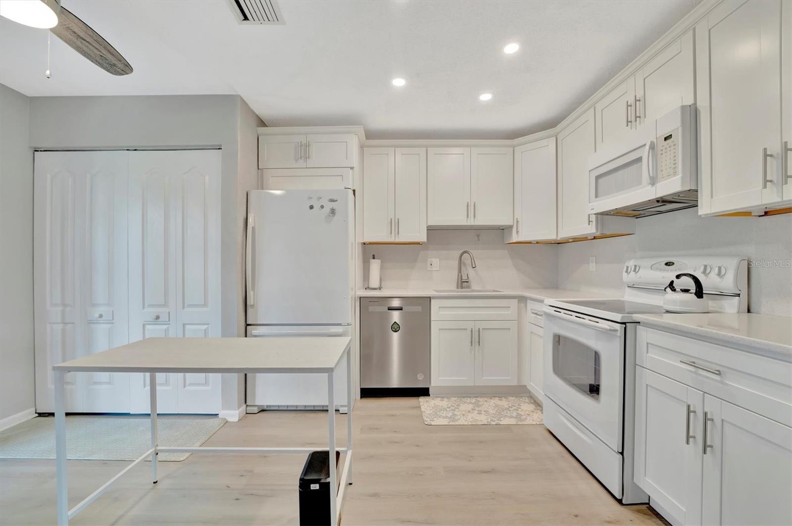 This immaculate, turnkey, and furnished condominium is a true gem, nestled in the desirable 55+ community of Cortez Villas in West Bradenton. PET FRIENDLY and perfectly maintained, this home offers unparalleled convenience and comfort. Just a short drive away, you will find a public executive golf course, shopping, banks, and restaurants. The stunning Gulf Beaches of Anna Maria Island are only 15 minutes away by car, and the Sarasota- Bradenton Airport is less than a 30 minute drive. This ground-level, single-floor unit features parking right at your front door, 2 bedrooms, and 2 full baths. The primary bedroom includes an en-suite bath with a walk-in shower, and there is an enclosed patio area perfect for unwinding after a long day. The community heated pool and clubhouse are just steps from your back door, making relaxation and socializing a breeze. Recent updates in 2023 include a fresh coat of paint throughout the unit, new luxury vinyl plank flooring, modern ceiling fans, a new expanded electric panel, and new plumbing fixtures. The kitchen renovation features timeless white cabinets, high-end quartz countertops and backsplash, recessed lighting, and a breakfast bar. Cortez Villas is one of the few condo associations in Bradenton that allows grills for those who love to barbecue and enjoy outdoor cooking. It has one of the lowest condo fees in the area, inclusive of water, sewer, trash pickup, internet, and cable. As a bonus, the recently replaced roof with wind mitigation reduces homeowners insurance by 35%. This home offers a blend of luxury, convenience, and a prime location! Don't miss out on this fantastic opportunity!