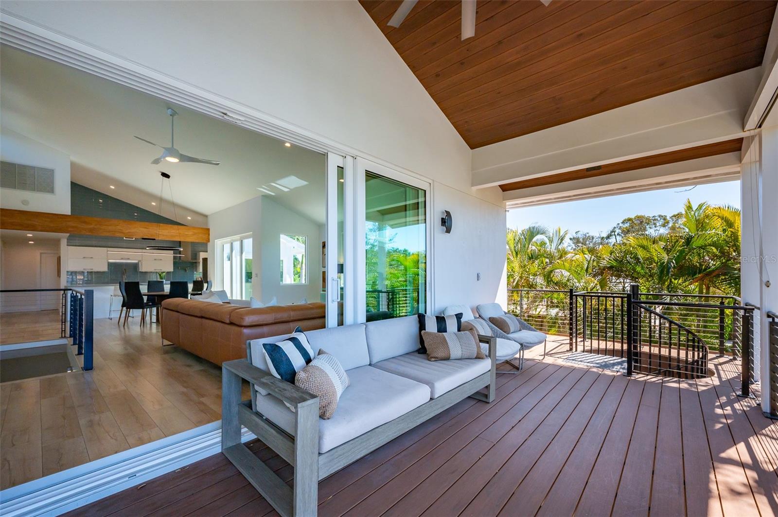 Experience the pinnacle of waterfront luxury on Siesta Key's prestigious Grand Canal. This meticulously reimagined residence at 4938 Commonwealth Drive offers a rare blend of modern sophistication, structural integrity, and complete peace of mind. Extensively transformed both structurally and aesthetically, the home welcomes you into an expansive open-concept design filled with natural light. The newly expanded kitchen serves as the heart of the home, offering abundant cabinetry and storage, a double oven, generous pantry storage, striking custom beam detail, an open breakfast bar, and direct access to the wraparound decking--creating seamless indoor-outdoor living and effortless entertaining. A stylish powder room has also been thoughtfully added. New hurricane-impact windows and sliding glass doors frame the interiors, while designer flooring flows beautifully throughout both levels. Major system upgrades elevate the home's value and efficiency, including a brand-new roof and a comprehensive solar power system with battery storage. A fresh, contemporary interior palette enhances the clean architectural lines and airy coastal feel. The lower level adds over 1,300 square feet of legal non-conforming living space with its own private entry, garage access, and elevator connection to the main living areas, leading directly to the pool deck. Redesigned for modern functionality, this space features a spacious family entertainment area, custom bar, and an additional guest suite with a walk-in closet and full bath--ideal for extended family, guests, or a private retreat. Outdoor living is equally impressive. The private backyard sanctuary showcases a heated pool and spa with a new heater and filtration system, sleek updated decking, professional landscaping, and premium artificial turf for effortless maintenance. For the boating enthusiast, the deep-water dock and boat lift provide direct access to the Intracoastal Waterway and open waters of Sarasota Bay, delivering the ultimate waterfront lifestyle.