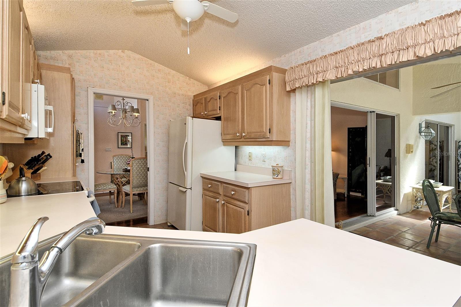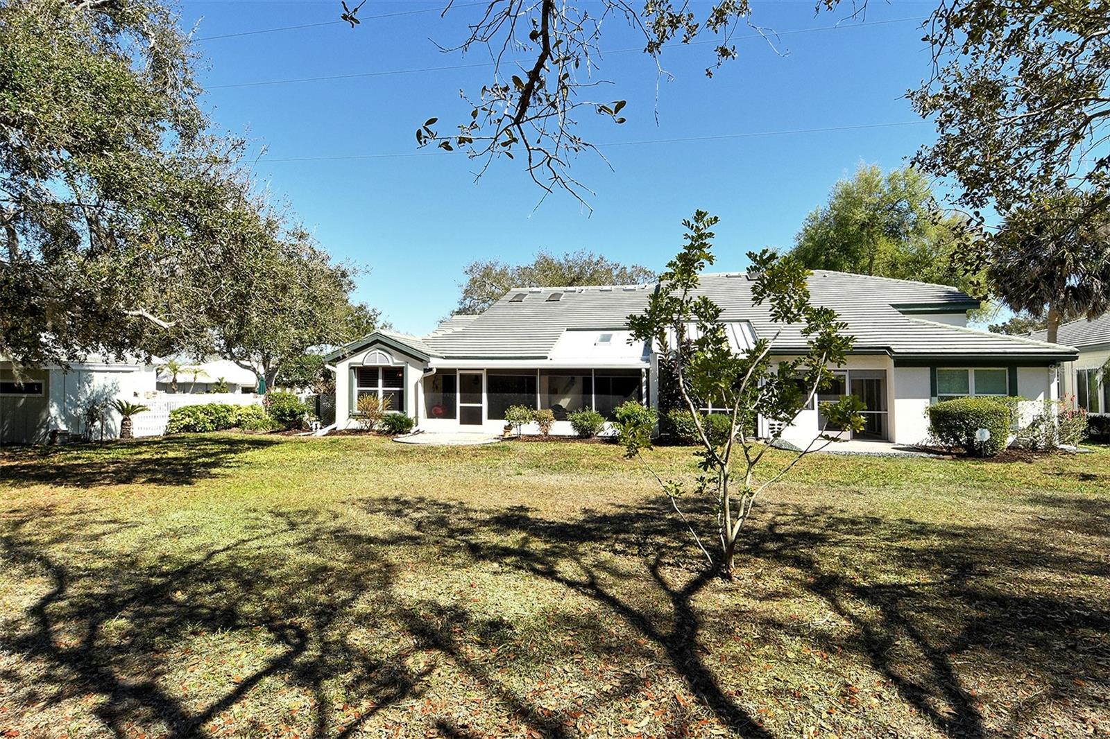 Only property currently listed for sale in Bridle Oaks! This beautiful, maintenance-free Paired Villa is tucked away on a quiet cul-de-sac and located in close proximity to the community club house and swimming pool. From the moment you arrive, you'll appreciate the home's charming curb appeal, lush landscaping, and peaceful setting. Step inside to discover a bright, open floorpan designed for both everyday living and effortless entertaining. Large vaulted ceilings and gorgeous skylights provide an abundance of natural light and an airy atmosphere, while thoughtfully designed living and dining spaces flow seamlessly together. The well-appointed kitchen serves at the heart of the home offering ample cabinetry, generous counter space, and a convenient layout that makes cooking and hosting a pleasure. Natural real wood flooring has been added to all common areas as well as a wonderful wet bar. The home features 2 bedrooms, 2 bathrooms, a lovely den/study with doors allowing it to be used as a third bedroom if need be, and a sizable 2 car attached garage. The primary suite is a relaxing sanctuary, featuring a spacious layout, walk-in closet, and an en-suite bath with a wonderful large skylight and enough space for comfort and privacy. One of the highlights of the home is the outdoor living space. Enjoy your morning coffee or evening cocktail while overlooking the serene surroundings, perfect for embracing Florida's indoor-outdoor lifestyle. The backyard is a private setting offering a tranquil backdrop for relaxation and entertaining as well as direct access to the Pinebrook Meadow Trail perfect for a walking dogs or going on a sunset stroll. The property features a newer A/C system with a 10 year transferable warranty and a nice barrel tile roof (2016). Bridle Oaks is a well-established and friendly community where residents enjoy low HOA fees, mature landscaping, and a convenient Venice location. You're just minutes from pristine Gulf beaches, historic downtown Venice, shopping, dining, golf courses, and cultural attractions with easy access to major roadways - everything you need is within reach. Schedule your private showing on this wonderful home today!