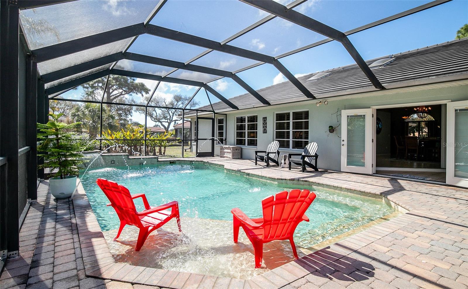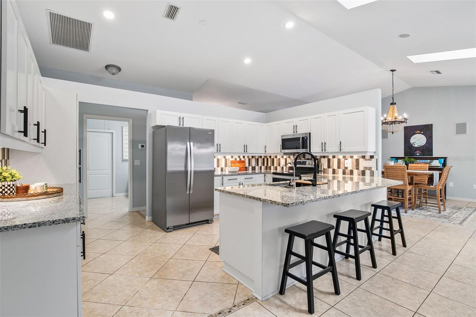 Welcome to this spacious home in Sorrento East offering the perfect blend of comfort, flexibility, and outdoor living. On a cul-de-sac lot of almost half an acre, this home has room to roam. New granite countertops, a new sink and backsplash, a reverse osmosis water system and new cabinet faces upgrade the kitchen to dream status. The split bedrooms offer privacy for guests and family members. Vaulted ceilings and skylights let the light pour in. The primary suite boasts an updated shower and quartz countertops. A generous sunroom offers versatile bonus space--perfect for a playroom, home office, workout area, or relaxed lounging. If you enjoy being outside you'll love the saltwater pool with an enormous screened-in patio for your gatherings. The expansive xeriscaped yardis low maintenance and offers plenty of room to relax, garden, or play. Sorrento East is home for several bird estuaries and has easy access to 681 and I-75. Located just five miles from Venice Beach and with Oscar Scherer State Park right next door, this home offers easy access to beaches, nature trails, historic Spanish Pointe, and outdoor recreation--while still being close to shopping, dining, and everyday conveniences. This is Florida living at its best--space, updates, location, and lifestyle all in one home.