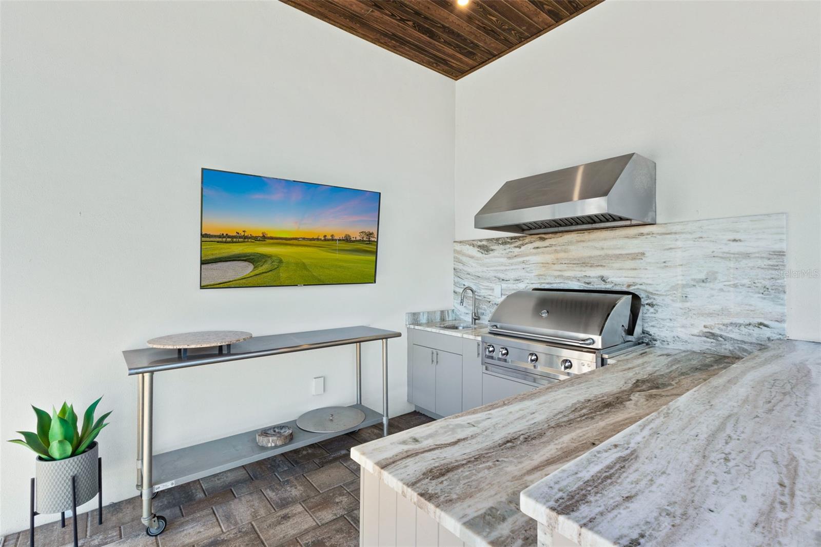 Exterior: Lighting, Outdoor Grill, Outdoor Kitchen, Private Mailbox, Rain Gutters, Sidewalk, Sliding Doors, Sprinkler Metered