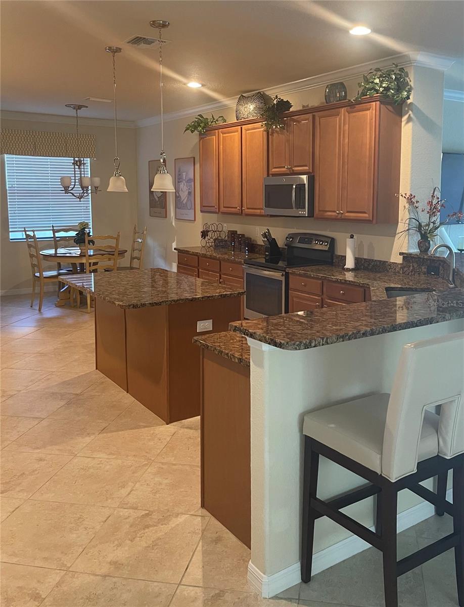 Experience refined resort-style living at River Strand Golf & Country Club in Heritage Harbour. This beautifully appointed four-bedroom, three-bath residence offers 2,316 square feet of living space (3,079 total square feet) and is perfectly positioned on a premium homesite with tranquil water views. The brick-paver screened lanai creates a private outdoor retreat, ideal for morning coffee or evening sunsets overlooking the water. Designed with both elegance and comfort in mind, the open-concept of this popular "Tivoli" floor plan seamlessly blends living and entertaining spaces. The generous sized cook's kitchen showcases granite countertops, stainless steel appliances, abundant cabinetry, and a spacious island with additional storage, along with a breakfast nook perfect for family and friends! Crown molding throughout most rooms, along with chair rail detailing and custom built-in shelving in the dining space, enhances the home's architectural appeal. The spacious primary suite features an oversized walk-in closet and a well-appointed en-suite bath with a garden tub, separate shower, dual vanities, and private water closet. A guest bedroom with its own full bath provides added privacy for visitors, while two additional bedrooms share a thoughtfully designed guest bath. Need space for the grandkids? That is covered with Bunk beds featured in the guest room. The three-car garage with plenty of storage space and brick-paver driveway, provide both functionality and curb appeal. The home includes hurricane shutters, and a newly installed motorized hurricane screen add an extra layer of protection to the property. Exterior of the home was repainted and given an updated color. Available turnkey furnished, (a few items - marked with a yellow sticker - do not convey) this residence is move in ready! Social membership is included in the HOA fees, along with 24-hour security, lawn maintenance, irrigation, and backflow inspections. Residents enjoy resort-caliber amenities including heated pools, 8 tennis and 9 pickleball courts, 2 fitness centers, and 2 active clubhouses offering year-round social events and entertainment: enjoy Bingo, Mahjong, Poker Night, Arts and Crafts and fitness classes or concerts on the green just to name a few! Set against 27 holes of championship golf (not included but based on availability), this gated community embodies the best of Florida living. Ideally located with easy access to I-75, premier shopping and dining, and the pristine beaches of Anna Maria Island, this home offers an unparalleled blend of coastal resort style living and convenience. Schedule your private showing today!
