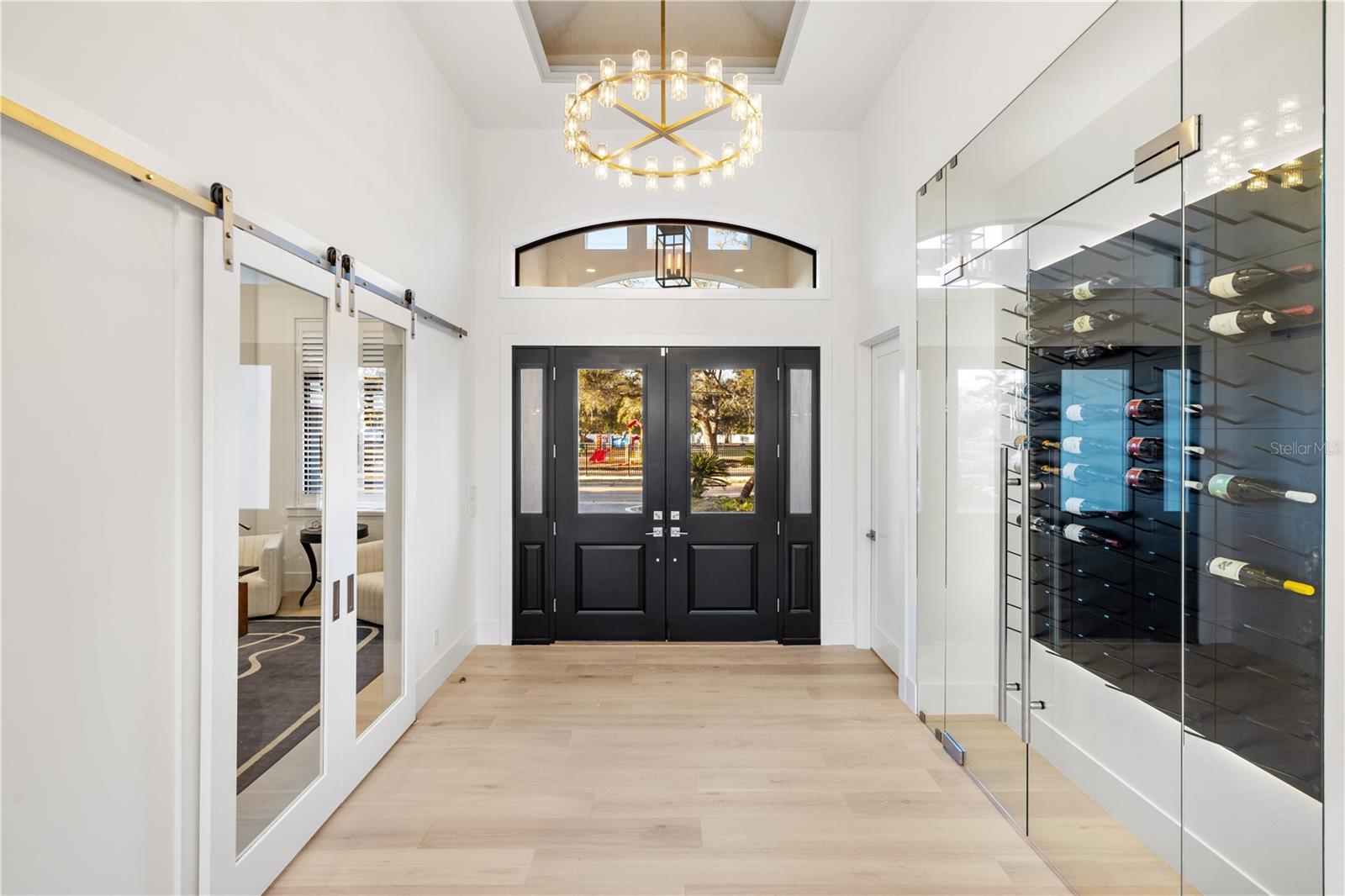 Nestled in the heart of West of the Trail, this luxury single-story estate represents the pinnacle of modern living. Encompassing 3,262 square feet, the home features 4 bedrooms, 4 full bathrooms, and 2 half baths, all thoughtfully designed for both comfort and functionality. Set on an expansive 15,930-square-foot lot, the residence offers tranquility just moments from the shops and dining of Southside Village. Enjoy the convenience of a circular driveway with a custom paver design and garage space for three cars. With striking architecture, impeccable craftsmanship, and beautiful, thoughtfully curated finishings--showcasing detailed trim work and refined design throughout--this residence delivers sophistication and all-inclusive resort-style living in one of the area's most desirable locations.Inside, soaring 18-foot vaulted ceilings and custom tray ceilings enhance the open-concept layout, while 12-foot full pocket sliders seamlessly connect indoor and outdoor living spaces. The living room is anchored by a sleek fireplace, creating a warm yet modern focal point. The chef's kitchen is equipped with professional-grade gas appliances, a waterfall-edge quartz island, custom cabinetry, and an expansive butler's pantry for effortless entertaining. A glass-enclosed wine display and tray ceiling details add dramatic appeal. The primary suite features 14-foot ceilings and a spa-inspired bath with a freestanding soaking tub, dual vanities, and a luxurious walk-in shower. All bedrooms include custom California Closets. A designated large office, spacious laundry room, and private gym complete the interior amenities. The home also has a full security system installed.Outdoors, the resort-style backyard showcases a heated saltwater pool and hot tub spa with elegant water features. The back patio, finished with a Brazilian hardwood ceiling, is enhanced with remote-controlled mosquito blinds for year-round comfort, as well as a full sound system that can be app controlled. A fully equipped outdoor kitchen, fire pit, and outdoor SunBrite TV create the ultimate entertaining space, while a private putt-putt golf course adds a one-of-a-kind touch to this exceptional property.Please let us know how we can help and give us a call to set up a tour of this beautiful home. Thank you.