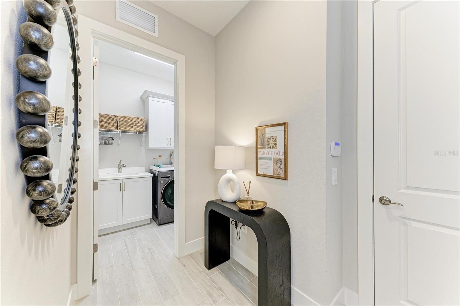 Experience the pinnacle of refined Florida living in this exceptional Homes by Towne Capstan residence, offering 2,452 square feet of impeccably curated space with 3 bedrooms, a private den, and 2.5 baths. Thoughtfully designed and extensively upgraded, this home blends architectural drama with effortless livability. From the moment you enter, soaring tray ceilings, dramatic lighting, fireplace and custom built-ins create a grand yet welcoming ambiance throughout the foyer, great room, dining area, and primary suite. The gourmet kitchen is both sophisticated and functional - appointed with a six-burner cooktop, convection wall oven and microwave, French door refrigerator, extended custom cabinetry, and a built-in wine center. An oversized island invites gathering and seamless entertaining. Privately positioned, the primary suite is a serene retreat featuring tranquil preserve views, a large walk-in closet, and a spa-inspired bath with dual vanities and an expansive walk-in shower. Two additional guest suites provide elevated comfort for family and visitors. The spacious office offers a refined workspace or library, while the mudroom and fully outfitted laundry room add everyday convenience. Designed to embrace Florida's coveted indoor-outdoor lifestyle, the expansive covered lanai showcases a luxurious pool and spa overlooking a private preserve setting. Gas rough-in for a future outdoor kitchen allows for further customization. Notable enhancements include Impact-rated windows, whole-house water filtration system with reverse osmosis in the kitchen, security system, three-car garage with epoxy flooring and professional landscaping. Located in LakeHouse Cove at Waterside, residents enjoy a resort-caliber lifestyle with a lakefront pool and spa, state-of-the-art fitness center, six pickleball courts, two dog parks, a boathouse, and kayak launch. A short stroll brings you to Waterside Place, where fine dining, boutiques, and vibrant community events create an unmatched walkable experience. Just minutes from the cultural charm of Sarasota, the luxury shopping of University Town Center, and the pristine beaches of the Gulf Coast with Walt Disney World approximately two hours away - this residence offers both privacy and connectivity. This is more than a home; it is a statement of distinction and an invitation to live exceptionally.