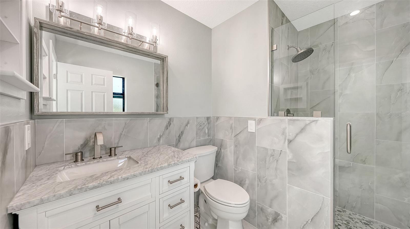 A Cream Puff...This 4/3 Beauty located just Minutes from the Bradenton and Anna Maria Island Beaches has been Completely Refreshed... Looks like a New Home on the Inside and Out! Are You Looking for Something Special, well this Remodel will give You Goosebumps as You Meander Through the Rare 4/3 Find with not one but TWO ENSUITES!! There is nothing left to do but to bring your furniture and personal items and start living the Dream! BUT... if you are looking for an AirBNB...well You Found It as it's a Perfect Set Up and No Neighborhood Restrictions! Here's a list of what was done to make this Home so Special...Fresh Two Tone Paint Outside, Redesigned Landscaping and New Stucco Banding! The Inside is quite extensive... Black Framed Impact Windows and Sliders, New Floors, Baseboards, Three New Bathrooms with New Vanities, New Enlarged Showers and New Tub/Shower Combo, all 3 Baths have Tile going to the Ceiling and Walls Half Wrapped with Tile for a more Modern Look, New Front Door, with Sidelight all New Interior Doors, All New Ceiling Fans and Light Fixtures, there's a New Enlarged Laundry Room Design with Storage Area, Pantry Shelves and a Laundry Sink Vanity Added, Nearly New Appliances, this List just Goes On... What makes this Home Really Special, it is One of VERY FEW 4 Bedroom 3 Bath Homes in the Area!! Again, Let's Not Forget the TWO ENSUITE Bedrooms! Perfect as a Mother in Law Suite Split, there are just so many Options! Did I Mention the Completely Redone Pool and Decking? The Pool was Resurfaced, had New Waterline Tile, New Coping, New Pool Light with a Remote for Lighting that Offers all sorts of Colors and Patterns, the New Deck is Light, Bright and Attached to the House, and if that wasn't enough, Look what is Behind the Pool, a Gorgeous Long Lake Pond for a Serene Calming Backdrop! There is a Portion of the Garage that You could get a Small Car Inside, but it is Perfect for Storage and Beach Supplies. The Driveway is Long Enough for Two Cars. All of this and Literally a Single Bridge to any of the Bradenton Beaches and Anna Maria Island... This Home is the Real Deal!! Make Your Dream Come True...