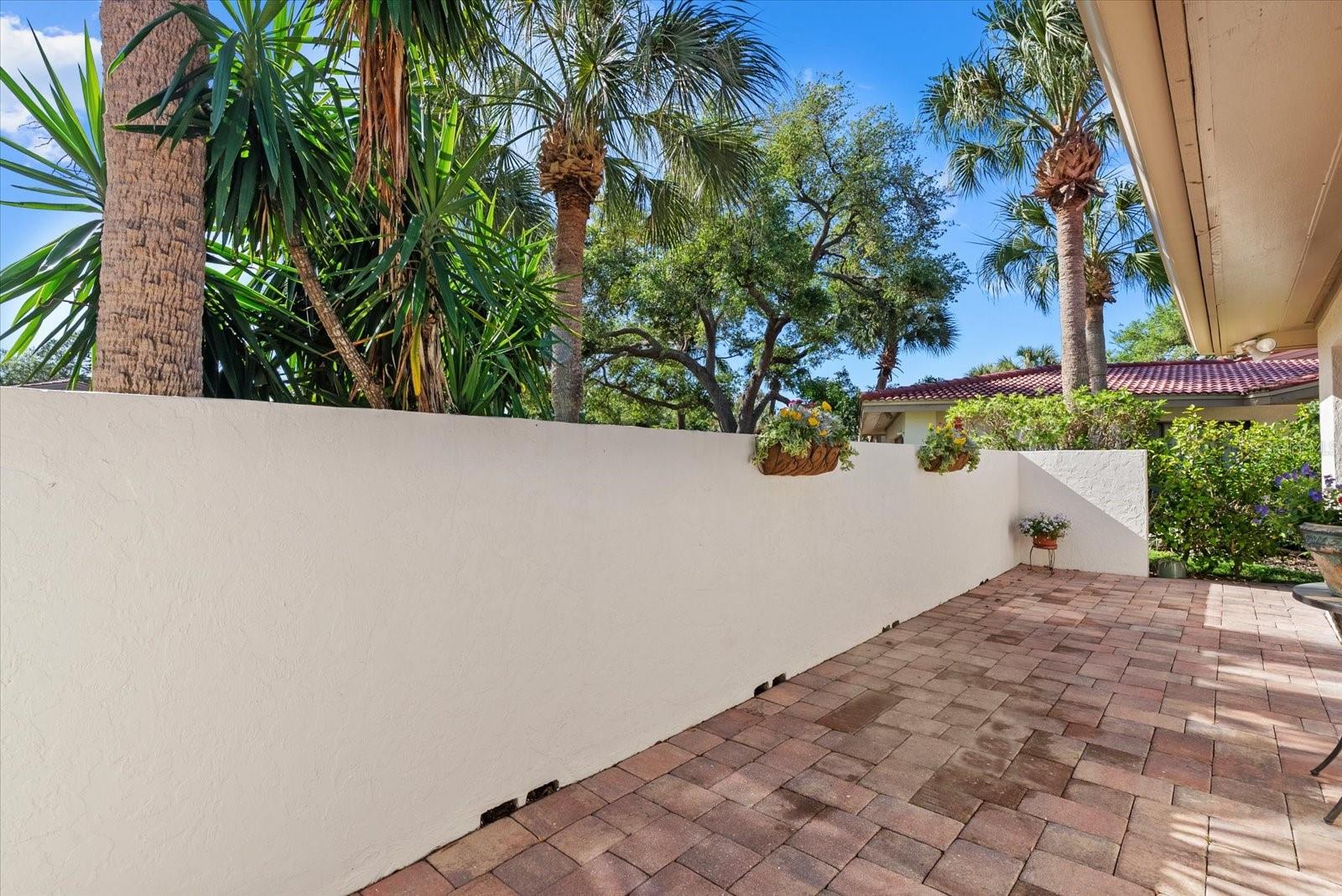 Experience refined Florida living in this exceptional three-bedroom, two-bath villa in Wild Oak Bay. With 2,231 square feet under air and 2,714 square feet in total, this residence pairs timeless elegance with serene natural beauty. Attached only at the garage for enhanced privacy, this residence is tucked within a quiet cul-de-sac in the coveted IMG Country Club area and features the largest floor plan in the community. A charming, lushly landscaped courtyard entrance sets the tone, creating an inviting outdoor retreat ideal for quiet mornings or elegant entertaining. Inside, a light-filled foyer opens to an interior defined by soaring vaulted ceilings with uplighting, expansive living spaces and seamless indoor-outdoor flow. A private dining area complements the main living room, anchored by a refined decorative fireplace feature wall, while large windows and three sets of sliding glass doors invite natural light and tranquil views, enhancing the home's airy ambiance. The expansive screen enclosed patio 25-by-20, one of the largest in the community, extends the living space with sealed pavers and multiple zones for dining, lounging or a firepit setting. The open-concept gourmet kitchen and great room have been thoughtfully renovated for everyday living and entertaining, appointed with natural quartz countertops, custom soft-close cabinetry, built-in storage, pantry, lazy susan and an integrated spice rack complemented by a designated chef's prep station and a full suite of GE appliances, including a French door refrigerator. An expansive breakfast bar connects seamlessly to the main living and dining areas, creating a quaint gathering space. The primary suite offers a private sanctuary with serene outlooks, a walk-in closet, and an en-suite bath featuring quartz finishes, a vanity with pull-outs and storage and a walk-in shower with bench seating. Two additional guest bedrooms share a full bath that can also be used from the dining area, while a versatile den/office with French doors and plantation shutters provides exceptional flexibility. Throughout, finishes include tile flooring in the main living areas and bathrooms, and luxury vinyl in the kitchen, great room and bedrooms. The surrounding courtyard is a highlight, offering a tranquil garden setting with mature landscaping, lush plantings and an avocado tree. A fully renovated, 20-by-20 garage utility space, enhances functionality with painted floors and walls, utility sink, a fully equipped laundry area, updated electrical panel, tankless, on-demand hot water system and motion-activated security lighting, all completed in 2026. Additional upgrades include a whole-house water filtration system, storm-rated front entry door, new roof, gutters, soffits, front of villa LED security light with motion detector, and fresh exterior paint, all completed in 2025. Residents enjoy a tropical community pool and beautifully maintained grounds reminiscent of a former bird sanctuary. The residence is near IMG Golf Club, driving range, IMG Academy, as well as the Sarasota-Bradenton International Airport, Sarasota, fine dining and cultural attractions. This pet-friendly, maintenance-free community offers effortless ownership while capturing the exceptional opportunity to enjoy the very best of Bradenton living, with an abundance of shopping options within minutes, Cortez fishing village, Bradenton Beach, Holmes Beach and Anna Maria Island.