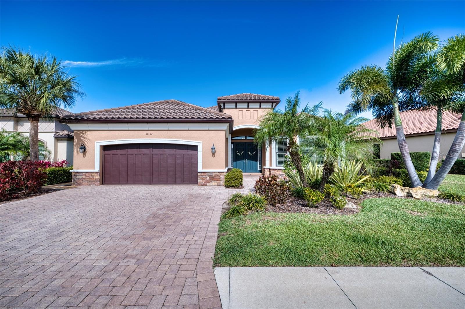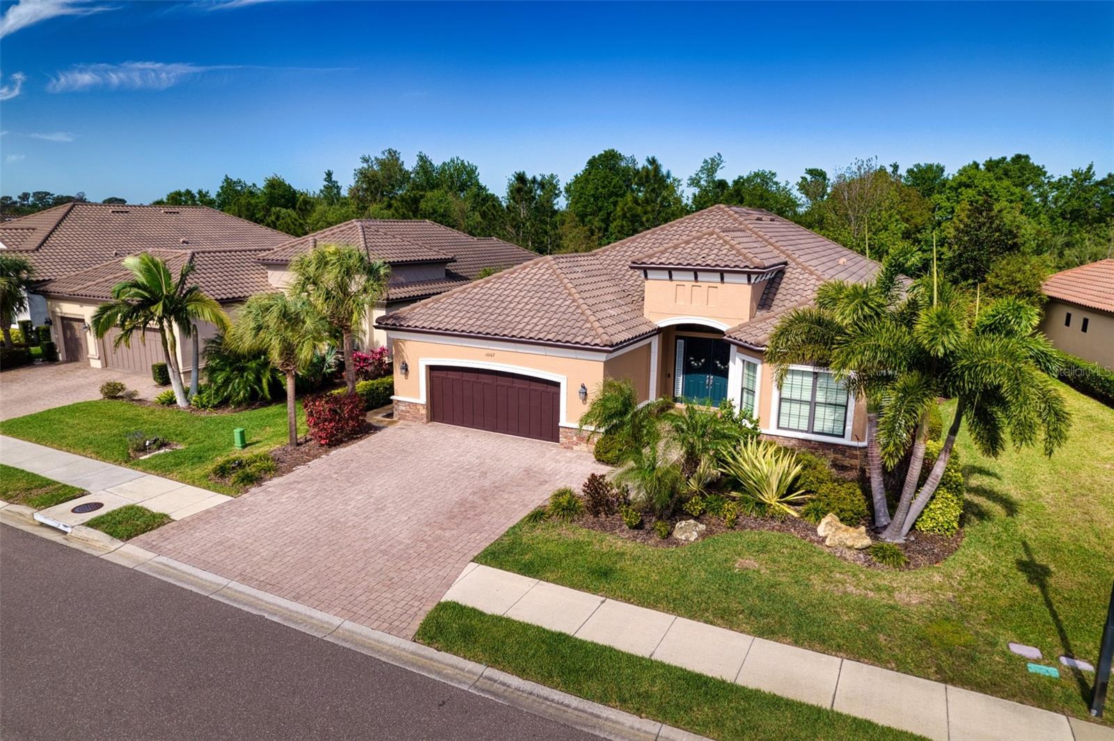 Welcome to this beautifully upgraded Pallazio model offering over 3,000 square feet of thoughtfully designed living space, perfectly positioned to capture breathtaking, unobstructed views of a serene pool and conservation area. This exceptional home features 3 spacious bedrooms, 3 full bathrooms, and a versatile flex room, all centered around a grand open-concept living area. The main living space is enhanced by two oversized sliding glass doors that seamlessly blend indoor and outdoor living, opening to a spectacular pool, spa, and outdoor retreat.Step outside onto the impressively oversized 31' x 17' structurally enhanced lanai, complete with handsome terrazzo flooring and pre-plumbed for natural gas, water, and electric--creating the perfect foundation for your dream outdoor kitchen. Inside, the gourmet kitchen is a true centerpiece, featuring a massive island with base cabinetry on both sides, extended cabinetry, and a cozy dinette area--ideal for both entertaining and everyday living. The luxurious primary suite is designed to impress, offering elegant bay-style windows, a spacious en-suite bathroom to include jetted tub, massive counter space, double sinks and a large walk-in closet. Bedroom two includes its own private en-suite bath with a walk-in shower, while bedroom three also features charming bay windows and convenient access to its full bathroom. The flexible bonus room is currently outfitted with a custom bookcase/Murphy bed combo, making it perfect as a home office, guest space, or additional living area. The Murphy bed and bookcase may convey at the buyer's preference. All windows are Hurricane impact windows, along with Storm Smart shades along the back of lanai opening. Some other special features include: Leaf Guard on all Life time guaranteed GuttersUpgraded landscapingPlantation shutters on all windowsWhirlpool tub in Master bathExtended garage depthTop of the line Screen on pool cageUpgraded speaker system in main room and lanai. And to top it off, the exterior has been recently painted, making this showcase truly move-in ready. This home sits on a lovely lot on a quiet street ending in a cul-de-sac, which helps keep traffic to a minimum. Location, location, location! With easy access to I-75, I-275, and US 41, you can get anywhere you need to be in this greater Tampa/Sarasota area!The community HOA includes cable TV, internet, and exterior yard and landscape maintenance, along with two gorgeous resort-style amenity centers, pools and events. Residents also enjoy bocce ball, tennis, pickleball, and an amazing workout facility. This home combines luxury, comfort, and stunning natural surroundings--truly a must-see.