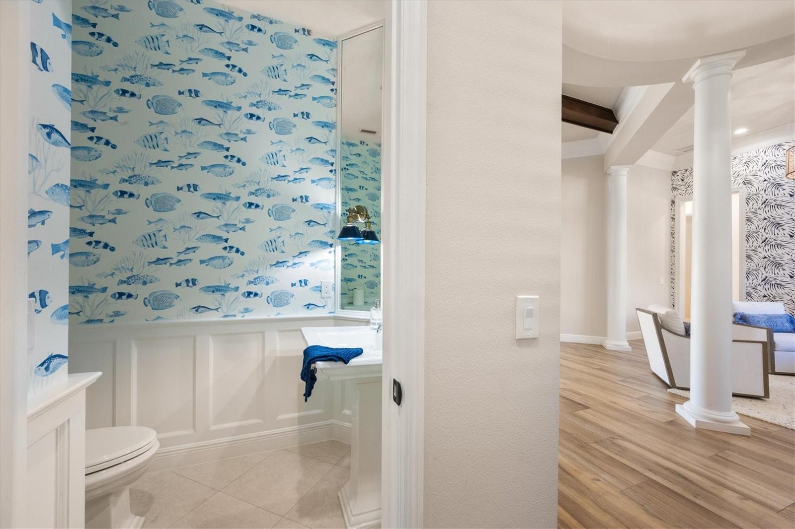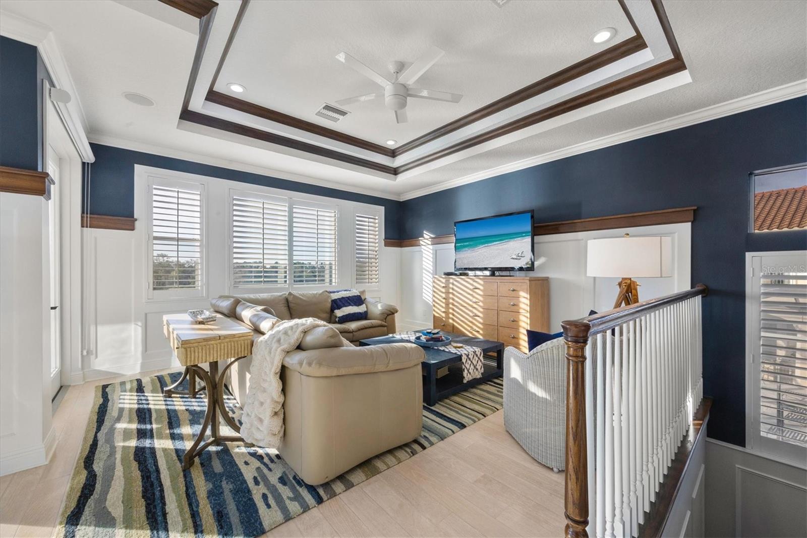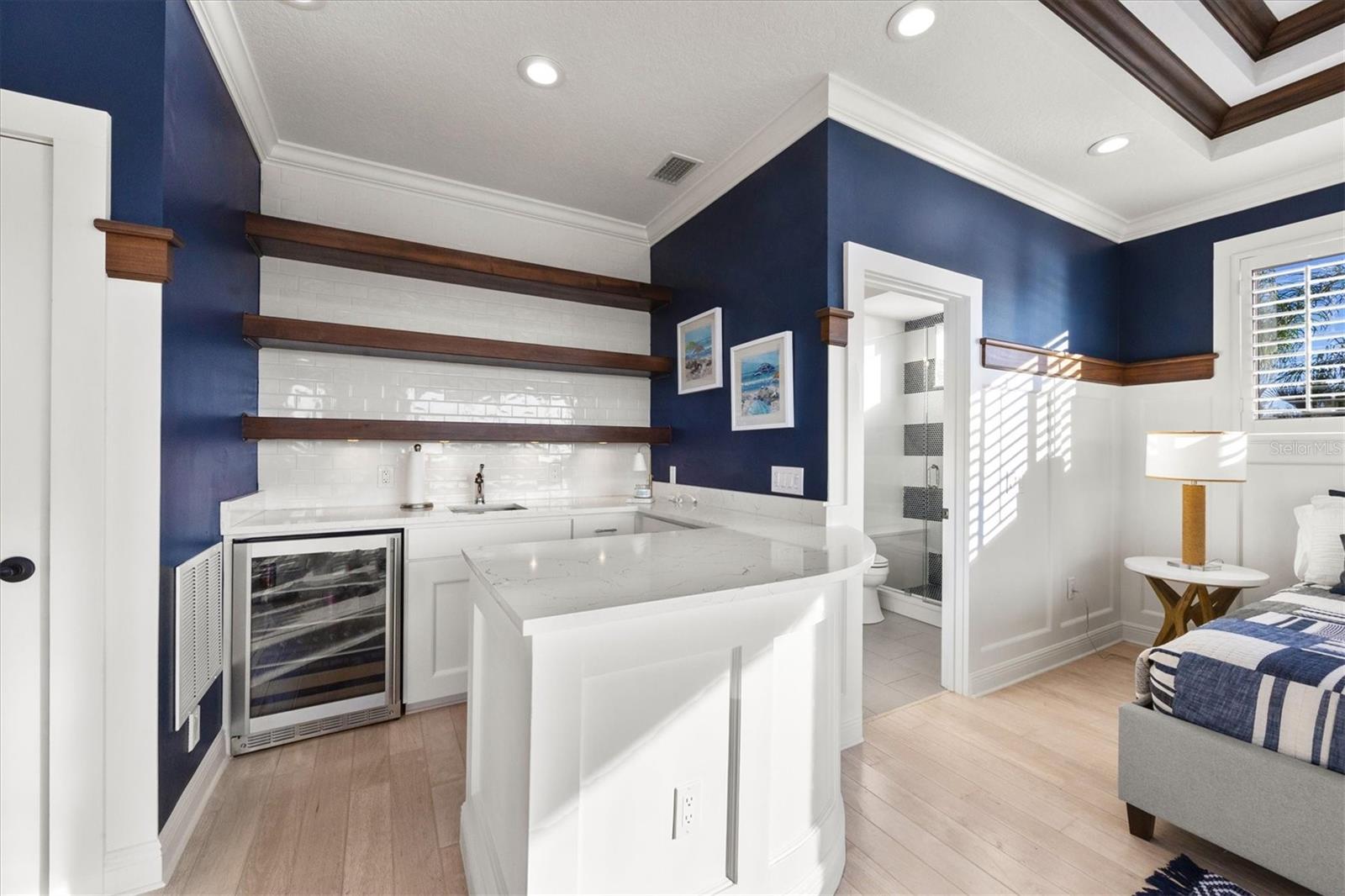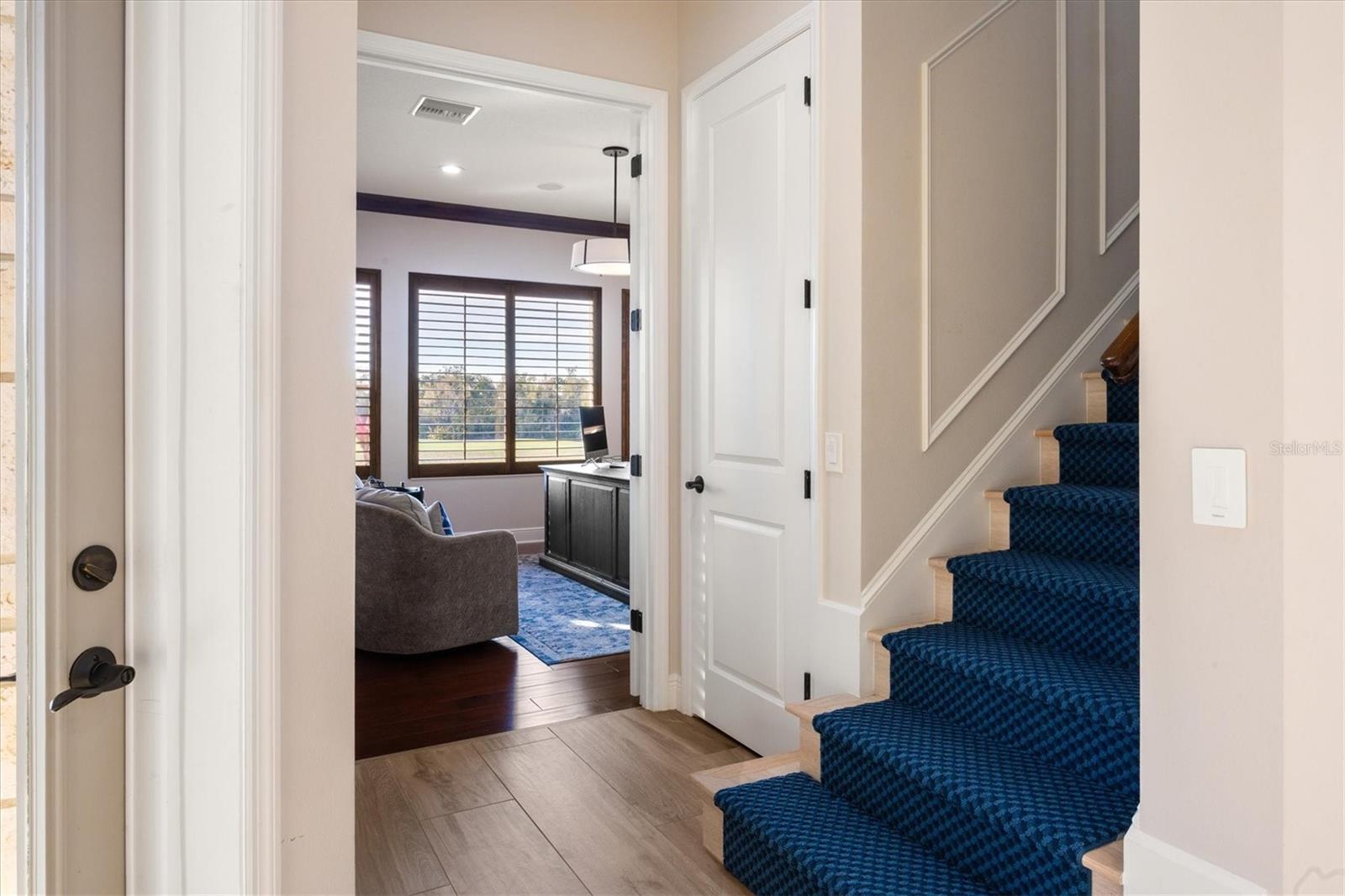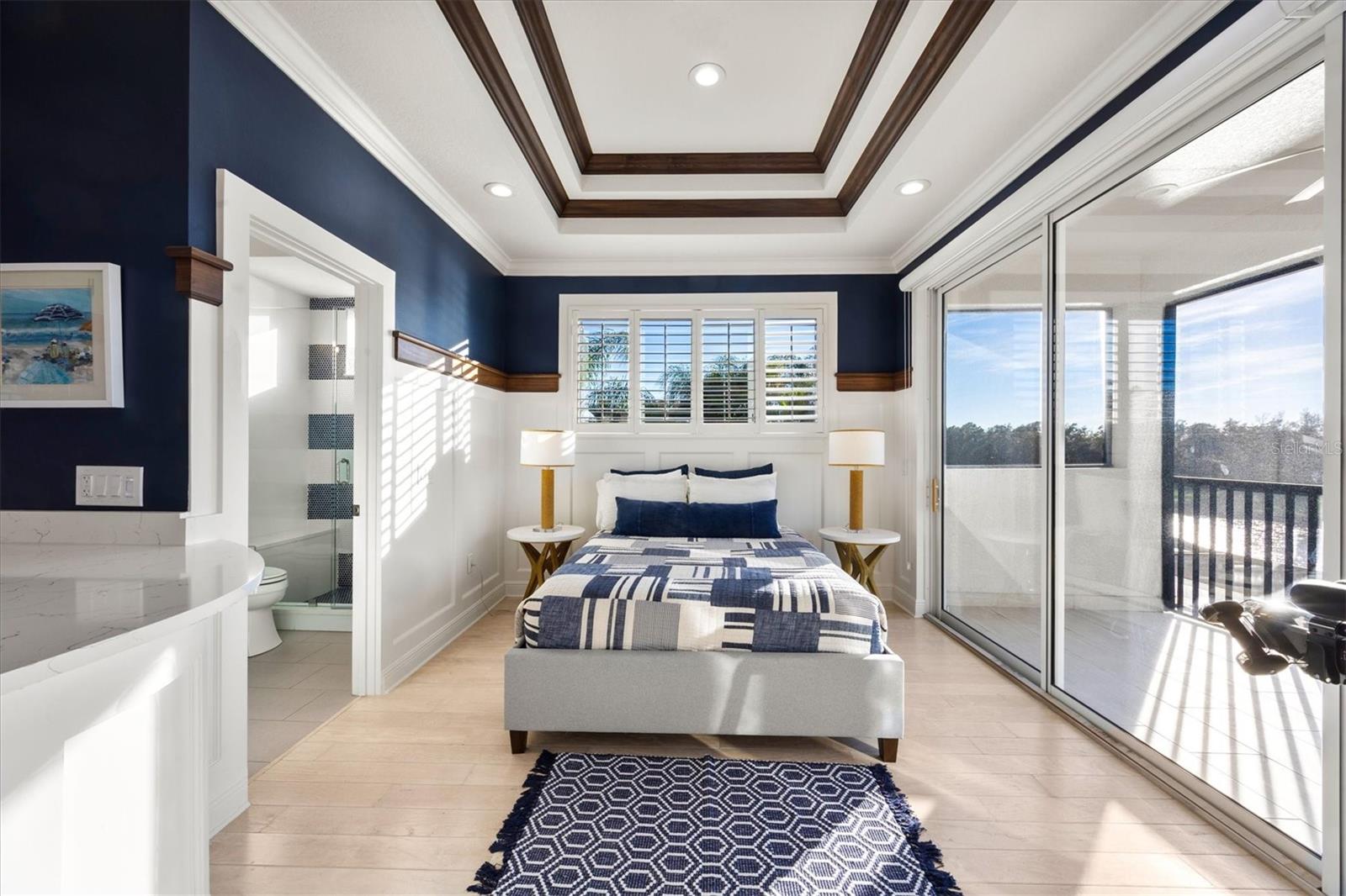 In the prestigious, maintenance-free Greystone enclave of Lakewood Ranch Country Club, this completely remodeled residence offers three bedrooms, four-and-a-half baths, a private office and an expansive upstairs bonus guest retreat, all positioned to capture sweeping, unobstructed golf course views. Meticulous landscaping and a paver driveway create a striking first impression, leading to a welcoming front porch and custom wood entry door. Inside, stunning wood-look plank porcelain tile flows seamlessly throughout the main living areas, complemented by architectural details at every turn with tray ceilings, crown molding, designer lighting and refined millwork that elevate the home with timeless elegance. A formal seating area framed by an aquarium window overlooks the sparkling pool and lush fairways beyond welcome you home. Architectural wood beams accent the ceiling while a gas fireplace with coastal detailing creates a warm focal point. A dedicated formal dining room provides an elegant setting for hosting gatherings intimate and grand. The heart of the home is a beautifully appointed chef's kitchen featuring quartz countertops, updated appliances, a generous prep island, breakfast bar seating, abundant cabinetry and a dry bar with wine refrigerator. An inviting breakfast nook, enhanced by an aquarium window, captures tranquil views of the lanai and golf course. The adjacent family room is rich with character, showcasing warm wood tones in tongue-and-groove planks within the tray ceiling, custom built-ins and disappearing corner sliders that fully open to the lanai, seamlessly blending indoor and outdoor living. The oversized primary suite serves as a private sanctuary, complete with tray ceiling detailing, dual walk-in closets, and a spa-inspired bath offering a soaking tub, walk-in shower and split vanities. Two additional guest bedrooms each feature their own en-suite bath, ensuring privacy and comfort for family and visitors. The bright, oversized office is functional and refined, highlighted by a rich, warm, wood built-in wall with shelving and custom cabinetry, a sophisticated and inspiring workspace. Upstairs, the expansive bonus room with full bar and full bath offers exceptional flexibility as a guest suite, fourth bedroom or entertainment retreat, complete with its private balcony overlooking the picturesque golf course. Outdoor living is nothing short of spectacular. The oversized lanai features a rich wood plank ceiling, gas fireplace, fully equipped outdoor kitchen, and generous spaces for dining, lounging and entertaining. A heated pool and spa are positioned to capture breathtaking panoramic golf course views, creating a private resort-style setting. Residents of Lakewood Ranch Country Club enjoy an elevated country club lifestyle with championship golf courses, tennis and pickleball courts, fitness facilities, resort-style pools, fine and casual dining, and a vibrant social calendar, all within proximity of shopping, dining, top-rated schools and the Gulf Coast's world-renowned beaches.