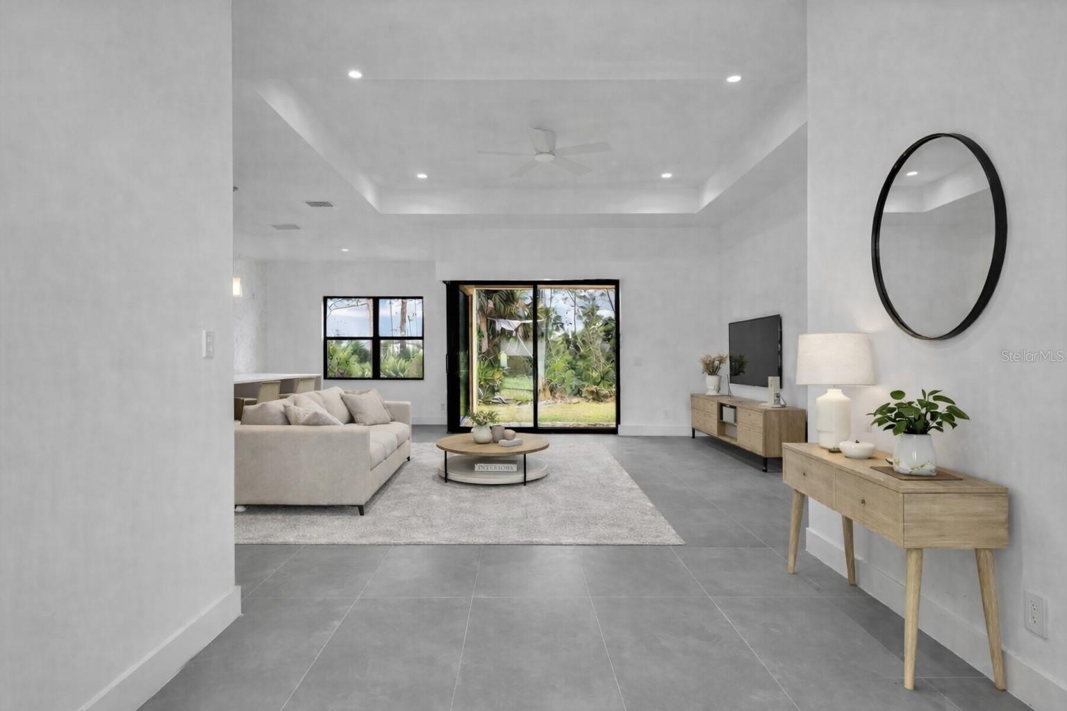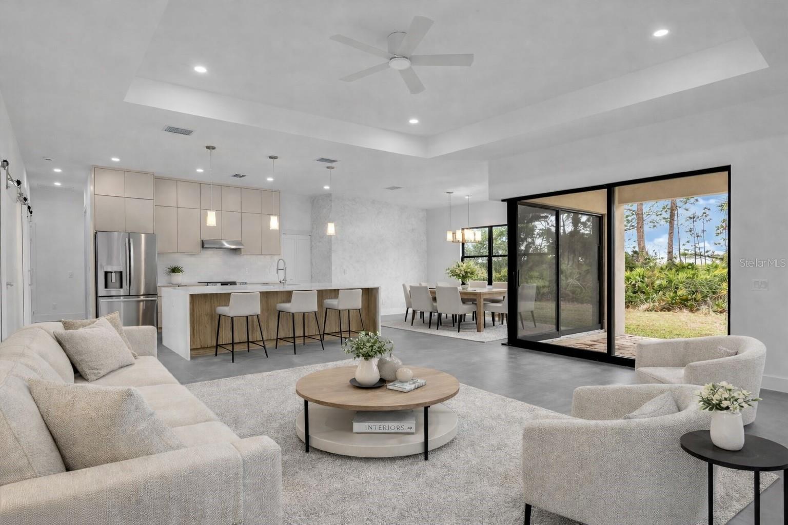 Brand-new 2026 construction offering 3 bedrooms plus a versatile den, blending modern architecture with elevated finishes and thoughtful craftsmanship throughout. Soaring ceilings and tile flooring throughout the entire home -- with no carpet -- create a bright, expansive atmosphere from the moment you step inside. The open-concept design flows effortlessly into a stunning chef-inspired kitchen featuring an oversized island with cabinetry on both sides, sleek push-open and soft-close cabinetry, and a spacious walk-in pantry -- ideal for everyday living and entertaining. The living area is enhanced by expansive sliding glass doors that open fully to the covered patio, creating seamless indoor-outdoor flow and allowing natural light to pour in. Premium upgrades include high-end plumbing fixtures and shower heads, Toto toilets, a bathtub integrated within the shower for added versatility, USB-integrated outlets, modern interior doors and hardware, a Rheem Gladiator water heater for long-term reliability, and epoxy-coated garage flooring for a polished, finished look. The den offers flexible space perfect for a home office, media room, or additional living area. Step outside to a generous covered patio with ample room to personalize your outdoor space. Situated on its own well and septic system, offering efficiency and potential long-term savings. Seller is motivated -- bring all offers. Identical floor plan available at additional addresses. English, Spanish, and Portuguese assistance available.