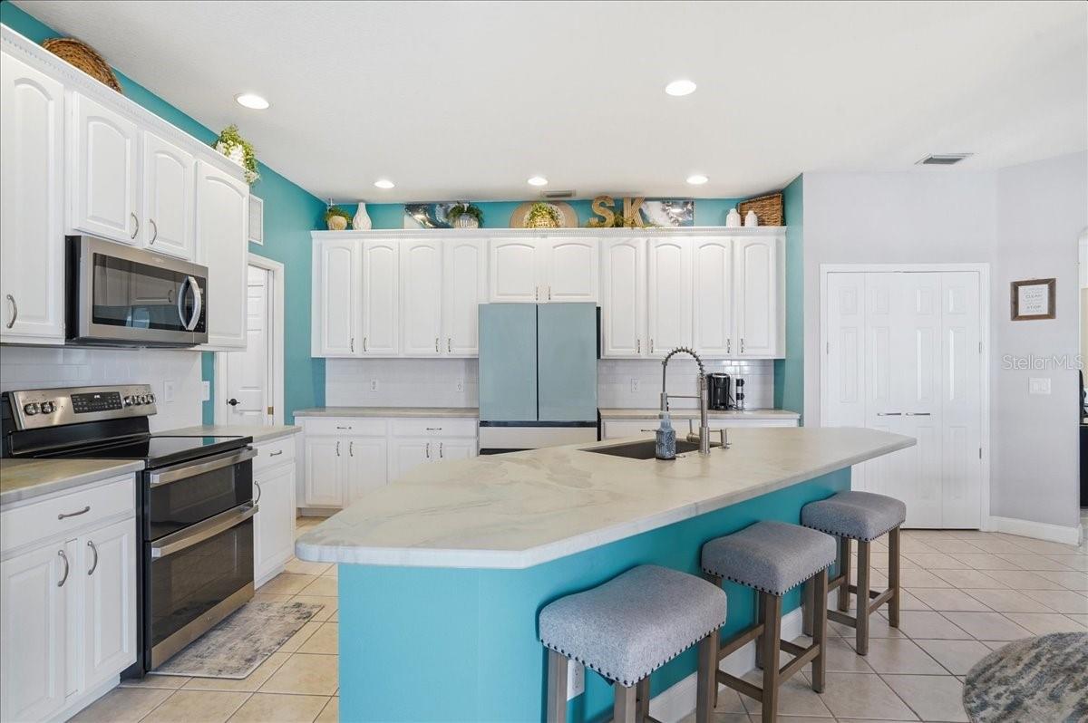 Beautiful pool home with stunning water views, custom upgrades throughout, and a three-car garage.Welcome home to this beautifully updated 3-bedroom + gym/office, 2.5-bath residence offering over 2,400 sq ft of thoughtfully designed living space. From the moment you step inside, you'll notice the fresh feel of brand-new LVP flooring and the spacious, open layout, highlighted by an oversized primary suite with private sliders leading to the peaceful backyard.The fully updated kitchen features new appliances and custom-built pantry shelving, perfect for both everyday living and entertaining. An upgraded laundry room adds both convenience and style, while the dedicated in-home gym, ideal as an office or flex space, offers the versatility today's lifestyle demands.Step outside to your fully fenced backyard oasis with serene water views and mature orange and lemon trees, creating the perfect setting to enjoy Florida living at its finest. Major updates include roof, gutters, HVAC, and exterior paint (2020), hot water heater (2018), tinted windows for enhanced energy efficiency, and newer pool screens for added peace of mind.Located in Kingsfield Lakes, residents enjoy very low HOA fees and no CDD fees, along with fantastic amenities including a community pool, spa, and two playgrounds. Conveniently situated with easy access to Tampa, St. Pete, and Sarasota, and just minutes from schools, shopping, and dining. Best of all, you're less than 20 miles from the stunning beaches of Anna Maria Island, offering the perfect blend of comfort, convenience, and the Florida lifestyle.