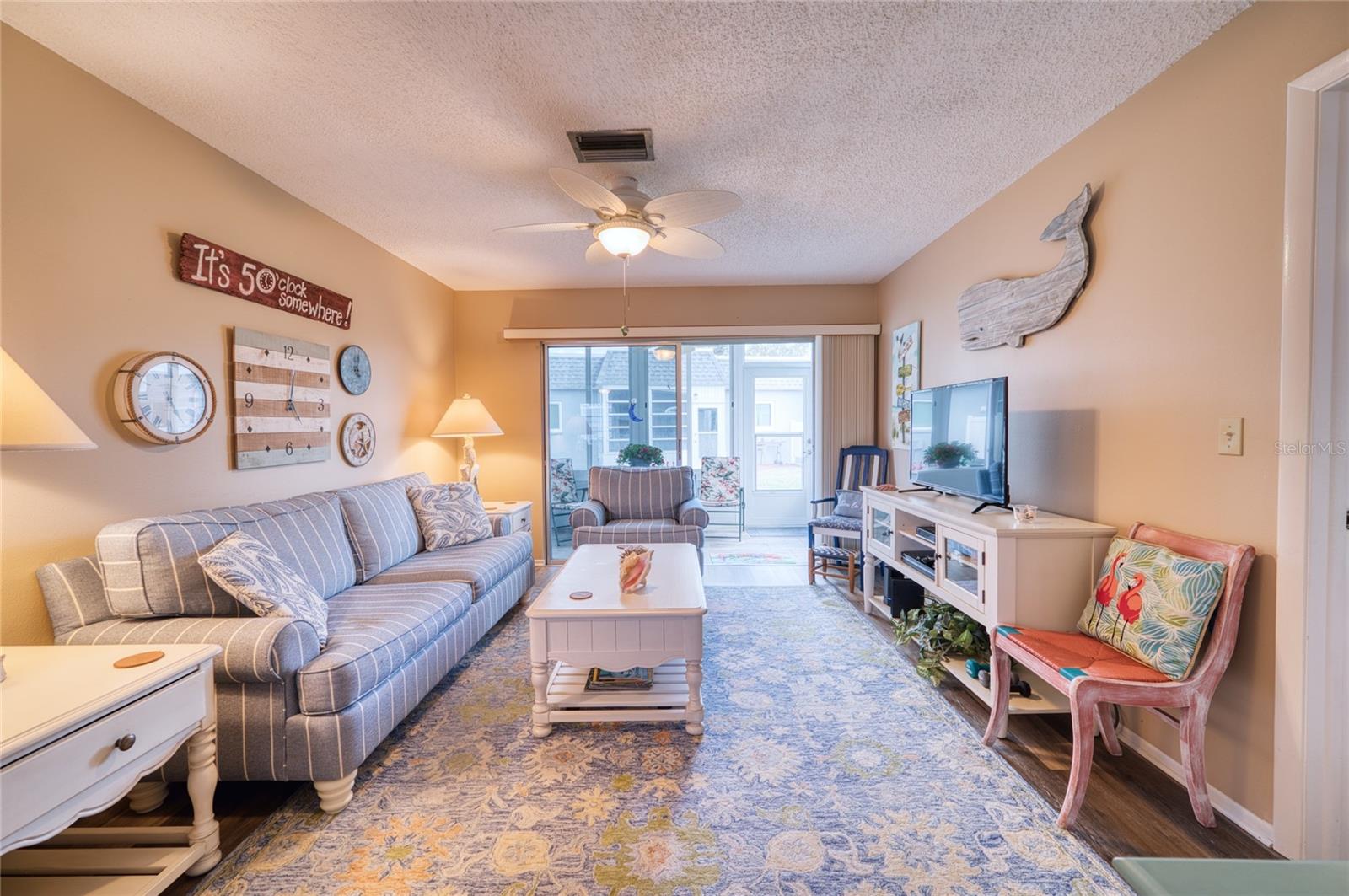 Welcome to easy coastal living just 7 miles from Anna Maria Island. This beautifully maintained turnkey 2-bedroom condo is being sold fully furnished so you can truly just bring your toothbrush and start enjoying the Florida lifestyle. From the moment you walk in the door, the thoughtfully coordinated coastal dcor flows effortlessly from room to room creating an instant sense of calm and comfort. Soft colors, updated flooring, and inviting living spaces make the home feel relaxed, bright, and welcoming. The kitchen offers white cabinetry, solid surface countertops, and generous workspace while the comfortable living area opens to an enclosed patio that allows year-round enjoyment and additional living space. A sliding screen door at the front entry allows for refreshing Florida breezes when the patio windows are open, creating natural cross-ventilation throughout the home. The raised concrete patio slab enhances durability and everyday usability. Major updates include HVAC replaced in 2019 and a new roof in 2025 providing added peace of mind. The HOA simplifies living by including water, sewer, trash, cable, and internet which helps keep monthly expenses predictable. Conveniently located near medical offices, grocery stores, restaurants, and everyday conveniences while still just minutes from the beaches of Anna Maria Island, this home is ideal for seasonal living, a full-time residence, or an easy lock-and-leave coastal retreat ready the day you close.