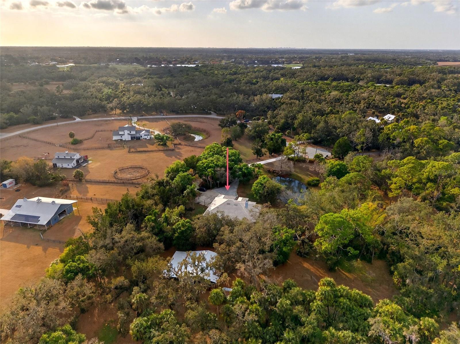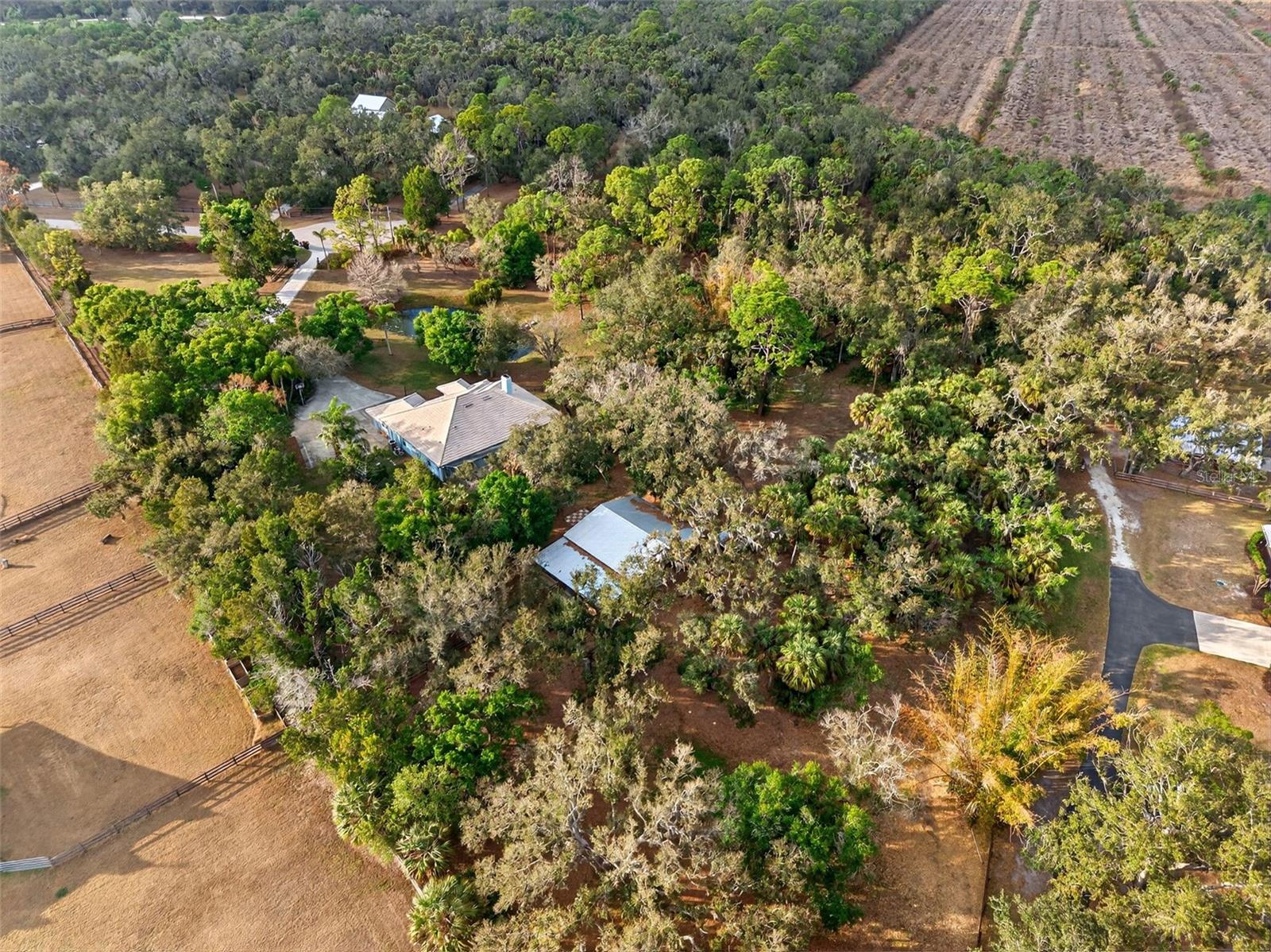 Country tranquility meets Sarasota convenience on this PRIVATE 5-ACRE estate tucked away at the end of a QUIET CUL-DE-SAC in the POPULAR GATED EQUESTRIAN COMMUNITY of Saddle Creek! This 4 BED + DEN/OFFICE, 3 BATH home with 2,510 square feet underwent a large renovation by Trinity Construction in 2018 (NEW KITCHEN, NEW FLOORING, NEW BATHROOMS, NEW PAINT, NEW LIGHTING & MORE). Inside, WOOD-LOOK PLANK TILE flows throughout the entire home, complemented by a WOOD BURNING FIREPLACE, 7 SLIDING GLASS DOORS OUT TO YOUR LANAI, and a TRAY CEILING in the spacious primary suite. The open farmhouse kitchen is both stylish and functional, featuring QUARTZ countertops, white RAISED PANEL CABINETRY, STAINLESS STEEL APPLIANCES, a WALK-IN PANTRY, and a generous 6 PERSON BREAKFAST BAR that creates a natural gathering space for family and guests. The primary suite serves as a relaxing retreat with a CUSTOM WALK-IN CLOSET and a SPA-INSPIRED BATHROOM showcasing DUAL VANITIES, a SOAKING TUB, a GLASS ENCLOSED SHOWER with beautiful tile work, and multiple shampoo niches for added convenience. Step outside to enjoy true Florida living with a HEATED POOL & SPA surrounded by a screened lanai, offering multiple areas for entertaining, dining, or simply relaxing while overlooking your private acreage. For those seeking a true equestrian or hobby farm lifestyle, the property is GATED, FULLY FENCED & CROSS-FENCED AND READY FOR HORSES, ANIMALS and TOYS! A well-equipped barn includes: TWO ~16x13 HORSE STALLS W/ WATER (room for 2 more), a 35x11 breezeway, THREE AIR CONDITIONED ROOMS (currently being used as a tack room/gym, music room & storage/workshop), and covered storage for lawn equipment and more. The grounds also feature THREE SEPARATELY FENCED/GATED PASTURES, STOCKED POND, 15x9 CHICKEN COOP, FRUIT TREES, REVERSE OSMOSIS SYSTEM, and even an RV HOOKUP, providing endless opportunities for recreation and self-sufficiency. The MATURE TREES create an unforgettable ambiance as you watch the SUNSETS outside your front door! The home was RE-PIPED in 2020 and the A/C was replaced in 2021! Saddle Creek is known for its horse-friendly environment and over 25 MILES OF RIDING TRAILS winding throughout the approximately 1,000-acre community of just 161 homes. Despite the PEACEFUL RURAL ATMOSPHERE, you are only 7 miles to Publix, 5 miles from I-75, 13 miles from Siesta Key Beach, about 15 miles from Downtown Sarasota and the UTC Mall, offering easy access to world-class beaches, dining, shopping, and cultural attractions. Set within the A-RATED RIVERVIEW HIGH, SARASOTA MIDDLE & LAKEVIEW ELEMENTARY SCHOOL DISTRICT! If you've been searching for the perfect balance of privacy, acreage, equestrian lifestyle, and proximity to Sarasota's best amenities, this remarkable Saddle Creek property offers country living at its finest!