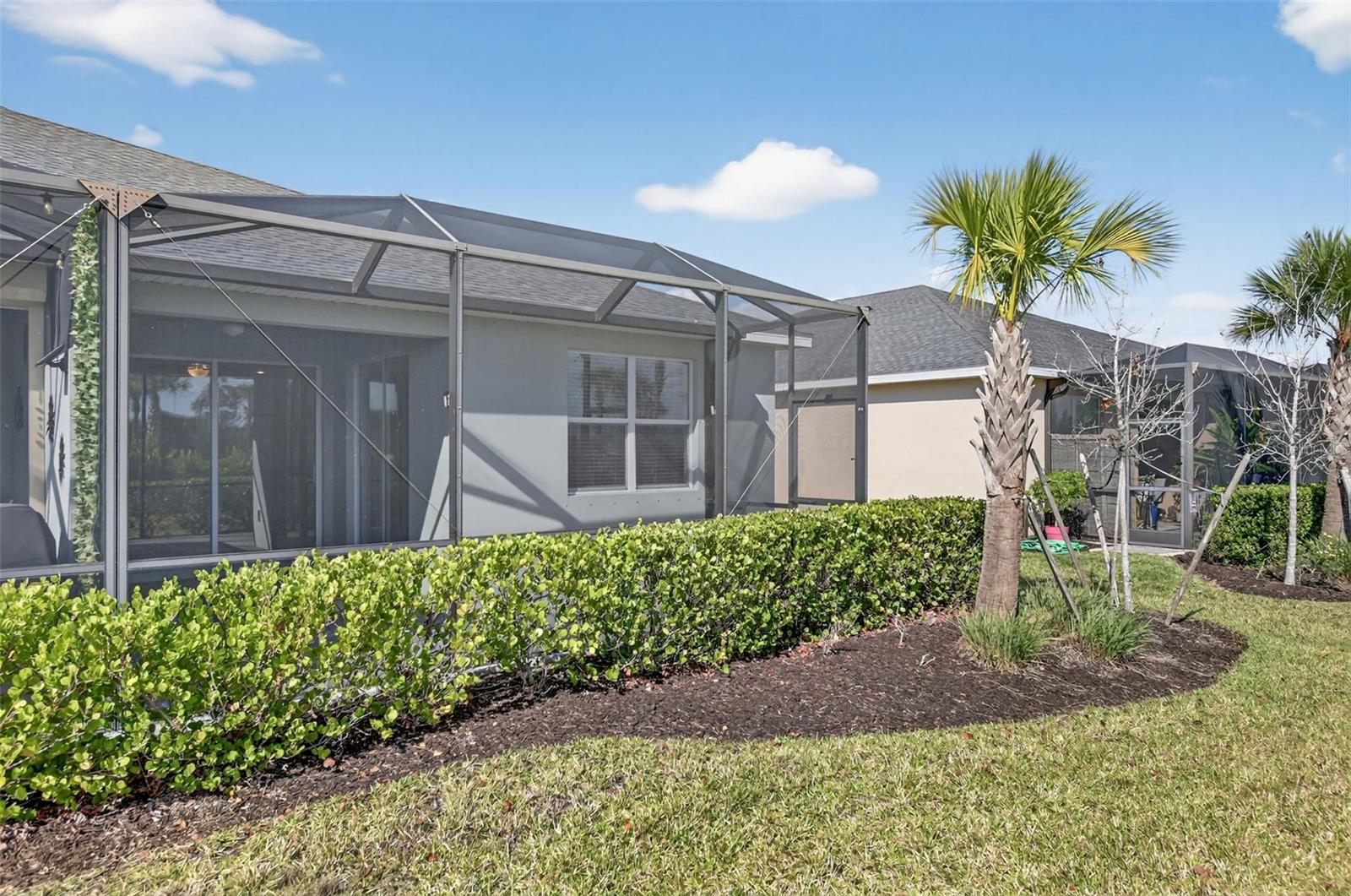 Live your best life today in paradise! This move-in ready 2-bedroom, 2-bathroom home offers the perfect blend of comfort, style, and everyday functionality. Featuring a desirable split-bedroom floor plan plus a versatile flex room, this home easily adapts to your lifestyle--whether you need a home office, den, or guest space. Beautiful tile flooring is laid on the diagonal throughout, creating a spacious and upscale feel--with no carpet anywhere for easy maintenance and a clean, modern look. The open-concept kitchen, living, and dining areas provide an inviting setting, ideal for both entertaining and relaxed daily living. The kitchen shines with stainless steel appliances, granite countertops, and a charming transom-style window above the cabinetry, filling the space with natural light and warmth. The primary suite serves as a private retreat, featuring a relaxing soaking tub, separate shower, and dual walk-in closets for added comfort and convenience. Both bathrooms are finished with granite countertops, offering a cohesive touch of quality throughout the home, with the guest bathroom having a very nice high-end shower that has been added. Step outside to the extended screened lanai, where you can enjoy Florida's year-round sunshine with plenty of space for dining, lounging, or simply unwinding. This home also offers exceptional value with a low HOA fee that includes internet and Located in a non-flood zone, provides added peace of mind. Situated within the innovative, solar-powered community of Babcock Ranch, this home is designed with both sustainability and resilience in mind. Ideally located in East Town, you'll enjoy convenient access to scenic walking and biking trails, vibrant parks, and nearby shopping and dining. The lifestyle, location, and amenities are all here--schedule your private showing today.