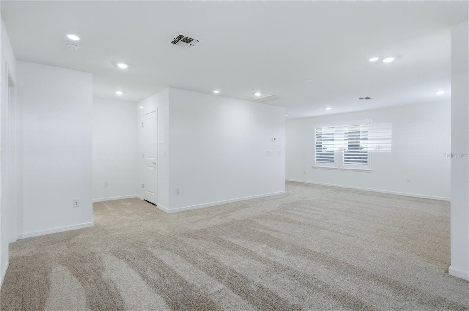 Like-new and barely lived in, this Mystique Grand floor plan offers beautiful water views and is just steps from the amenity center. This spacious home features 3 bedrooms, 3 bathrooms, and a private den with doors, making it the perfect home office or flex space. The first floor offers over 1,800 sq ft of open-concept living, featuring luxury vinyl plank flooring, brand-new, top-of-the-line Hunter Douglas plantation shutters have been installed throughout, built-in ceiling speakers in the living room and on the lanai, and a chef's kitchen equipped with KitchenAid appliances. The main level includes two bedrooms and a private den, offering convenient everyday living and privacy for work or guests. The home also includes an oversized tandem garage, ideal for a golf cart, workshop, or additional storage, The garage also includes a like-new spare refrigerator and is pre-plumbed for a water softener. The expansive second floor is perfect for guests, complete with a large living area, bedroom, and full bathroom--creating a private retreat for visitors. Situated on a premium corner lot with serene water views, the home also features a large covered lanai, perfect for relaxing or entertaining while enjoying the peaceful setting. The lanai is pre-plumbed and wired for a future outdoor kitchen and includes an additional wireless extender for strong connectivity. Exterior wiring is already in place for future swimming pool equipment if desired. Del Webb Bay View is a gated, active community offering amenities like fitness, bocce, pickleball, tennis, shuffleboard, numerous clubs, a heated walk-in pool, resistance pool, community garden, and on-site restaurant--all in a golf cart-friendly neighborhood.
