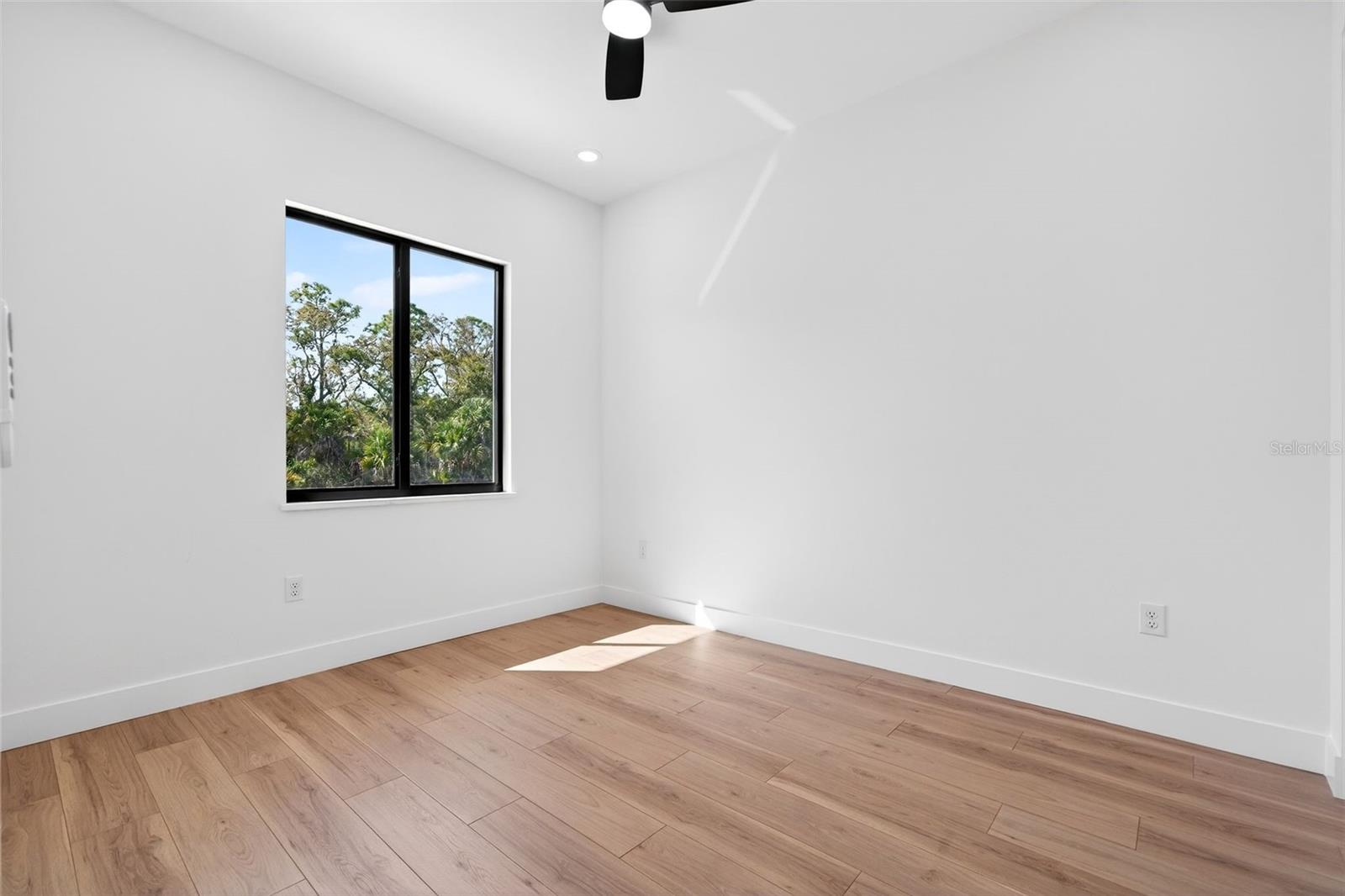 One or more photo(s) has been virtually staged. Stunning 2026 New Construction Modern Pool Home! This beautifully designed 2 bed, 2 bath home features an open-concept layout with soaring 10-ft ceilings and abundant natural light from large energy-efficient windows. The designer kitchen includes quartz countertops, custom cabinetry, and a large island, with washer, dryer, refrigerator, and stove included for a true move-in ready experience.Step outside to enjoy a covered lanai and private pool, perfect for relaxing or entertaining. Situated on a quiet street with no neighboring homes, this property offers rare privacy and peaceful surroundings. Built with efficiency in mind, the home includes energy-efficient windows, HVAC, water heater, insulation, and an irrigation system with simple landscaping.Conveniently located near shopping, dining, and everyday amenities, and not located in a flood zone, this modern home offers the perfect blend of style, comfort, and location.