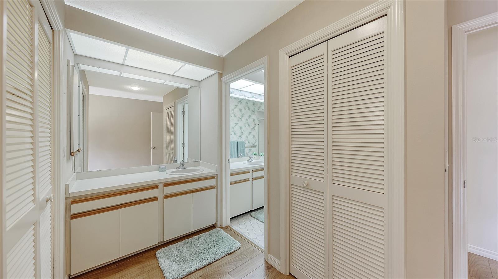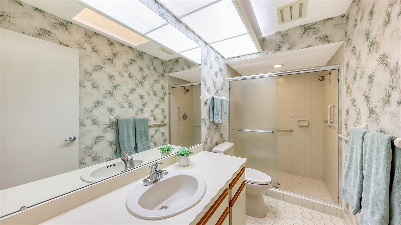Be mesmerized with idyllic water views from your great room in this fantastic 55+ villa in Lakeshore Village. Three bedrooms and two baths (one bedroom currently being used as a den) give you room to spread out with the guest bedroom separated from the primary bedroom for privacy. Upgrades include impact glass windows, laminate flooring, custom cabinetry with granite countertops in the kitchen and epoxy flooring and built-ins in the garage. The Florida room has been opened to the great room and kitchen for an open floor plan with the vaulted ceilings and sky lights giving a sense of space and light. The roof is concrete tile for long wear, and the unit has been fully re-piped. Lakeshore Village offers easy, maintenance-free living with loads of amenities: community pool, party room, pool table, tennis courts and pickleball. It's conveniently located to I-75 and Siesta Key beaches and is a short drive to downtown Sarasota's cultural activities, shops and restaurants.