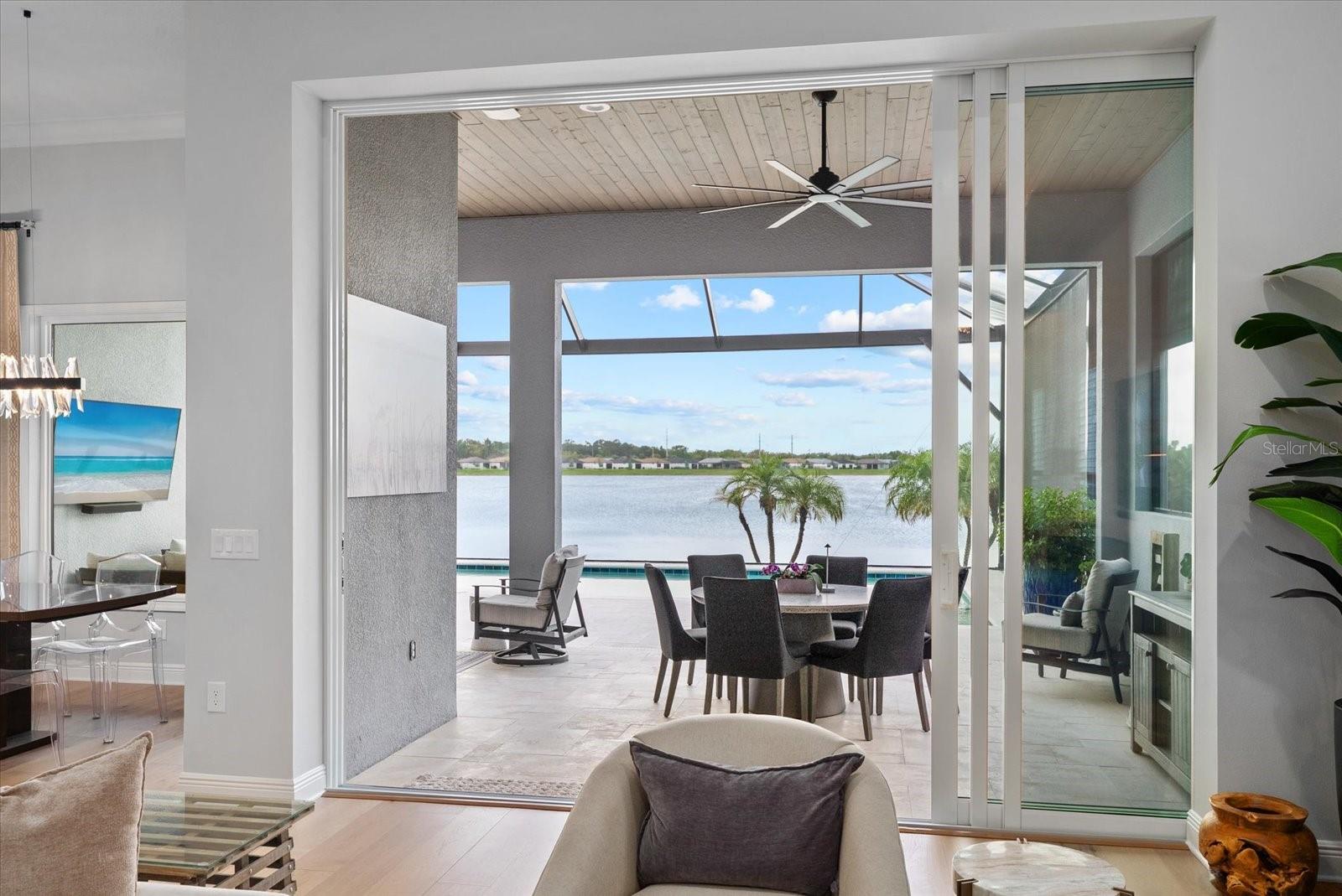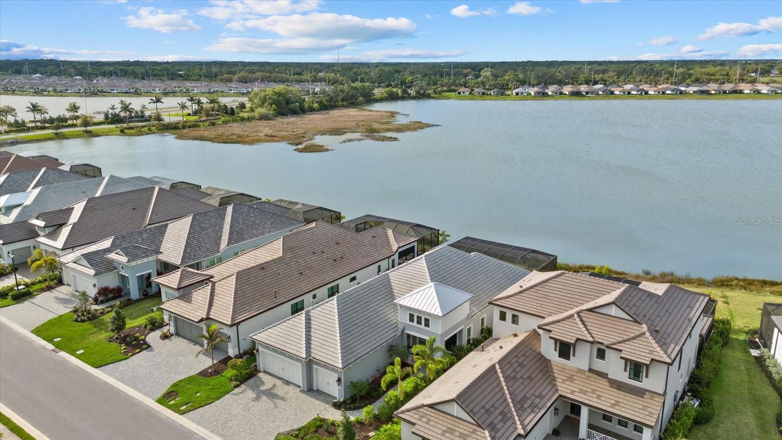 You won't want to miss this one......Indulge in the epitome of lakeside luxury at The Alcove at Waterside by Neal Signature Homes, an exclusive enclave within the vibrant Waterside District of Lakewood Ranch. This stunning residence offers three bedrooms, three full baths, a private den, and 2432 square feet of thoughtfully designed living space with IMPACT RESISTANCE GLASS AND SLIDERS! This beautiful home has a private saltwater pool with LED lights and a large covered lanai area measuring 28 x 17 feet. Plumbed for an outdoor kitchen and comes with electric hurricane screens to give you that peace of mind you are wanting. Inspired by a Coastal architecture, the home showcases elegant stucco exterior, a classic tile roof, and refined architectural details. Inside, elevated design touches abound, including custom ceiling treatments, designer wallpaper, and plantation shutters, creating a sophisticated yet relaxed coastal ambiance.Seamlessly blending indoor and outdoor living, custom 10-foot-high by 12-foot-wide sliding glass doors open to the outdoor living space and frame picturesque views of Blue Heron Lake, filling the home with natural light. Enjoy evening sunsets like you have never seen from your beautiful lanai overlooking the lake.Additional upgrades include a whole-house Kohler generator for peace of mind, mini-split air-conditioning system in the garage, insulated garage doors, custom ceiling treatments inside and out, automatic sun shade, shell stone pavers that are cool to the touch and additional storage in the garage.Perfectly located just one mile from the coveted Waterside Place Village, residents enjoy easy access to waterfront dining, boutique shopping, farmers markets, and community events. Center Point at Waterside is only 1.5 miles away, offering even more popular lunch and dinner destinations along with everyday conveniences.With breathtaking lake views, thoughtful upgrades, and an exceptional location in one of Lakewood Ranch's most desirable areas, this remarkable home offers luxury living and lifestyle at its finest -- and so much more to discover.