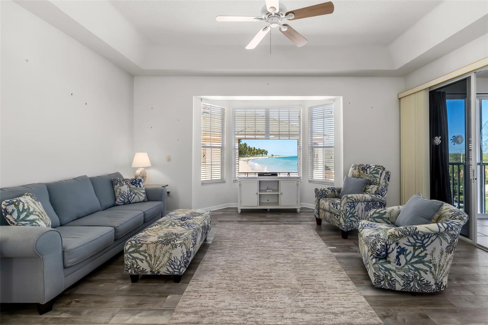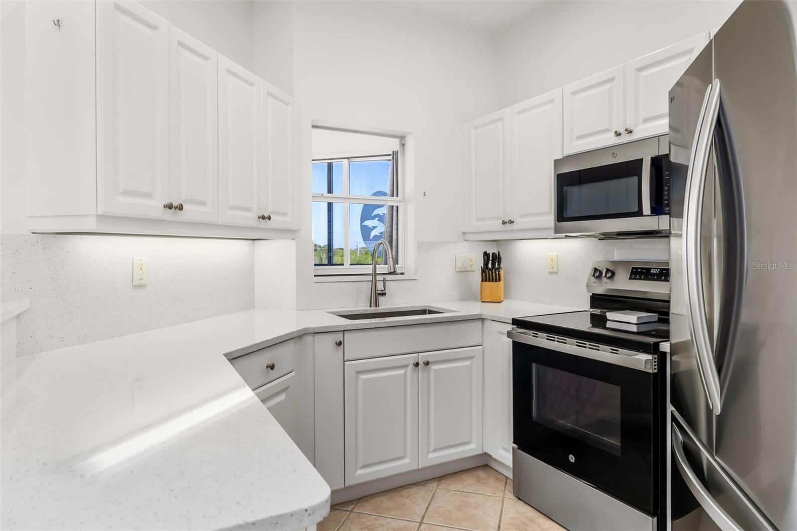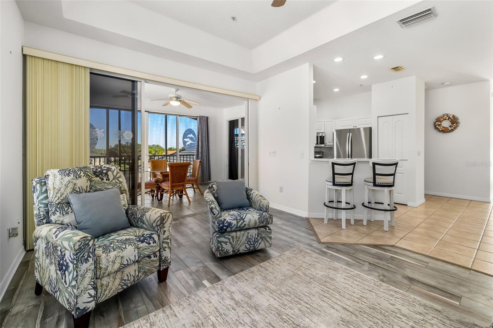 Bright and airy top-floor corner residence in The Courtyards at Gondola Park, offered turnkey furnished for a true move-in ready, lock-and-go lifestyle. Features include an oversized 2-car garage with additional storage, open and light-filled floor plan, soaring ceilings with tray details, updated luxury vinyl plank and tile flooring, and impact windows and doors. The kitchen and baths showcase quartz countertops and newer stainless-steel appliances. Enjoy peaceful lake views from the spacious glass-enclosed lanai, perfect for year-round use. A split-bedroom layout provides privacy, featuring a spacious primary suite with a well-sized ensuite bathroom, two built-in closets, and sliding doors to the enclosed lanai. Two additional guest bedrooms are located on the opposite side and share a full bath. Additional highlights include an in-unit LG washer and dryer, elevator access, and secure gated entry. Residents enjoy resort-style amenities including a clubhouse, heated pool, fitness center, and beautifully landscaped courtyard. The HOA includes cable, internet, water, sewer, trash, and exterior maintenance. Ideally located just minutes from downtown Venice, this home offers easy access to boutique shopping, dining, cafes, farmers markets, and year-round events. Venice Beach is just a short drive away, known for its beautiful shoreline and Gulf sunsets. Golf enthusiasts will appreciate close proximity to Capri Isles and Waterford golf courses, while everyday conveniences-including grocery stores, coffee shops, banks, hospital, and local services-are just blocks away. Perfect for enjoying the best of the Florida lifestyle.
