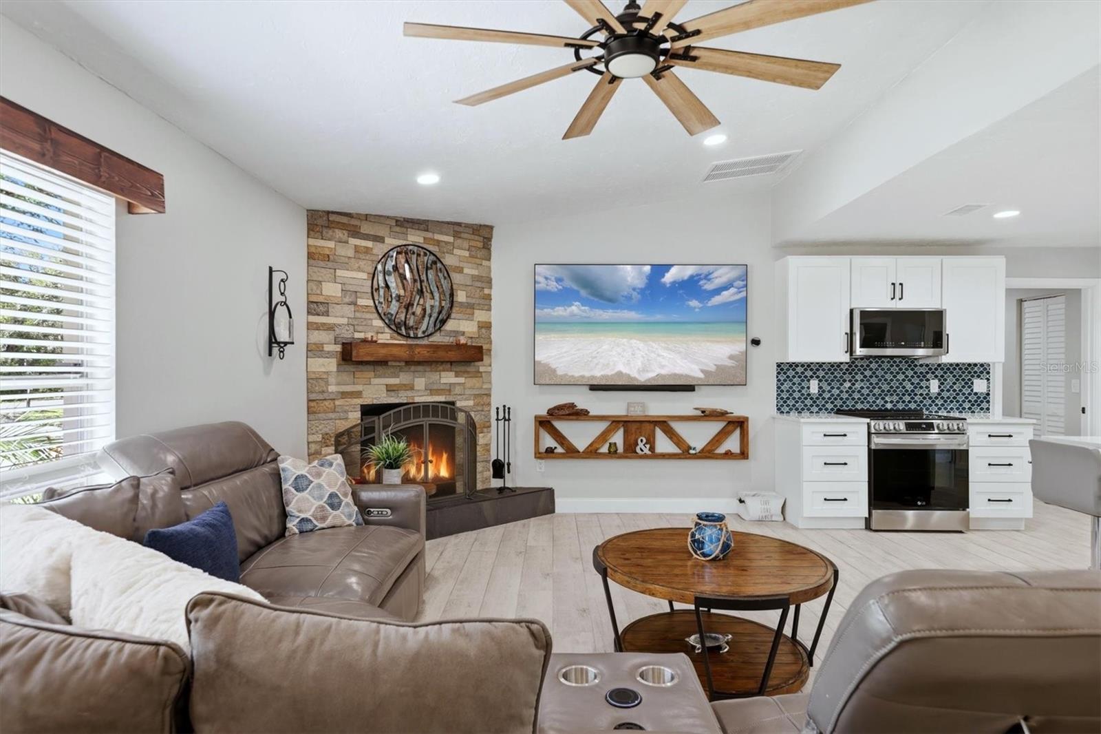 Need space to spread out and live the way you want? Welcome to country living in the city, where over one acre of land with no HOA and no deed restrictions gives you freedom that's hard to find. Bring your boats, RVs, work trucks, trailers, and toys--there's room for it all. This thoughtfully renovated home offers the best of both worlds- peaceful country-style living with the convenience of being just minutes from everything you need - simply move in and enjoy. Inside you'll find soft-close kitchen cabinets and drawers, quartz countertops, a cozy wood burning fireplace, energy-saving LED lighting, and ceramic tile flooring throughout. The bonus room offers endless possibilities to enjoy as a game room, office, or even a fourth bedroom. Step outside to your resort-style retreat to discover an outdoor sound system, resurfaced heated pool (2022), fire pit, and private entertaining area. Major improvements include a new roof (2022), impact windows (2024), a resurfaced pool (2022), pool heater (2024), and a new water heater (2025). The property also features a 50-amp RV hookup and generator wiring, making it ready for your lifestyle from day one. The property is zoned A-1, making it ideal for those dreaming of space for animals, or room to operate a small business from home. Located close to Anna Maria Island and beautiful Sarasota beaches, minutes from shopping and dining, only 30 minutes to St. Pete, and just an hour to Tampa, you'll enjoy the freedom to explore! If you've been searching for a versatile home where you can work, play, store your equipment, raise animals, or simply enjoy a large yard without restrictions, this is the opportunity you've been waiting for.