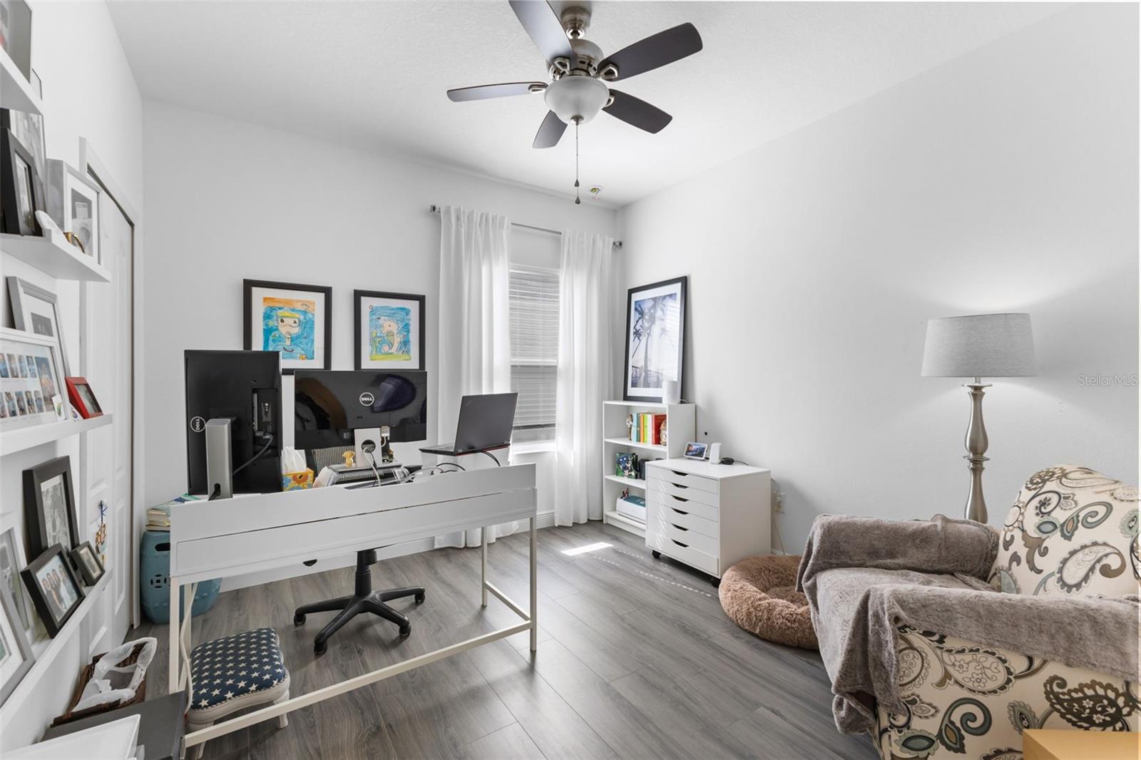 WELCOME HOME to this meticulously maintained Neal Communities "Sweetwater" model in the premier gated community of River's Reach. This spanning 4-bedroom plus Den/Office floorplan offers the perfect blend of modern luxury and functional design. GOLF CART is INCLUDED. The chef-inspired kitchen features crisp white cabinetry, dual pantries, gray quartz countertops, and premium stainless steel appliances, anchored by an expansive entertaining island with designer pendant lighting. The open-concept family room serves as a true centerpiece, showcasing a custom shiplap accent wall and triple sliding glass doors that lead to your private outdoor oasis. Step outside to a backyard retreat that has been thoughtfully upgraded with professional pavers and a full perimeter fence--an expensive addition already completed for you. The primary suite is a true sanctuary, featuring a barn door entry to the en-suite bath, dual vanities, and a generous walk-in closet. Upstairs, the massive bonus room provides endless possibilities as a home theater, gym, or second family room. Additional upgrades include expanded under-stair storage, a garage utility sink, and enhanced attic ventilation for energy efficiency. Residents of River's Reach enjoy resort-style amenities including a community pool, hot tub, fitness center, and grilling area, all while being minutes from premier dining and shopping. Experience the perfect balance of community security and private serenity in this move-in-ready beauty.