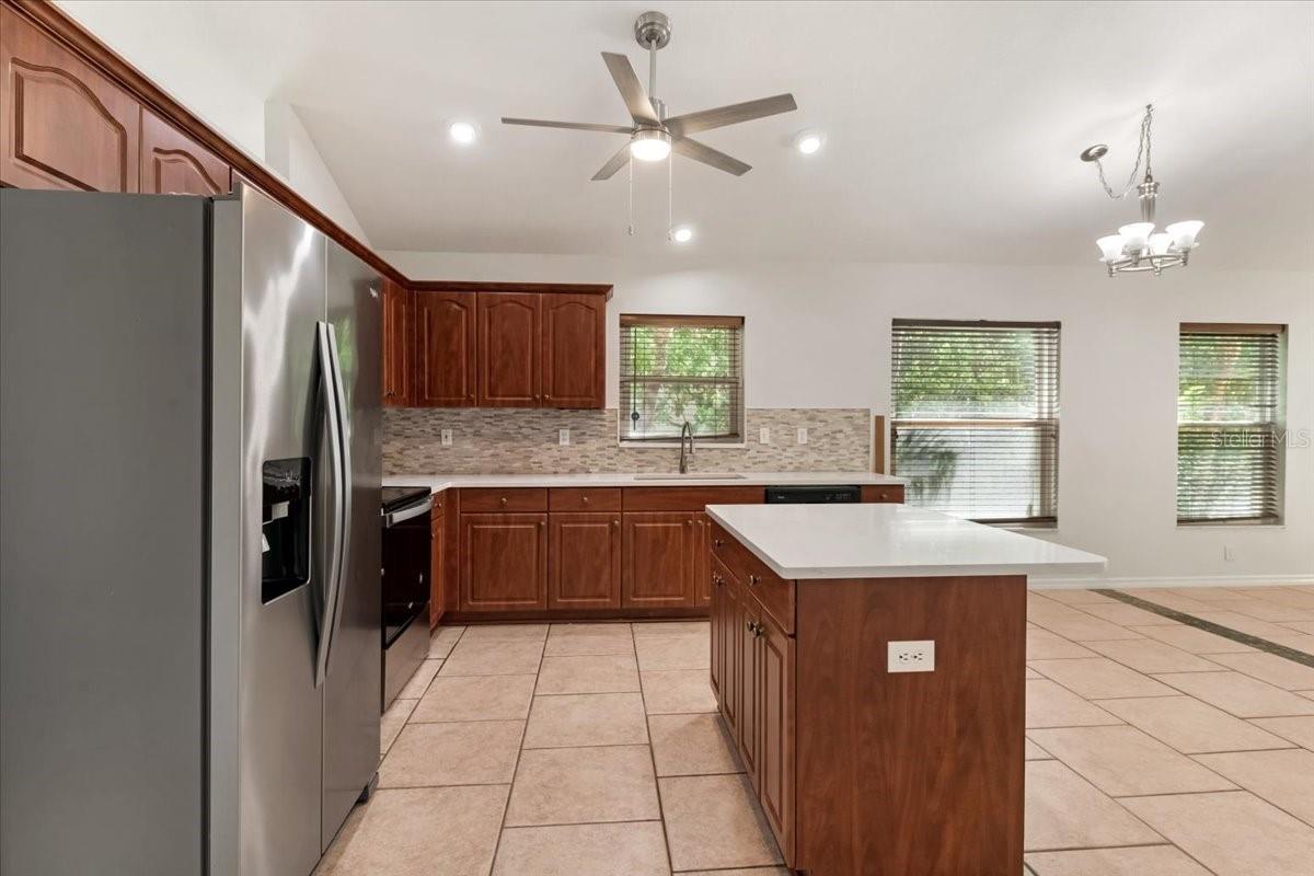 One or more photo(s) has been virtually staged. Welcome to this spacious 4-bedroom, 2-bath home featuring a bright open floor plan and soaring ceilings that create an airy, inviting atmosphere throughout. The home offers separate and generously sized living and dining areas, perfect for both everyday living and entertaining. The main living spaces feature a beautiful combination of tile and luxury vinyl flooring, providing both durability and modern style. The kitchen opens seamlessly to the living area and includes new quartz countertops, ample cabinetry, stainless steel appliances, and a center island for additional prep space. Just off the kitchen, you'll find a built-in cabinet and counter area ideal for a dry bar, coffee station, or serving space when hosting guests. Large hurricane impact windows allow natural light to fill the home, enhancing the open feel. Step outside to enjoy your private heated pool, perfect for relaxing or entertaining year-round in Florida's sunshine. Located in the highly desirable Mote Ranch community, residents enjoy access to wonderful amenities including a recreational center, community swimming pool, scenic walking trails, and a private dock along the beautiful Braden River. Ideally situated just 3 miles from the University Town Center (UTC), you'll have quick access to premier shopping, dining, and entertainment options. This home combines space, functionality, and an unbeatable location, making it the perfect place to enjoy the Florida lifestyle.