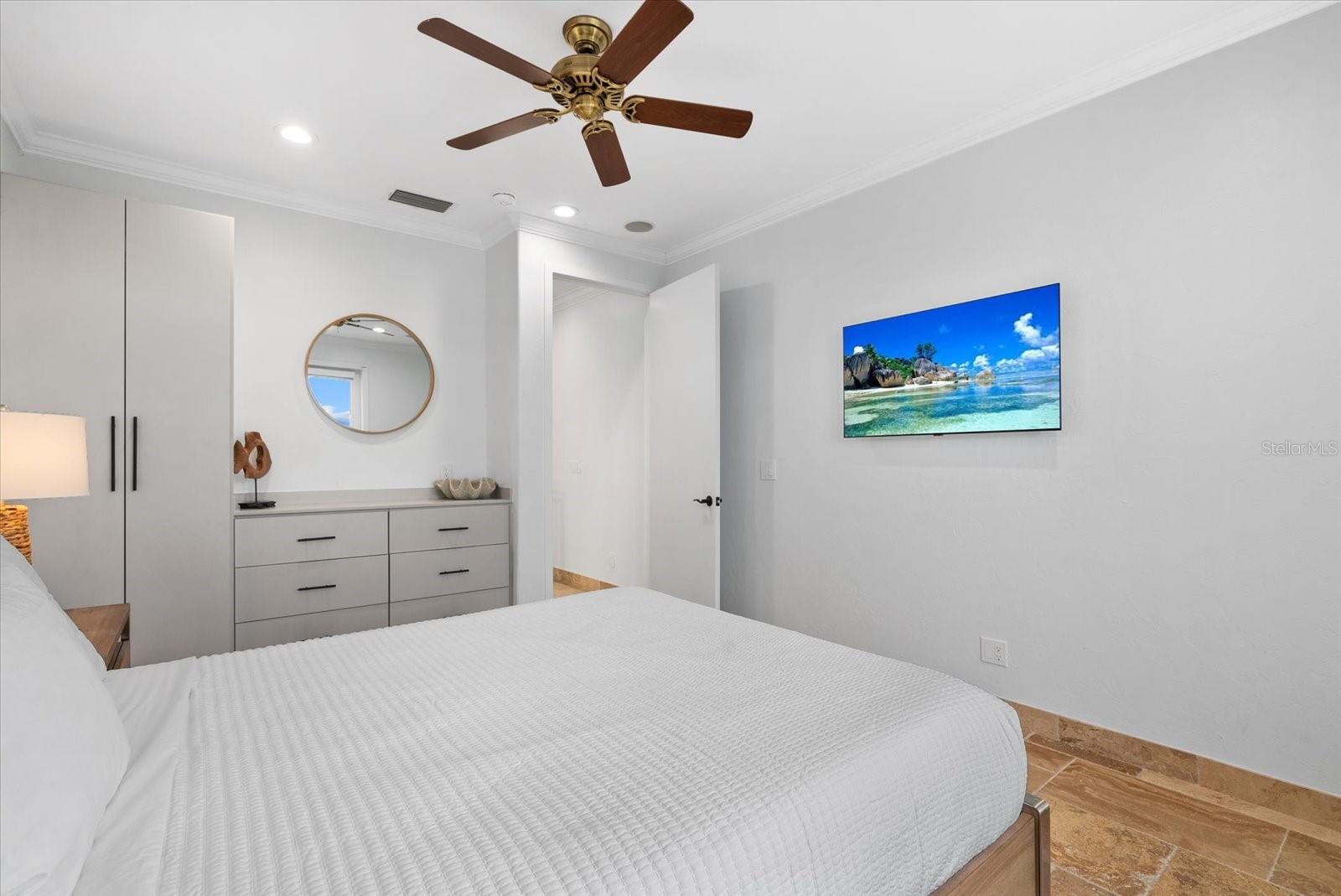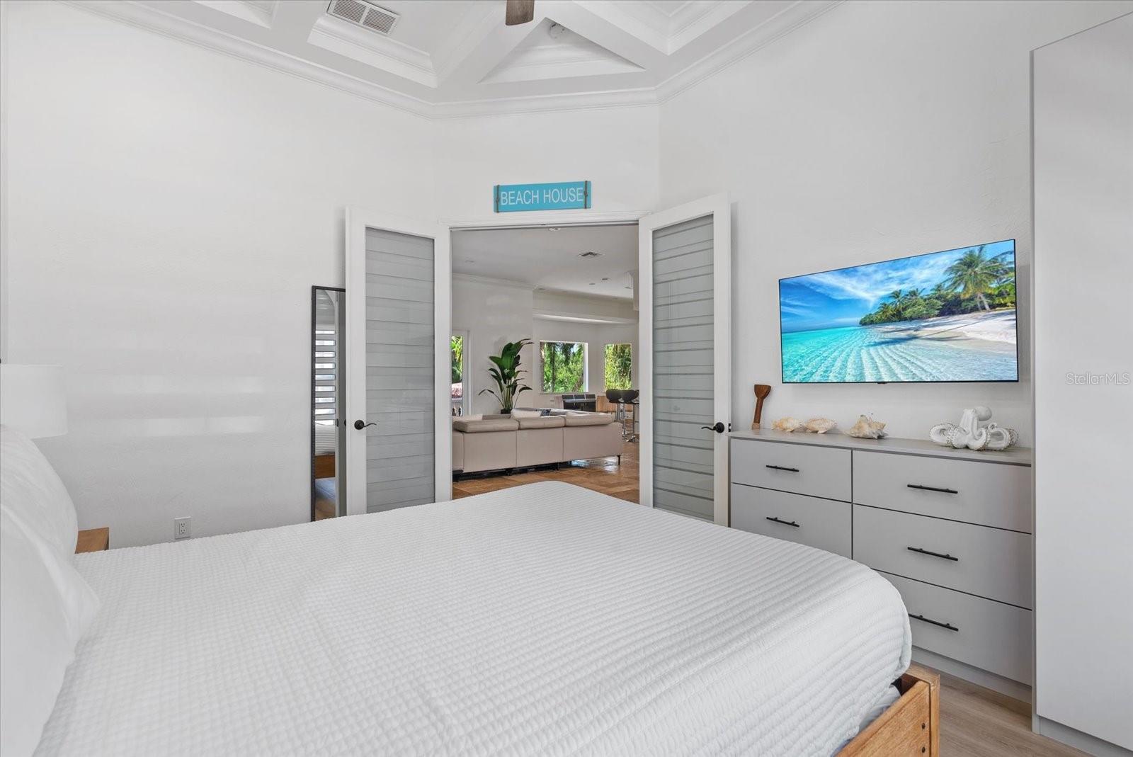 Spacious island living awaits in this beautifully maintained 5-bedroom, 3-bath furnished home on the coveted north end of Siesta Key, just steps from beach access No. 1, Shell Rd, on Big Pass and with convenient access to the Sarasota mainland. Fully gated and walled for privacy, the property is surrounded by lush tropical landscaping and offers the ideal blend of comfort, functionality, and a weekly rental. An oversized 3-car garage and large paver driveway provide plenty of space for vehicles, beach gear, and a golf cart--perfect for enjoying the Siesta Key lifestyle. Adding to its appeal, the home is built above base flood elevation, a valuable feature on Siesta Key. Inside, the large open floor plan is designed for entertaining, with 12-foot ceilings, crown molding, arched openings, and travertine flooring. The spacious kitchen features stainless steel appliances, oak cabinetry, and a breakfast nook overlooking the backyard oasis, while a separate dining area and large living room with a gas fireplace provide plenty of space to gather. French doors off the living room open to a large terrace overlooking the backyard oasis, while a second terrace off the side of the home offers a cozy, private spot to relax. The private main-floor primary suite offers direct terrace access, two walk-in closets, an oversized bedroom, and a luxurious en-suite bath with dual vanities, soaking tub, walk-in shower, and floor-to-ceiling travertine. Two additional large bedrooms and a full bath are also located on the first floor. Upstairs, two generous guest bedrooms, a full bath, and a wet bar with a beverage fridge create an ideal retreat for visitors, while one of the bedrooms opens to a private terrace overlooking the backyard. Additional conveniences include multiple storage closets and a central vacuum system for easy maintenance. The backyard is a true tropical oasis with mature landscaping, a heated saltwater pool with fountain, paver deck, large turf area, outdoor shower, and an exceptional tiki hut bar and outdoor kitchen designed for entertaining, complete with a built-in gas grill, two bar fridges, and porcelain countertops. An additional fenced side yard provides a great space for dogs to roam. Ideally located, this property is just moments from world-renowned Siesta Key Beach and a short drive to downtown Sarasota's celebrated restaurants, shopping, and cultural attractions. With three terraces, abundant indoor-outdoor living, strong weekly rental history, and a prime north Siesta Key location, this is an outstanding opportunity to enjoy the best of island living.