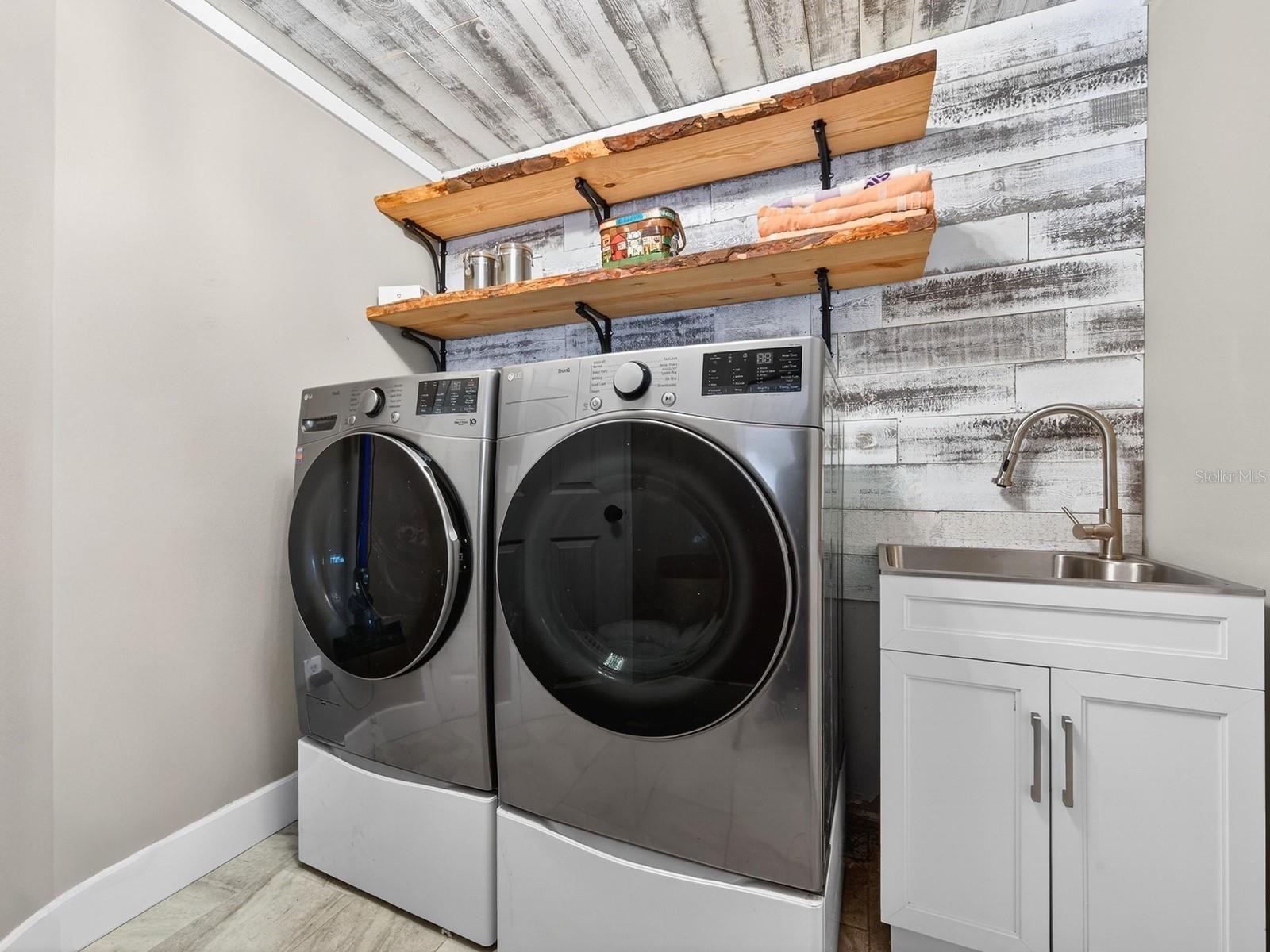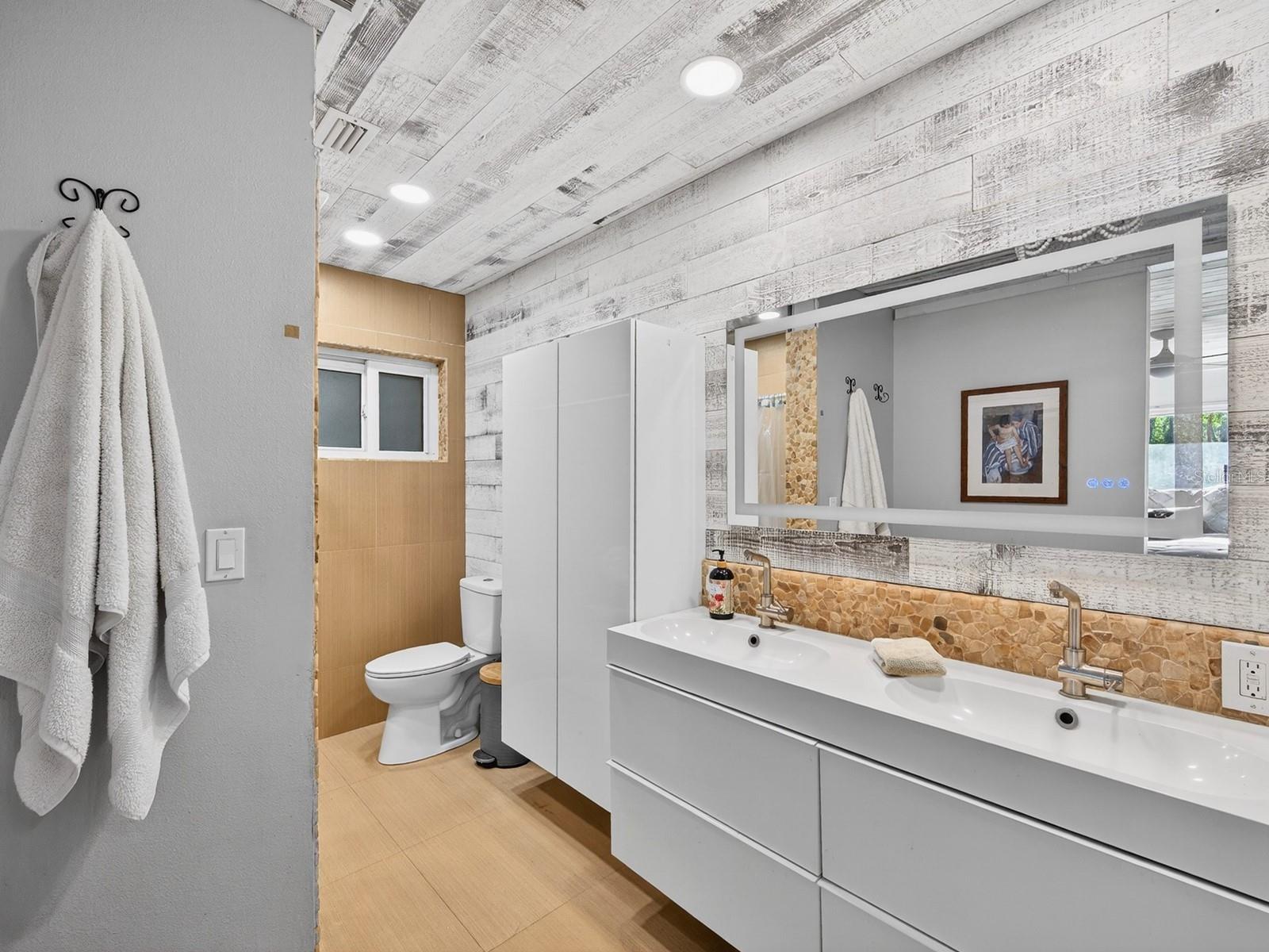 Gated Sarasota Estate with 2,223 a/c Sq. Ft. Home & 2,289 a/c Sq. Ft. Business Infrastructure -- Live, Work & Thrive on 2.49 Acres! Tucked deep off Proctor Road, this lakefront estate -- w/ its own private pond -- offers a rare convergence of privacy, space, & opportunity that simply does not come along often -- at any price. Featuring a resort-style pool, spa, & elegant spillover feature--an inviting oasis set amid lush landscaping & tranquil lake views, designed for both relaxation & entertaining. The exceptional screened lanai & pool area transforms outdoor living into a private escape. The property is fully fenced, & a canopy of mature oaks & native Florida landscaping lines the paver arrival, where a courtyard entrance, stone exterior accents, tile roof, & French door entry set a tone that is warm, layered, & full of character. Inside, the open split floor plan spans 2,223 sq. ft. of air-conditioned living space, w/ upgraded windows throughout. Custom tile floors, wood tongue-groove ceilings, & handcrafted millwork weave a common thread of carefully articulated detail that connects each room's distinct personality. The formal living room features a dramatic wood feature wall & sliding glass doors to the private courtyard; the dining room is anchored by a custom chandelier; & the family room opens to the screened lanai through sliding glass doors w/ recessed lighting throughout. The kitchen is the heart of the home -- appointed w/ a center island, bar seating, black granite countertops, white raised-panel cabinetry, a built-in pantry, stainless steel appliances, two refrigerators, & a pass-through to the pool area, w/ more than enough room & storage to handle everything from a quiet morning to a full crowd. The primary suite is a true retreat -- quiet, grounded, & thoughtfully appointed, w/ an en suite bath that feels spa-like, featuring dual sinks, an electric LED mirror, & a walk-in shower designed for unwinding, plus a pocket door leading to a built-in walk-in closet. Two additional bedrooms each feature the home's signature tongue-groove ceilings & moldings, while the guest bath impresses w/ custom black-and-white tile floors & a subway-tiled shower-tub surround. The detached 77x24, fully air-conditioned 1,848 sq. ft. concrete block building -- designed w/ concrete flooring & three garage bays w/ tall electric overhead doors, -- is currently configured as a flexible, purposeful space. Think home business, car collection, woodworking shop, weekend projects, or whatever your passion demands -- ideal for anyone who needs serious room to do what they do. The attached two-car garage adds 441 sq. ft. of enclosed, air-conditioned space. Both the house & concrete block building are insulated w/ Icynene spray foam & equipped w/ new AC systems & ductwork (replaced within the last 3-5 years), & the concrete block building received a brand-new metal roof in 2025. The sewer/drain line has also been re-lined within the last several years -- the kind of behind-the-scenes investment that makes a real difference in long-term ownership. There is ample room for RV & boat parking, & w/ no HOA to contend w/, you have the freedom to use this property entirely on your terms. Located in a coveted enclave of just 12 estate-sized lots -- minutes from Clark Rd & I-75, & a short drive from Siesta Key beach. Nearby trailheads provide easy access to the Legacy Trail, & the area is rich w/ shopping, dining, & parks.