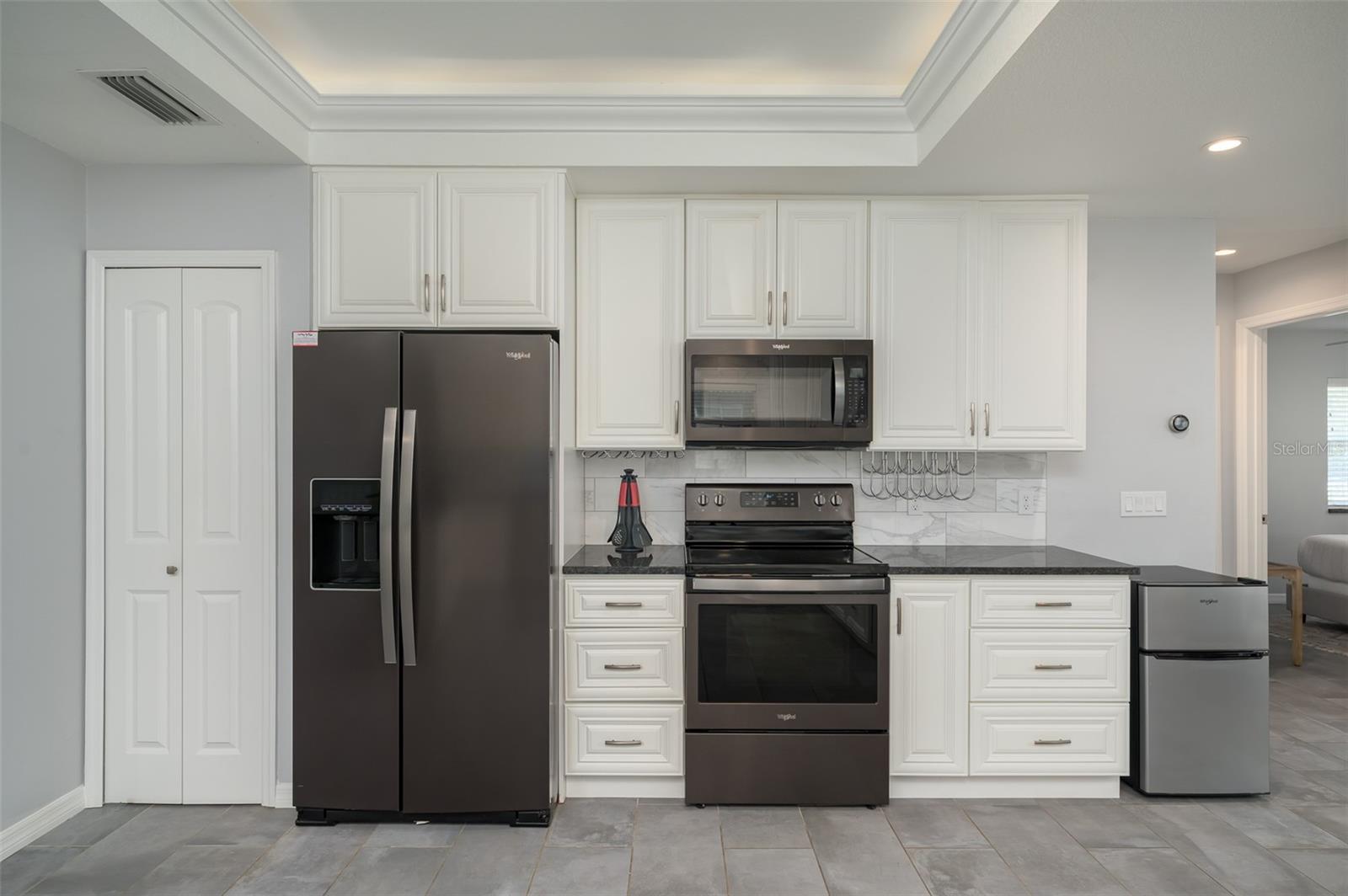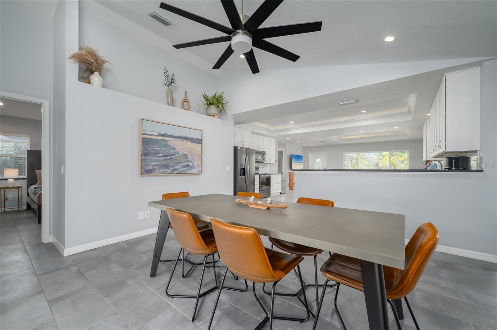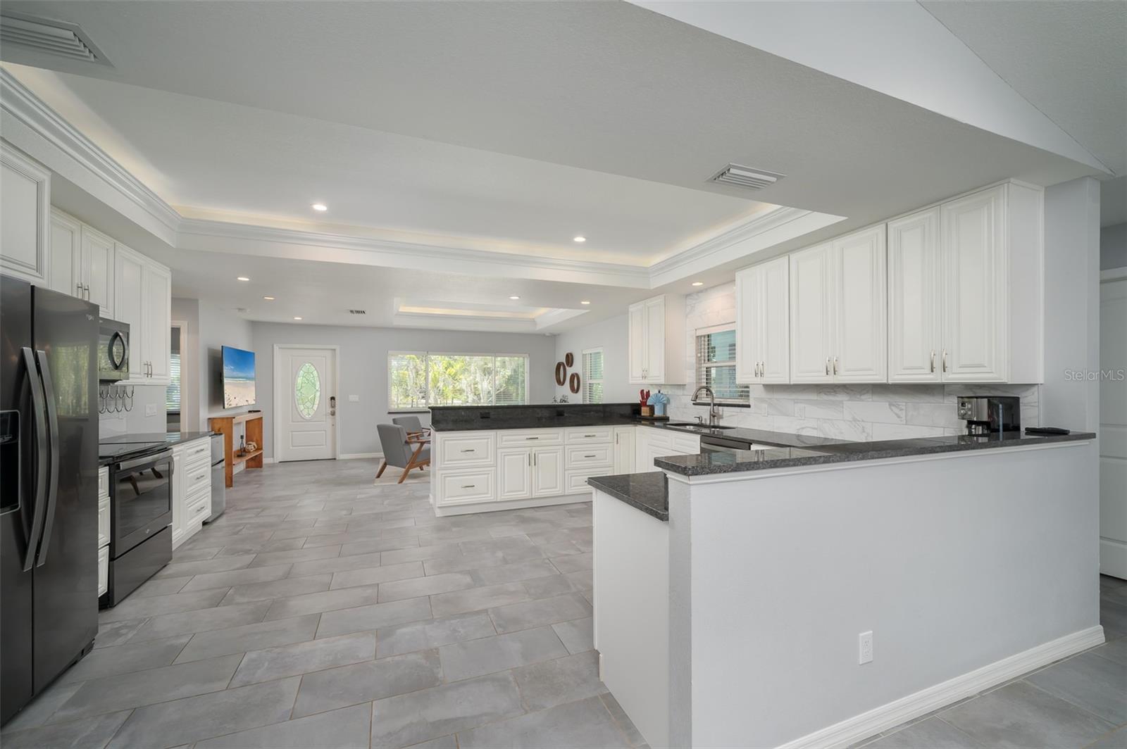 Completely rebuilt in 2017, this beautifully updated 3-bedroom, 2-bath home offers modern construction and thoughtful design throughout. Major improvements include new plumbing, updated electrical with a new meter, a new AC system with updated ductwork, a metal roof with new trusses, and modern windows for added efficiency and peace of mind. The single-story layout offers 1,513 sq ft of well-designed living space featuring tile flooring throughout, tray ceilings with integrated lighting, and a vaulted ceiling in the living room that creates a bright, open feel. The open-concept floor plan seamlessly connects the living, dining, and kitchen areas, ideal for entertaining and everyday living. An 8-foot sliding glass door opens to a covered porch and a large fenced backyard, creating an easy indoor-outdoor lifestyle. The kitchen features sleek countertops, modern cabinetry, and Whirlpool stainless steel appliances with ample counter space and storage. Bedrooms are spacious and filled with natural light. The primary suite includes a modern en-suite bath with dual sinks and a walk-in shower, while both bathrooms feature clean, contemporary finishes. The backyard offers plenty of room to add a pool and create your own private outdoor retreat. No HOA. The home can be sold furnished or unfurnished. Strong investment potential in a favorable short-term rental market, ideal for buyers seeking income opportunities. Conveniently located just minutes from the Ringling Museum, downtown Sarasota, St. Armands Circle, Sarasota-Bradenton International Airport, and the beaches of Lido Key and Longboat Key.