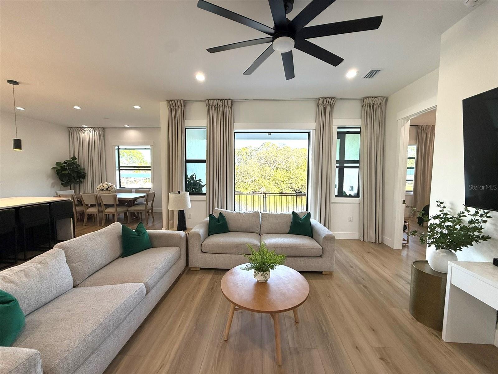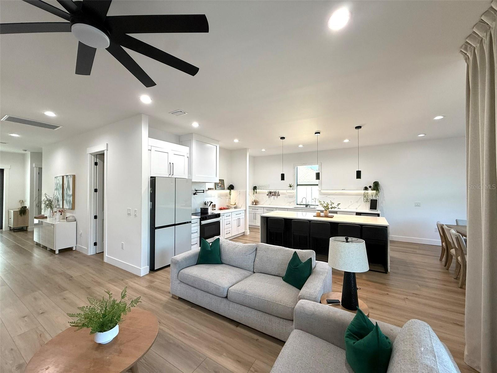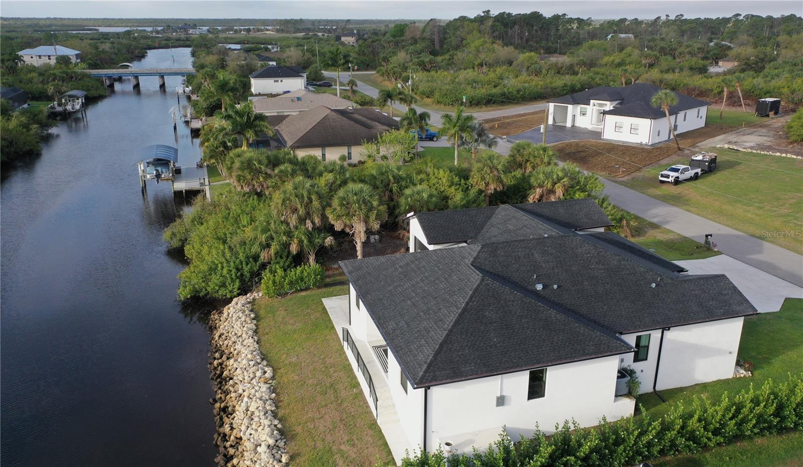 Discover this new, custom-built 2024/2025 waterfront home! Featuring 3 bedrooms, an office, 2.5 baths, and a rare attached RV shop alongside a 2-car garage, this property is located in a peaceful, no-HOA neighborhood. Enjoy City Water and Septic, with canal access just minutes from open water--perfect for boating enthusiasts.This home offers 1,950 sq. ft. under air and 3,254 total sq. ft. under roof. The 40-foot, drive-through RV shop is cooled by a 24k BTU mini-split A/C and features epoxy flooring, 14-foot hurricane-impact-rated insulated garage doors, and ample storage for vehicles, RVs, and marine gear.Built for durability and comfort, the home includes hurricane-impact windows and doors and spray foam insulation throughout the roof. Inside, you'll find refined finishes, solid-core 8' doors, 10' ceilings, and custom-built closets with shelving. The primary suite is a private sanctuary with a large walk-in closet and a luxurious bath featuring a floor-to-ceiling tiled shower.The chef's kitchen offers white shaker cabinetry, quartz countertops with waterfall edges, a walk-in pantry, and an open dining area ideal for entertaining. Additional features include a separate utility room with sink and cabinetry.Homes like this are rarely available--schedule your private showing today!